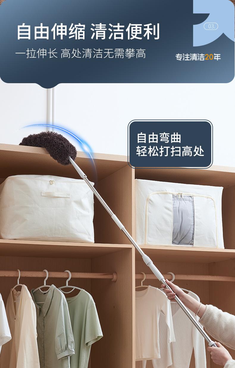 [Atacado Personalizado] Espanador de Penas para Remoção de Pó, Limpeza Doméstica Retrátil de Frestas no Teto e Teias de Aranha