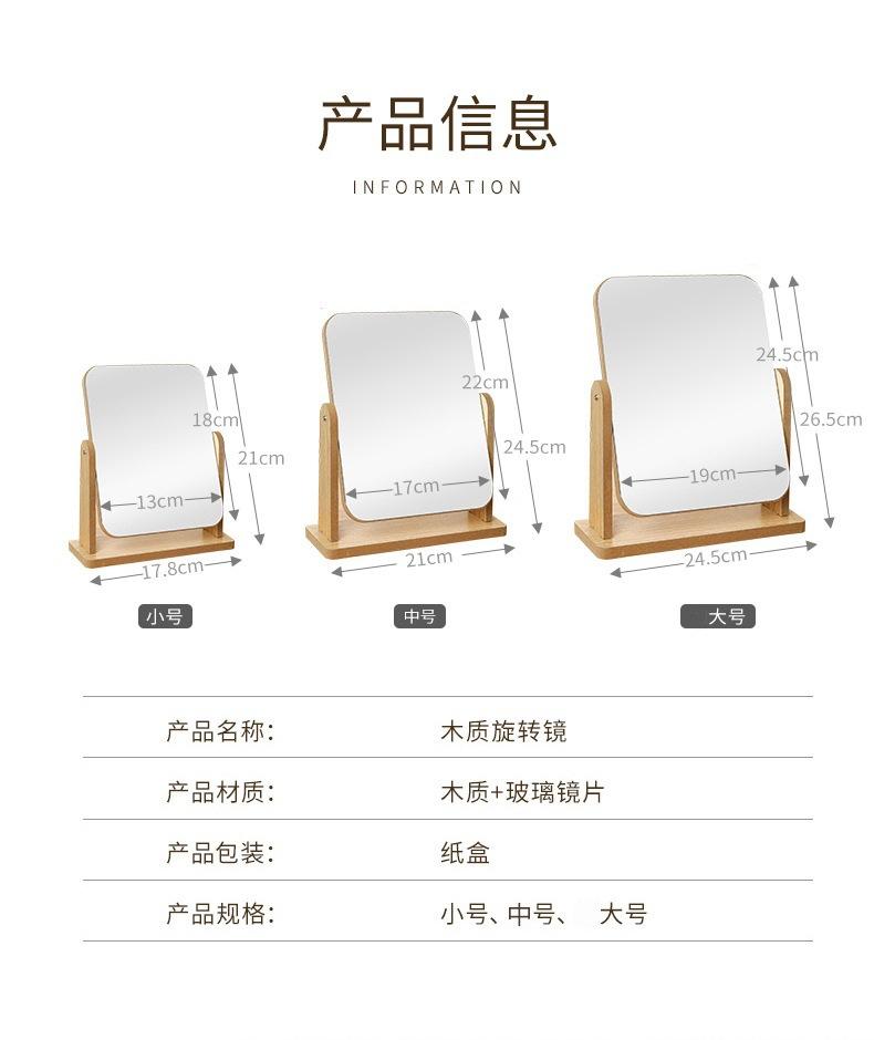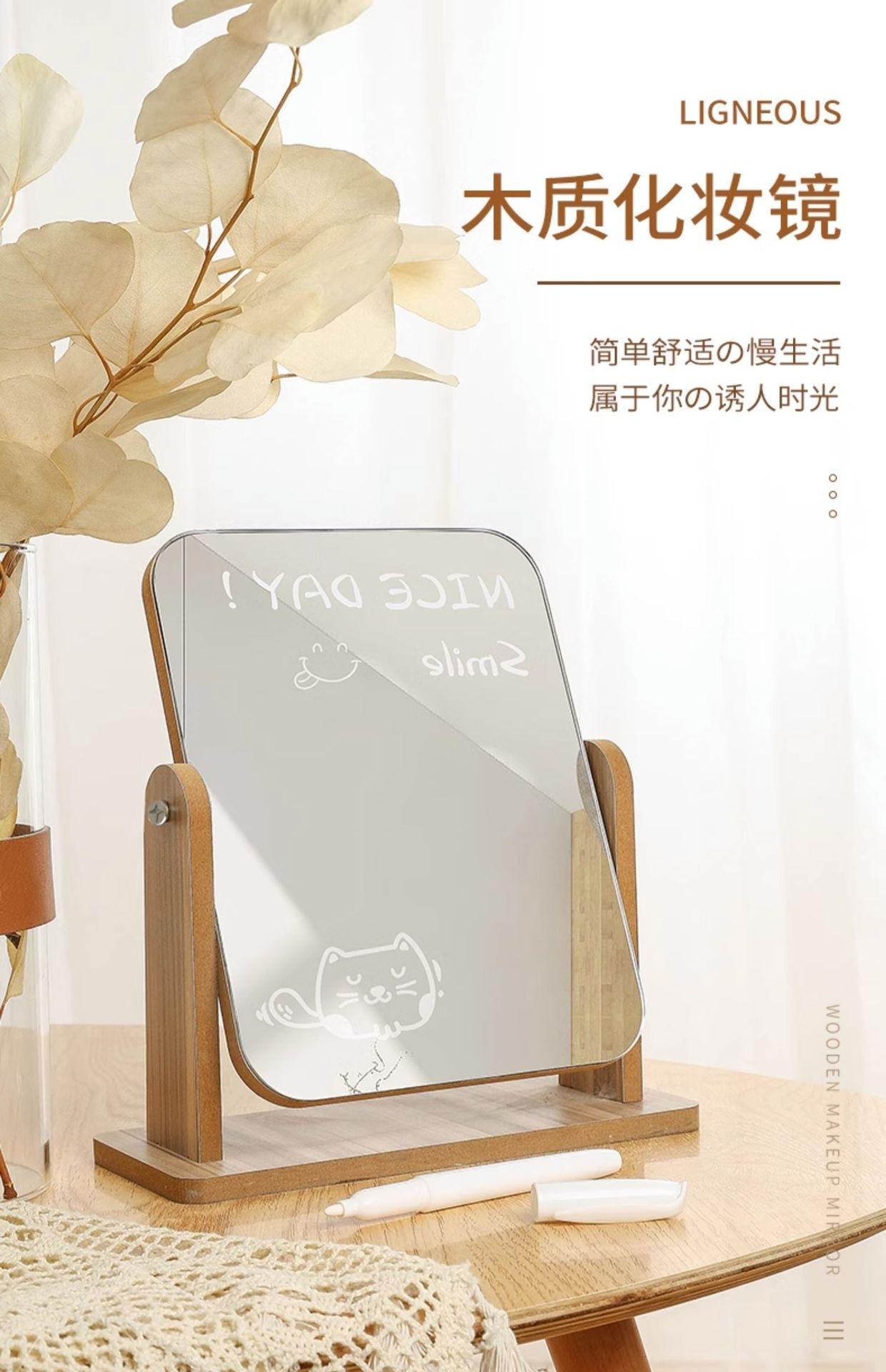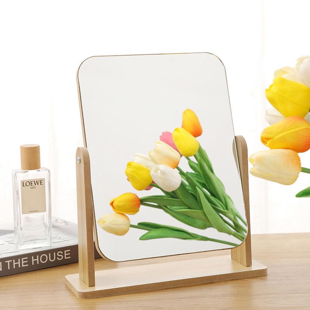 Espelho de Maquiagem de Mesa Simples Alta Definição Madeira Giratório Penteadeira Espelho de Princesa Mesa de Madeira Dormitório Estudantil Feminino