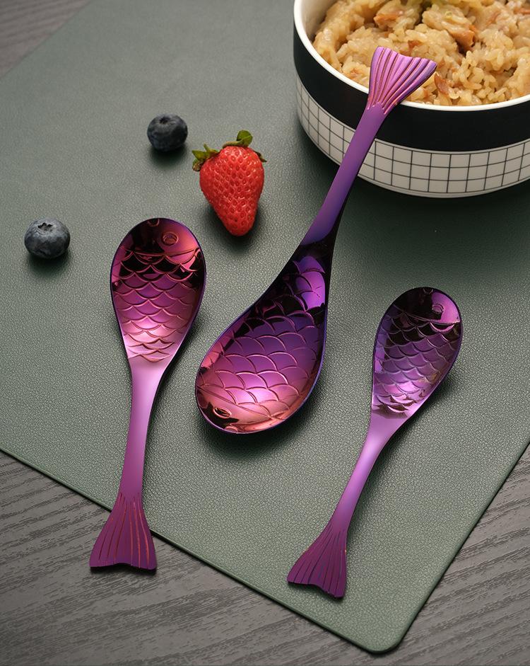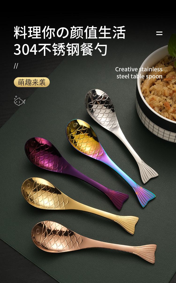 Compre Atacado Talheres Criativos Colher de Peixe Café Doméstico Colher de Sopa Talheres Estudante Colher Rabo de Peixe Adulto Colher de Aço Inoxidável 304 no atacado no Joom.pro