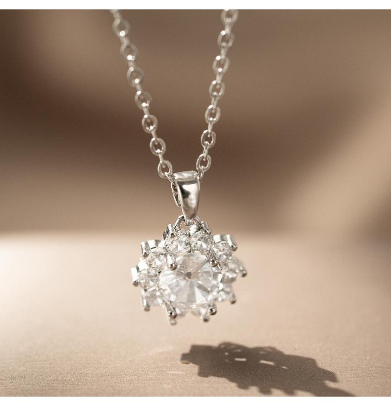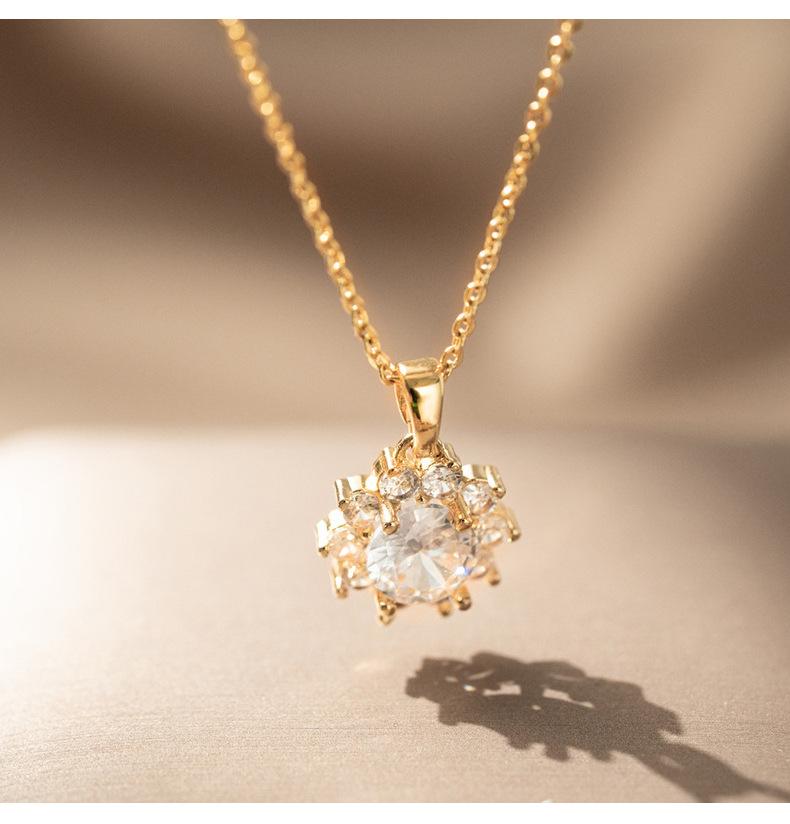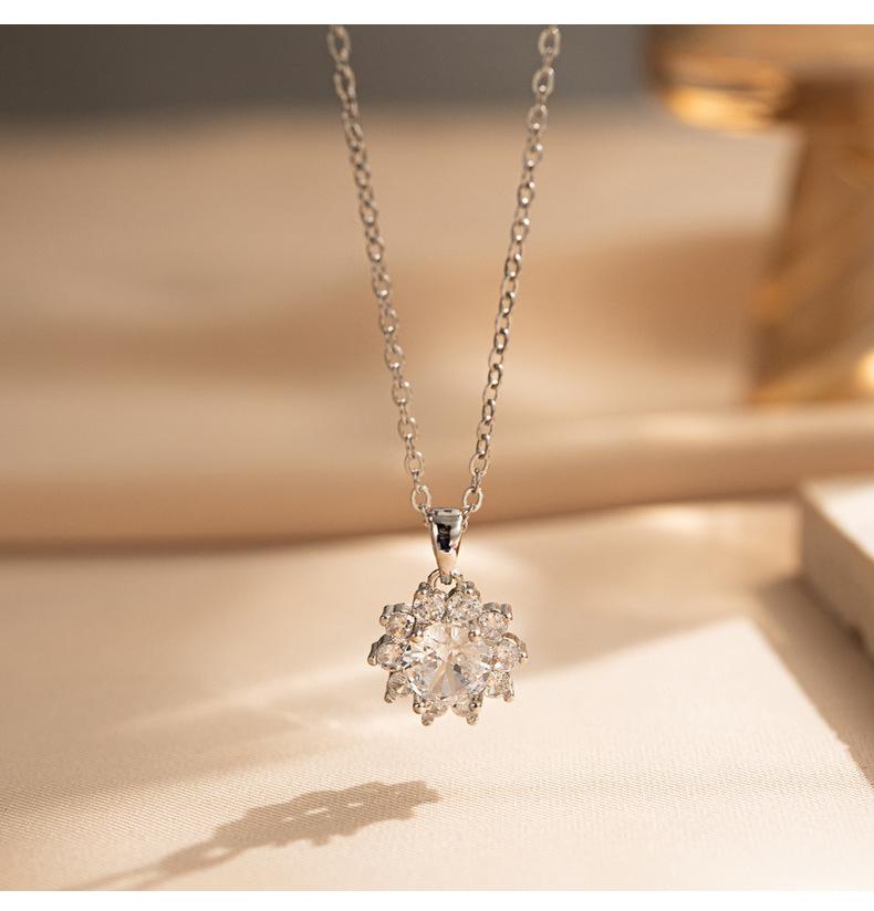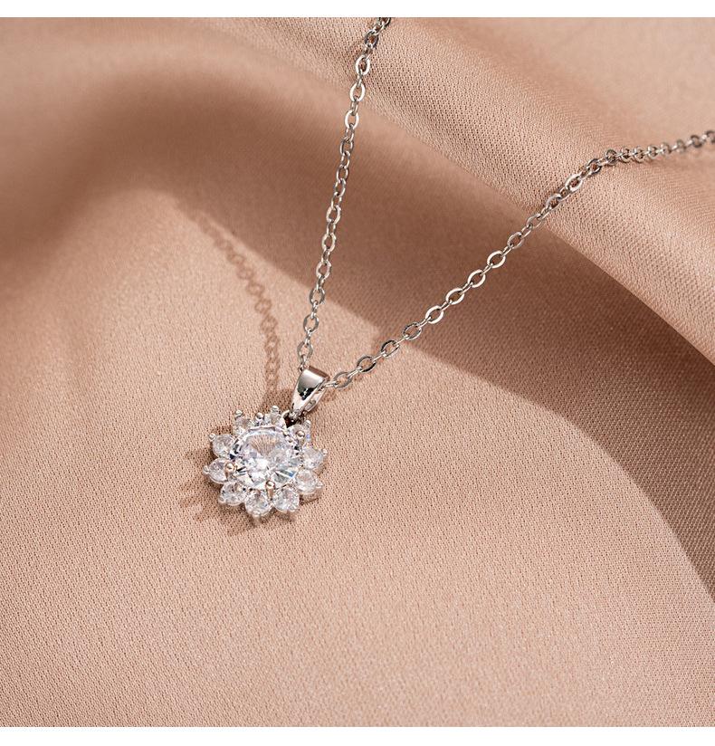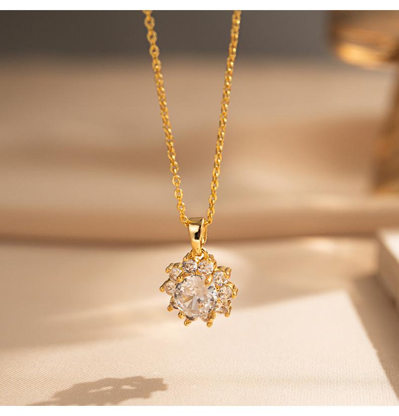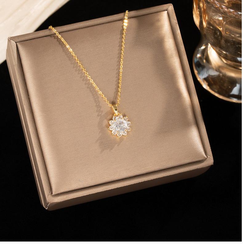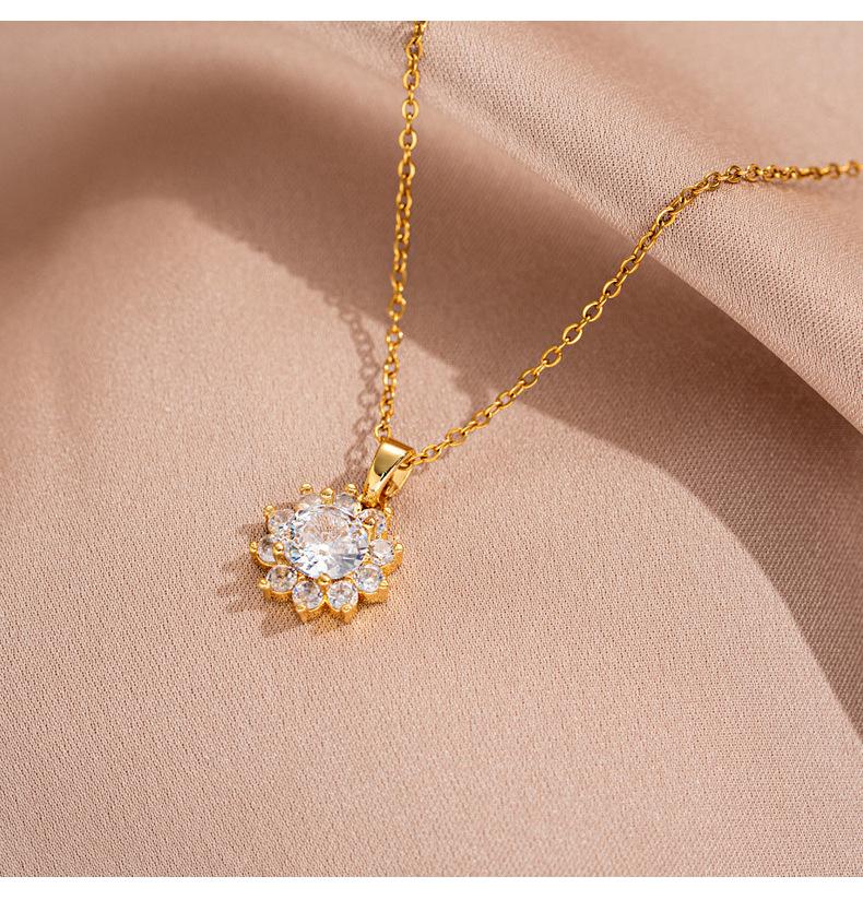 Colar Transfronteiriço Novo Pequeno Girassol Aço Titânio para Mulheres Zircônia Incrustada Requintado de Alta Qualidade Corrente Clavicular Joias Atacado
