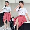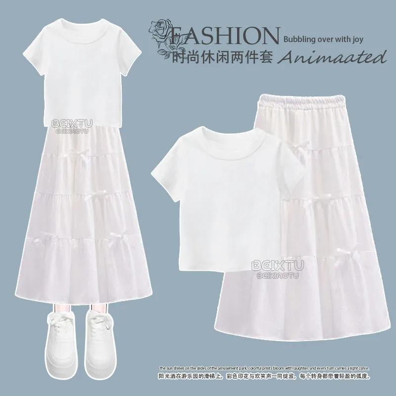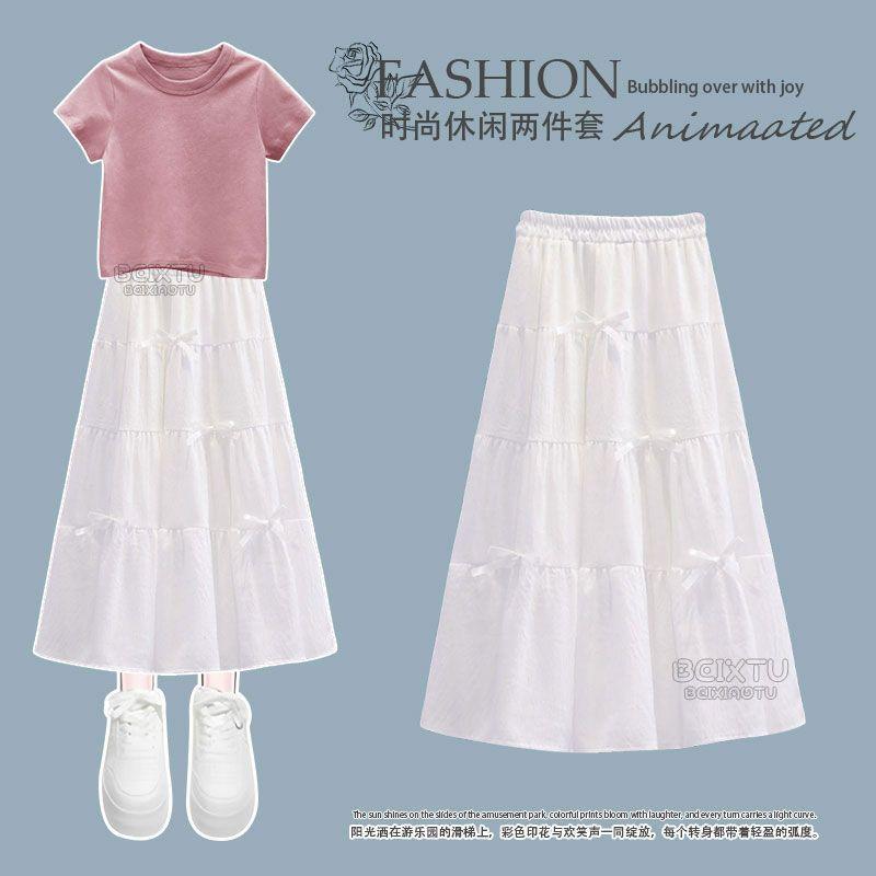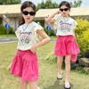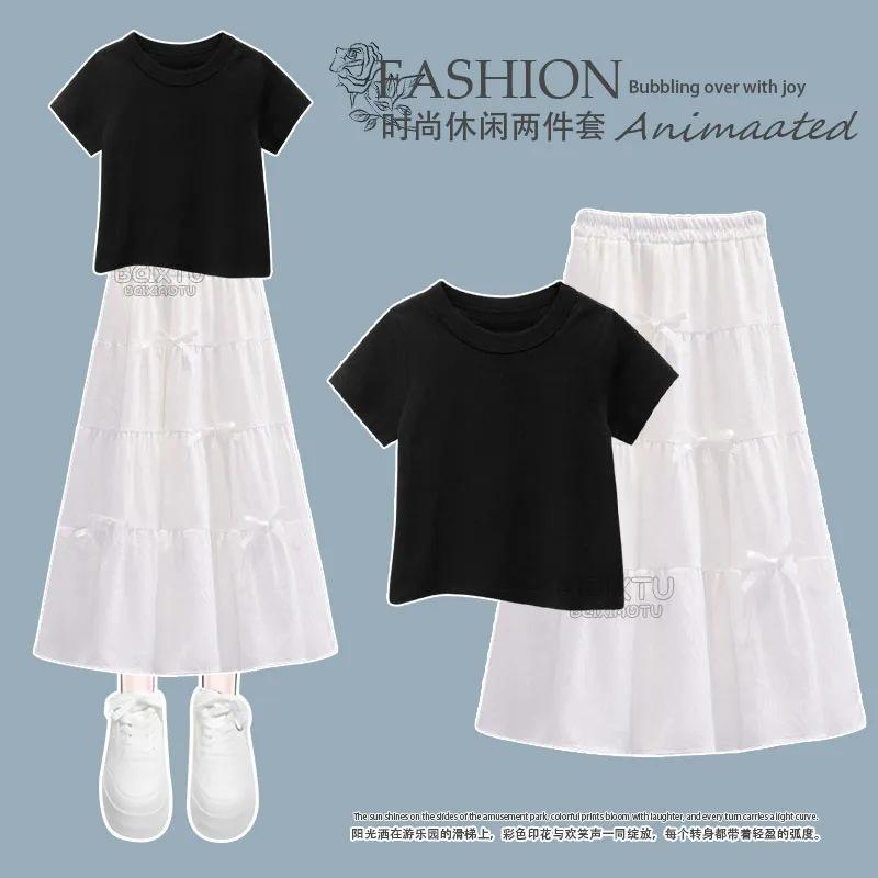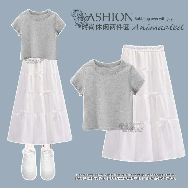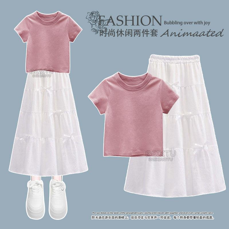 Conjunto Infantil 2025 Novo Estilo Infantil Médio e Grande Super Bonito Verão Manga Curta Saia Infantil Estilo Ocidental Casual Conjunto de Saia Duas Peças