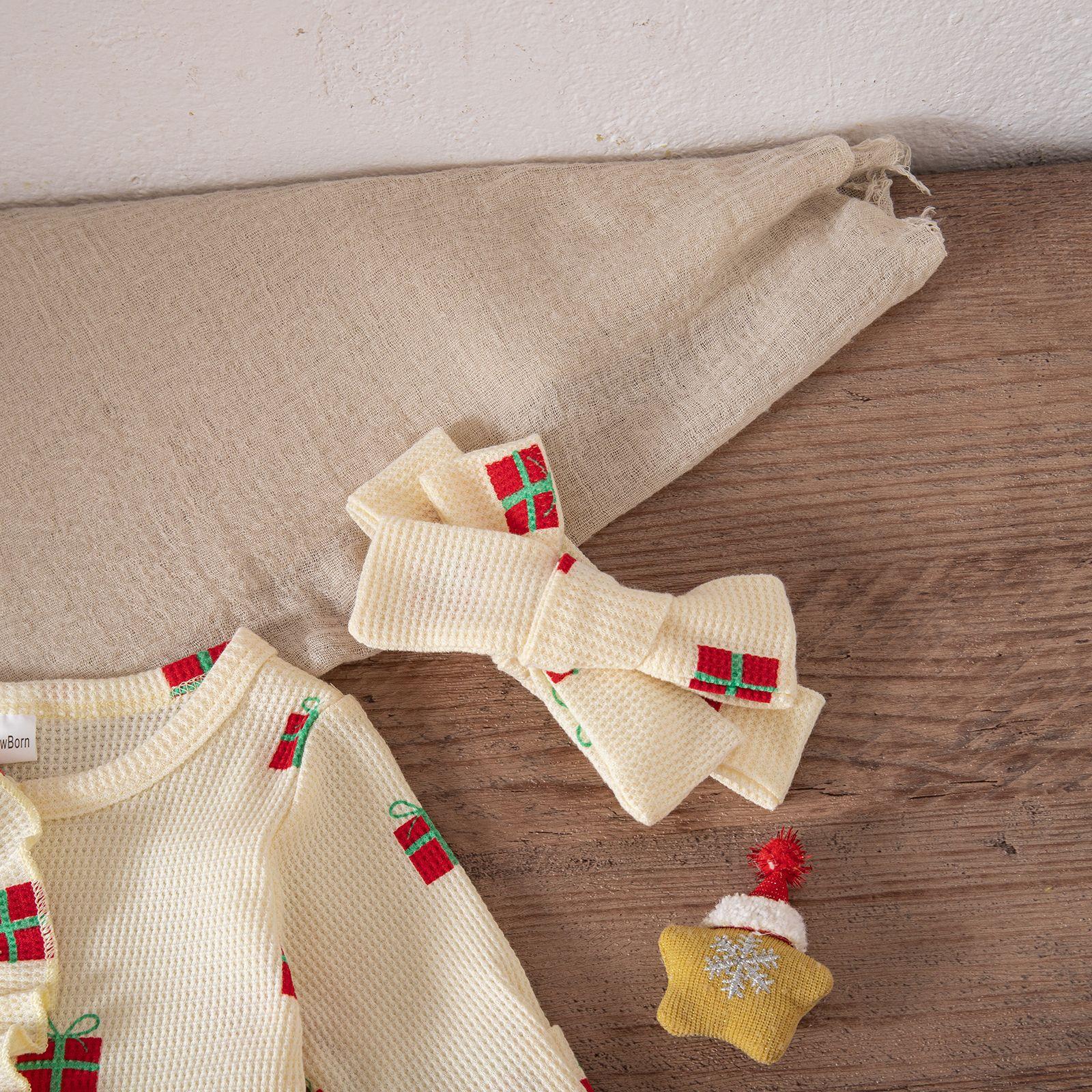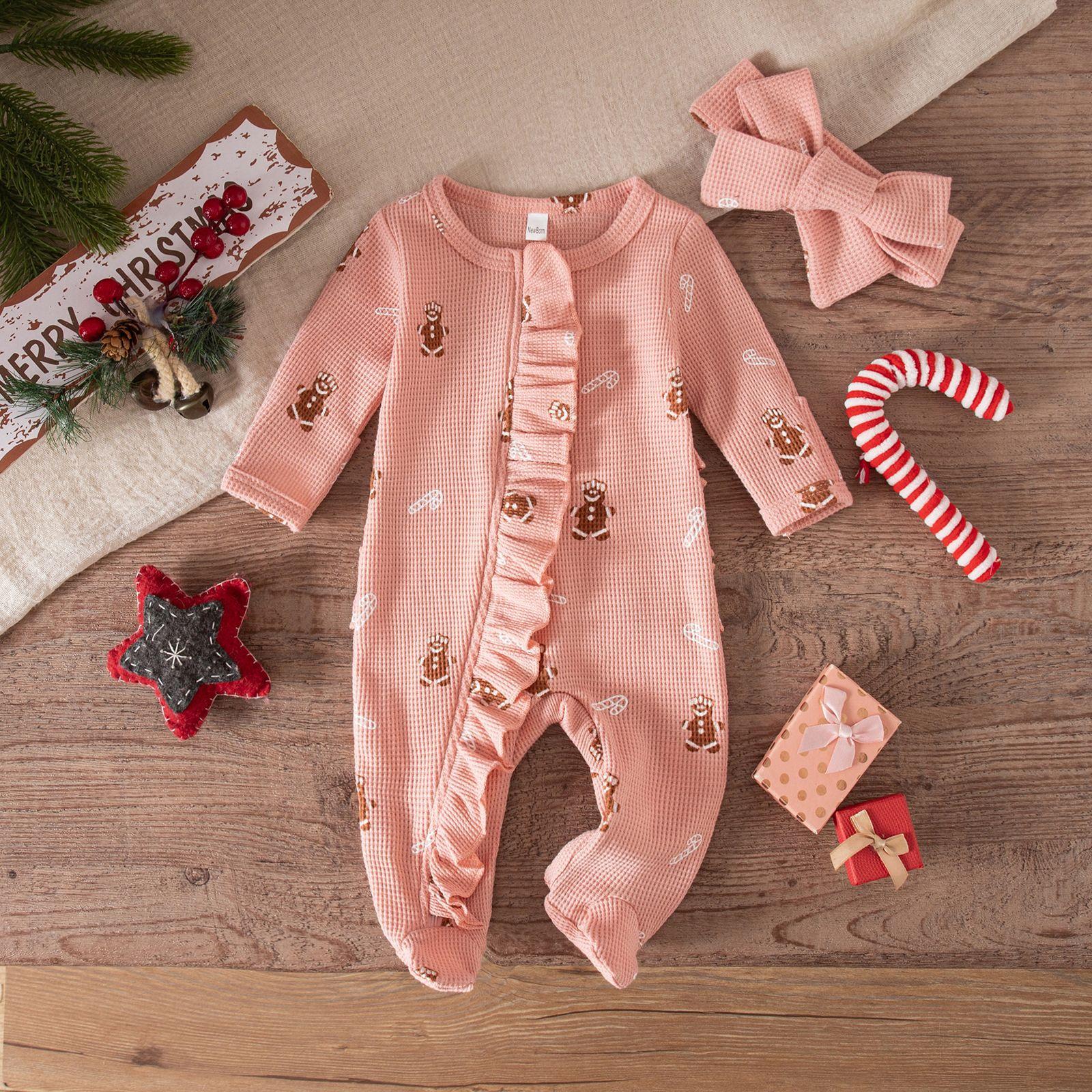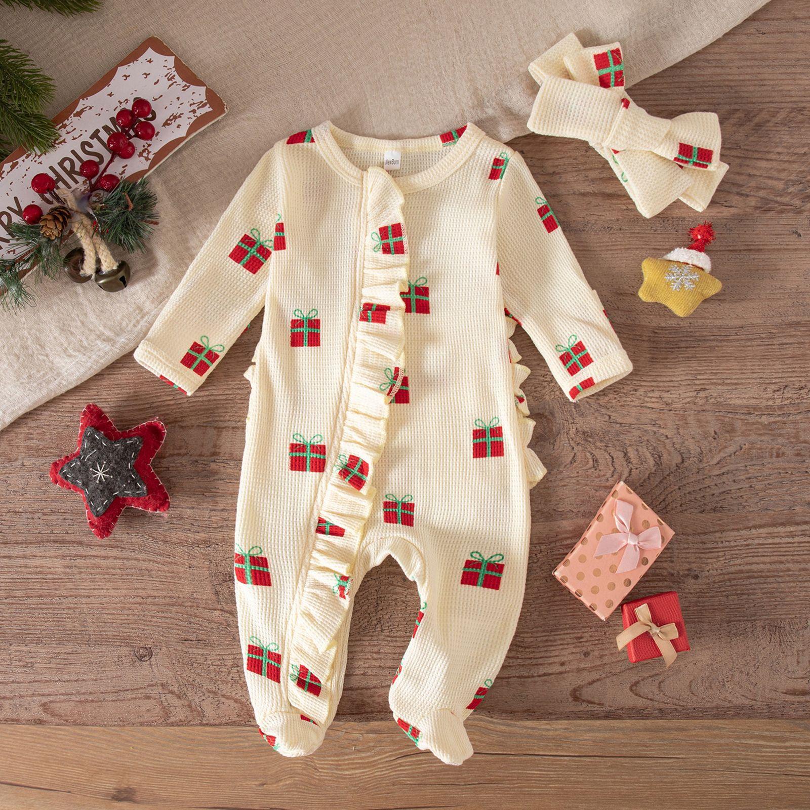 Macacão de Natal para Bebê Outono Amazon Transfronteiriço com Pés Roupa de Rastejar Ha Conjunto de Duas Peças com Faixa de Cabelo Roupa Casual