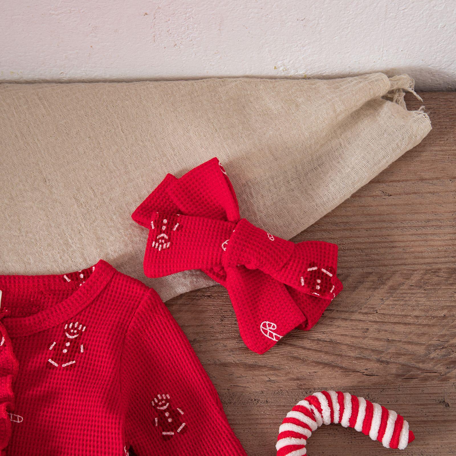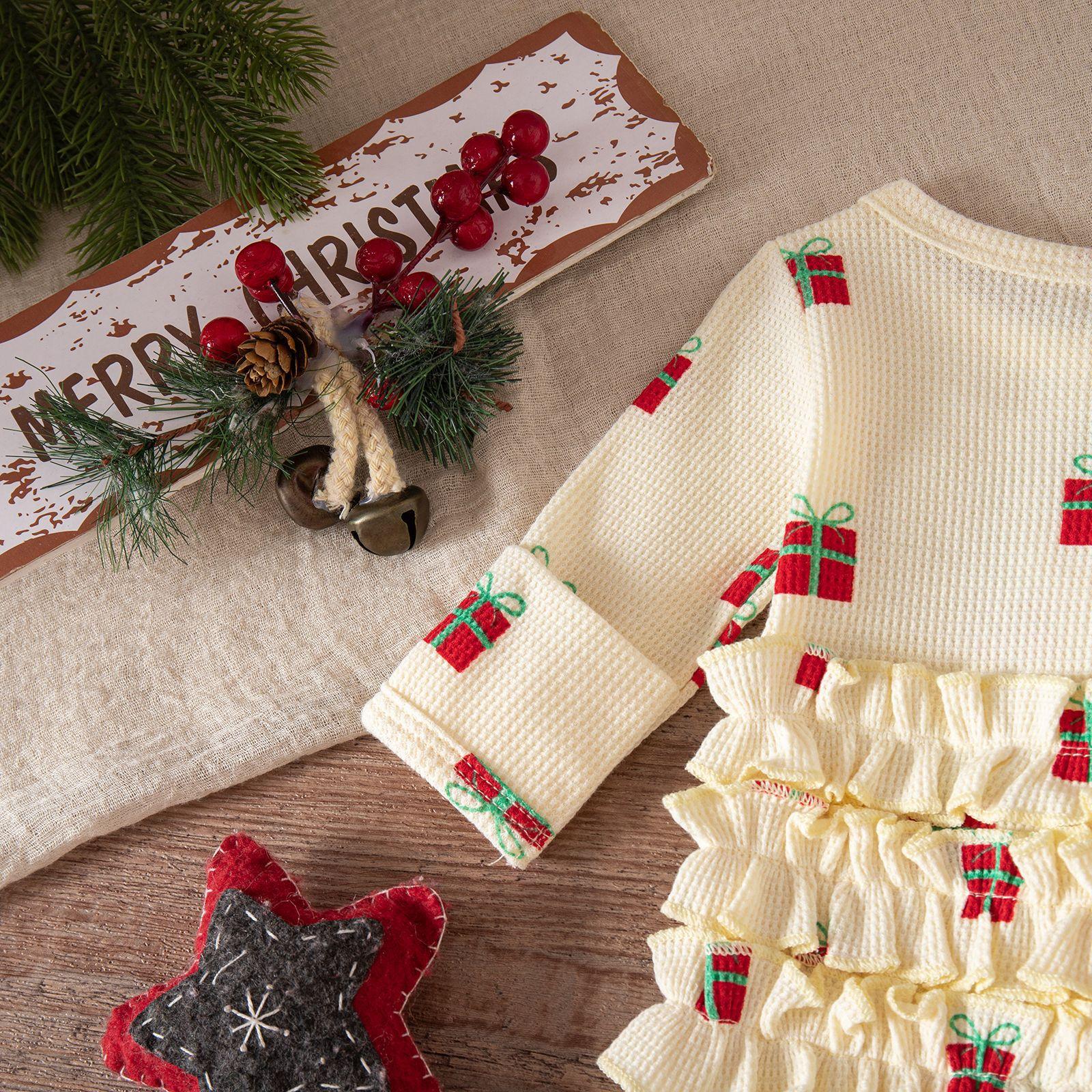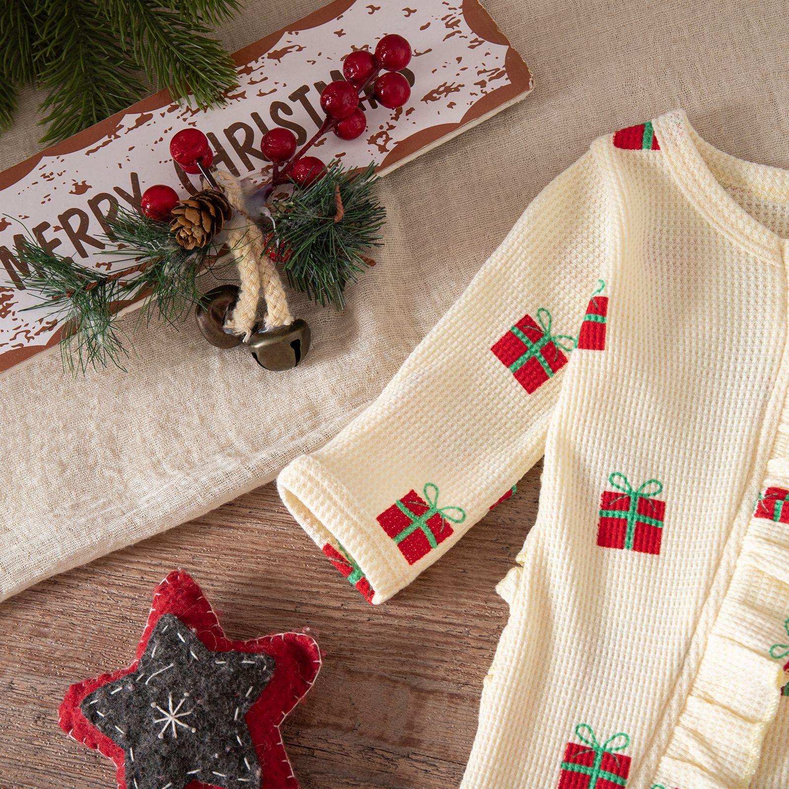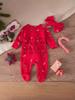 Macacão de Natal para Bebê Outono Amazon Transfronteiriço com Pés Roupa de Rastejar Ha Conjunto de Duas Peças com Faixa de Cabelo Roupa Casual