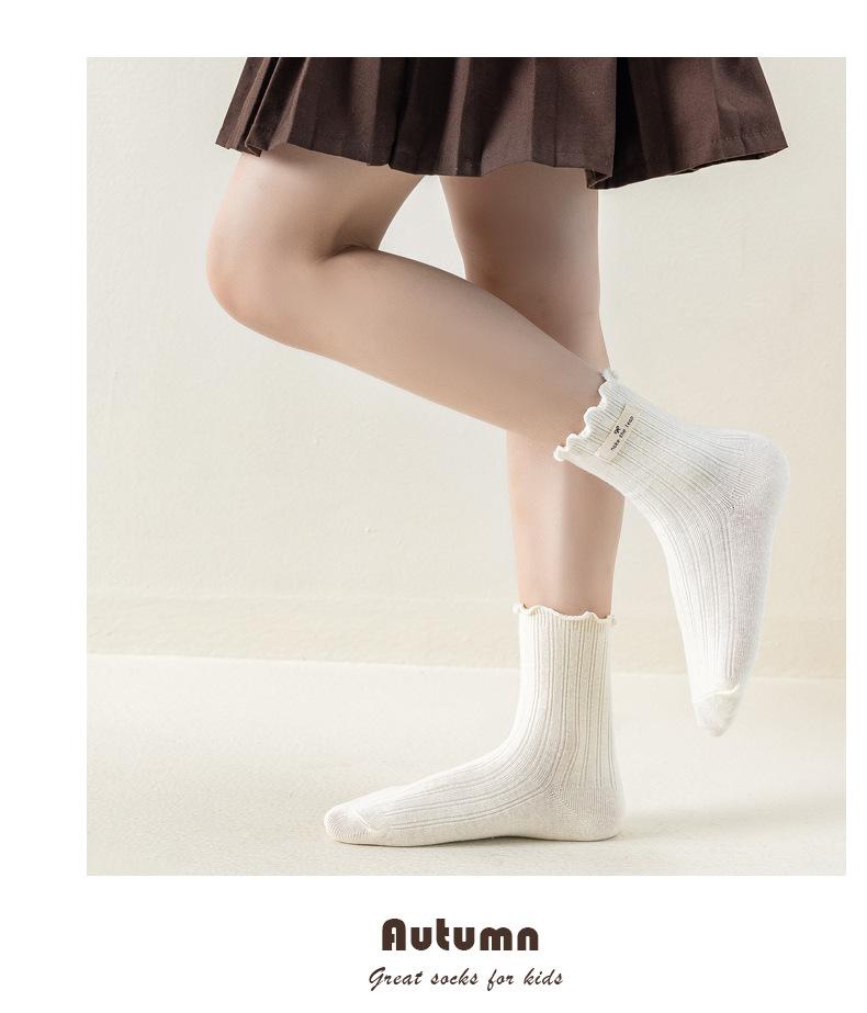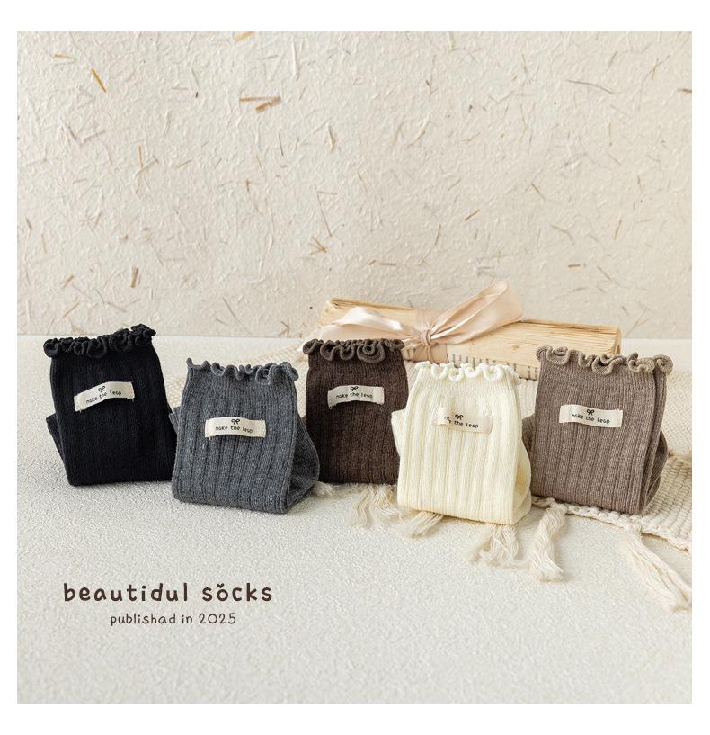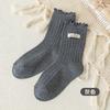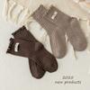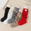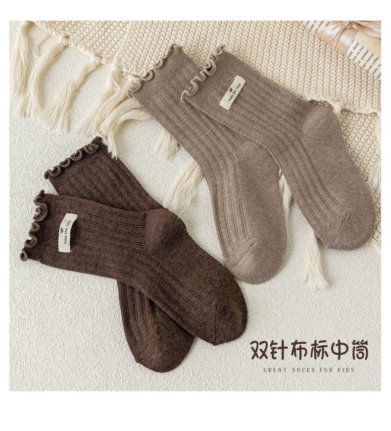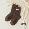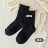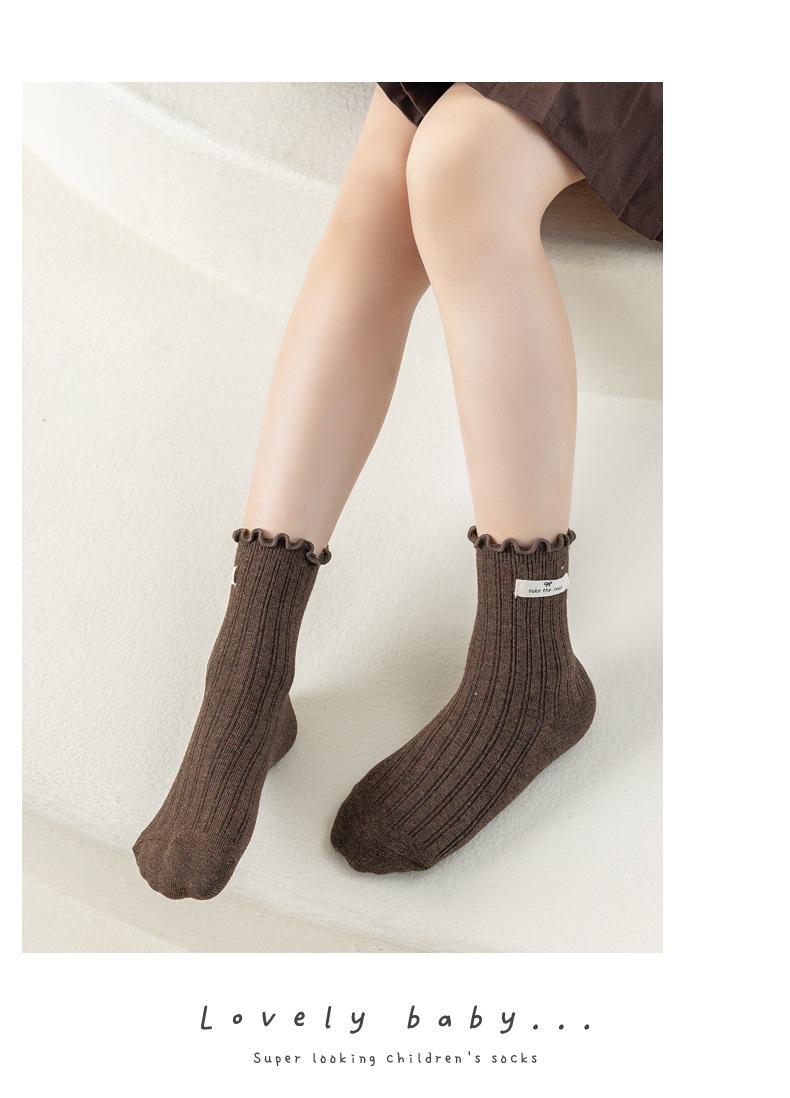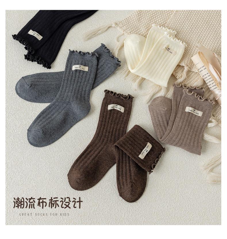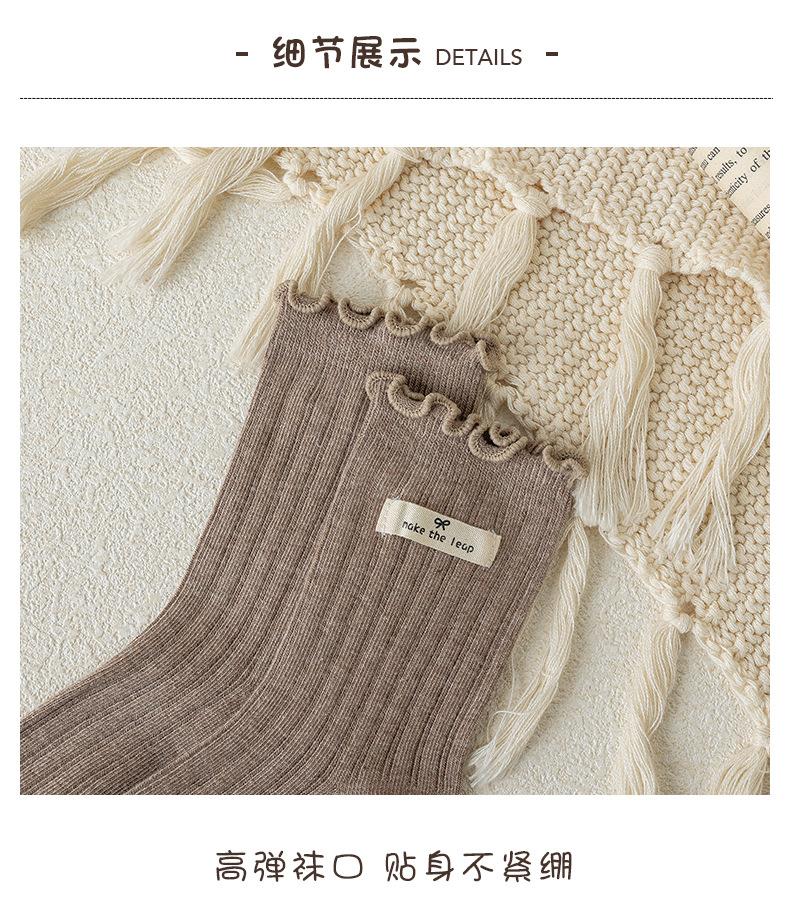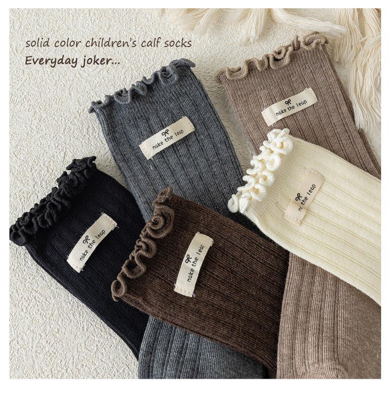 Meias Infantis Estilo Outono Meias Até o Joelho Cor Sólida Borda Babado Etiqueta de Tecido ins Modernas Meias de Algodão Felpudas para Crianças Médias/Grandes Atacado