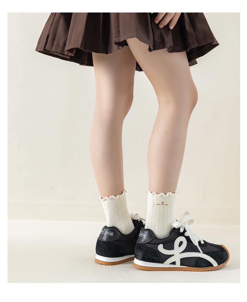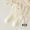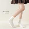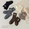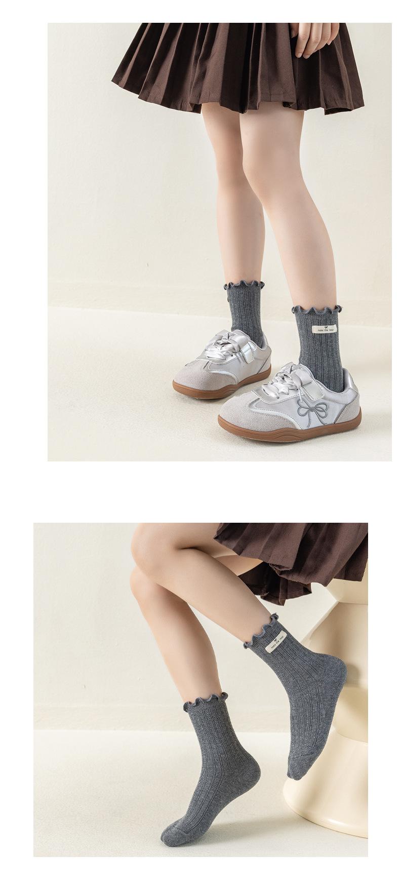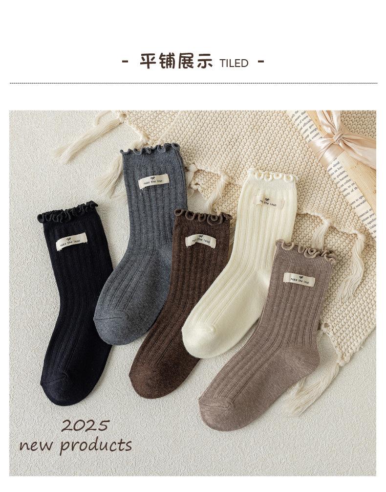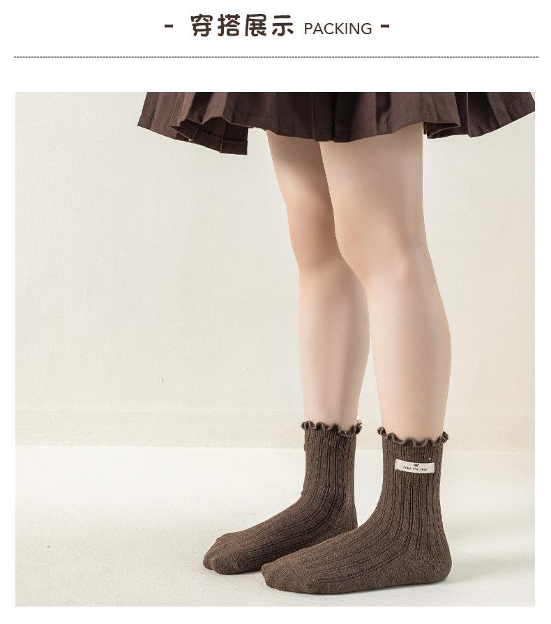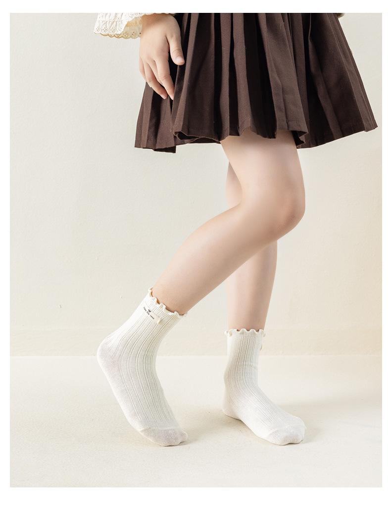 Meias Infantis Estilo Outono Meias Até o Joelho Cor Sólida Borda Babado Etiqueta de Tecido ins Modernas Meias de Algodão Felpudas para Crianças Médias/Grandes Atacado