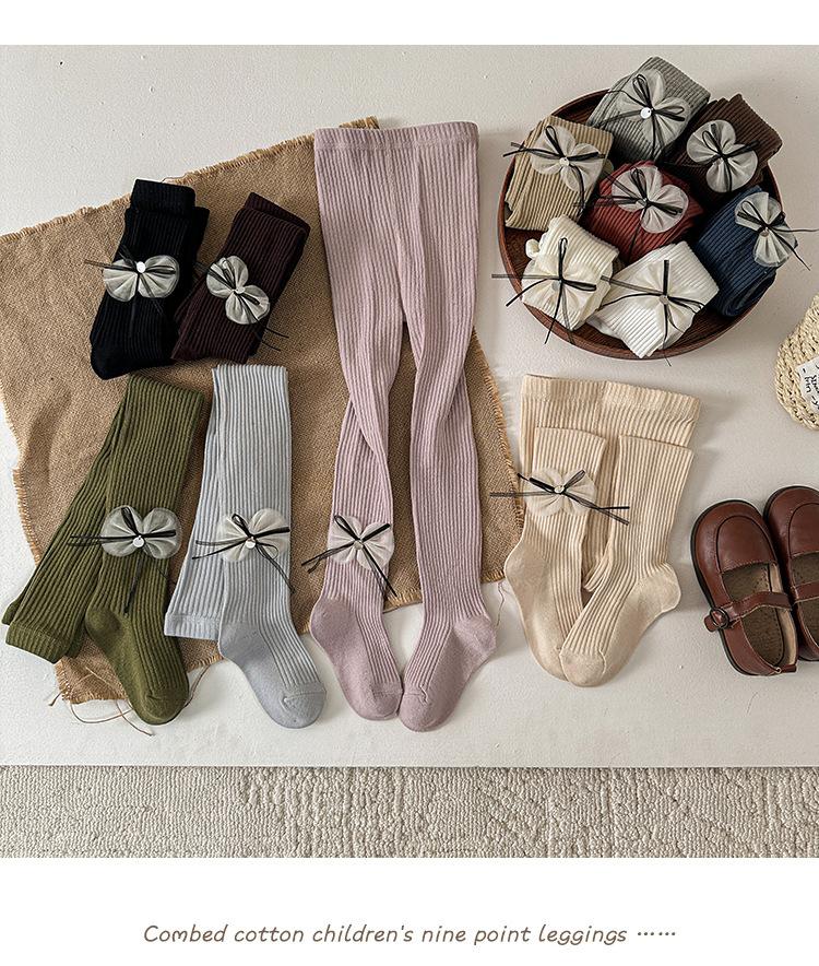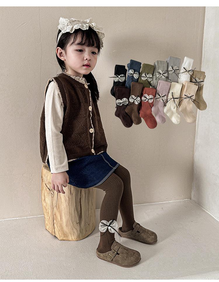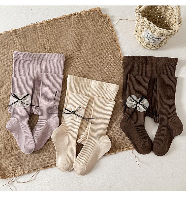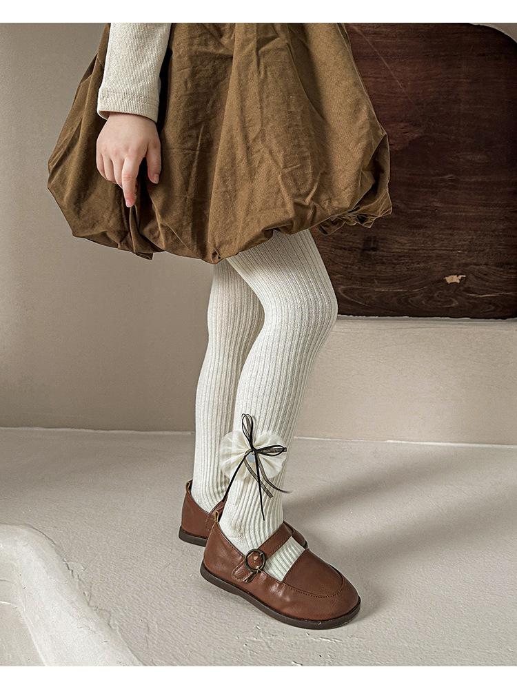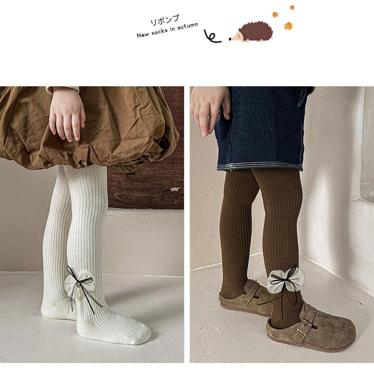 Compre Meias Infantis 2025 Outono Novo Laço Listra Vertical Meia-Calça para Meninas Meia-Calça Infantil Pequena e Média Leggings Infantis no atacado no Joom.pro