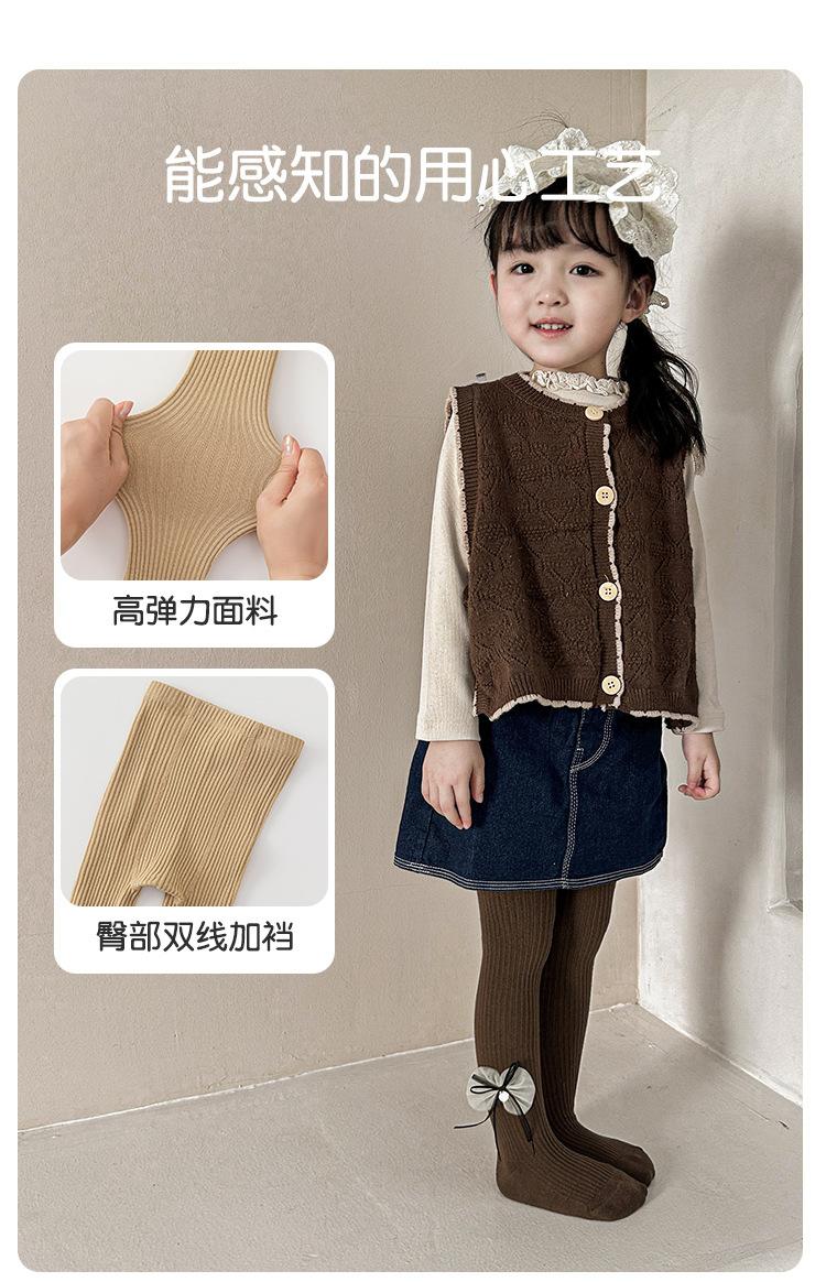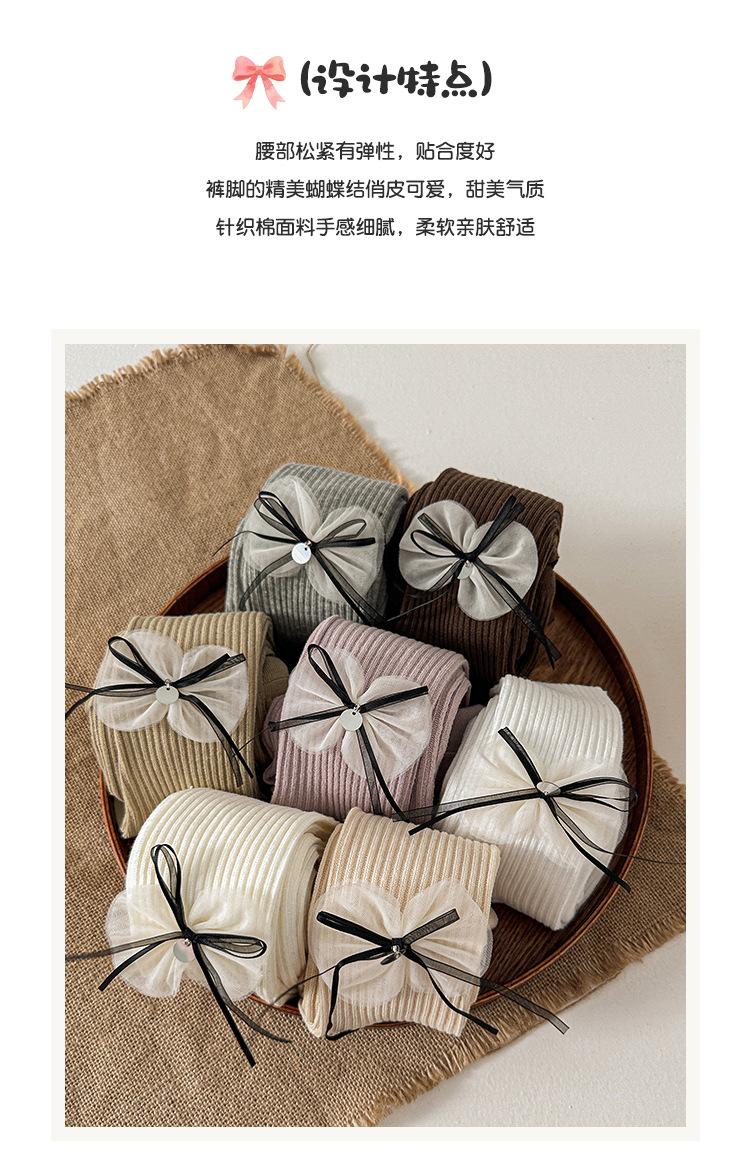 Meias Infantis 2025 Outono Novo Laço Listra Vertical Meia-Calça para Meninas Meia-Calça Infantil Pequena e Média Leggings Infantis