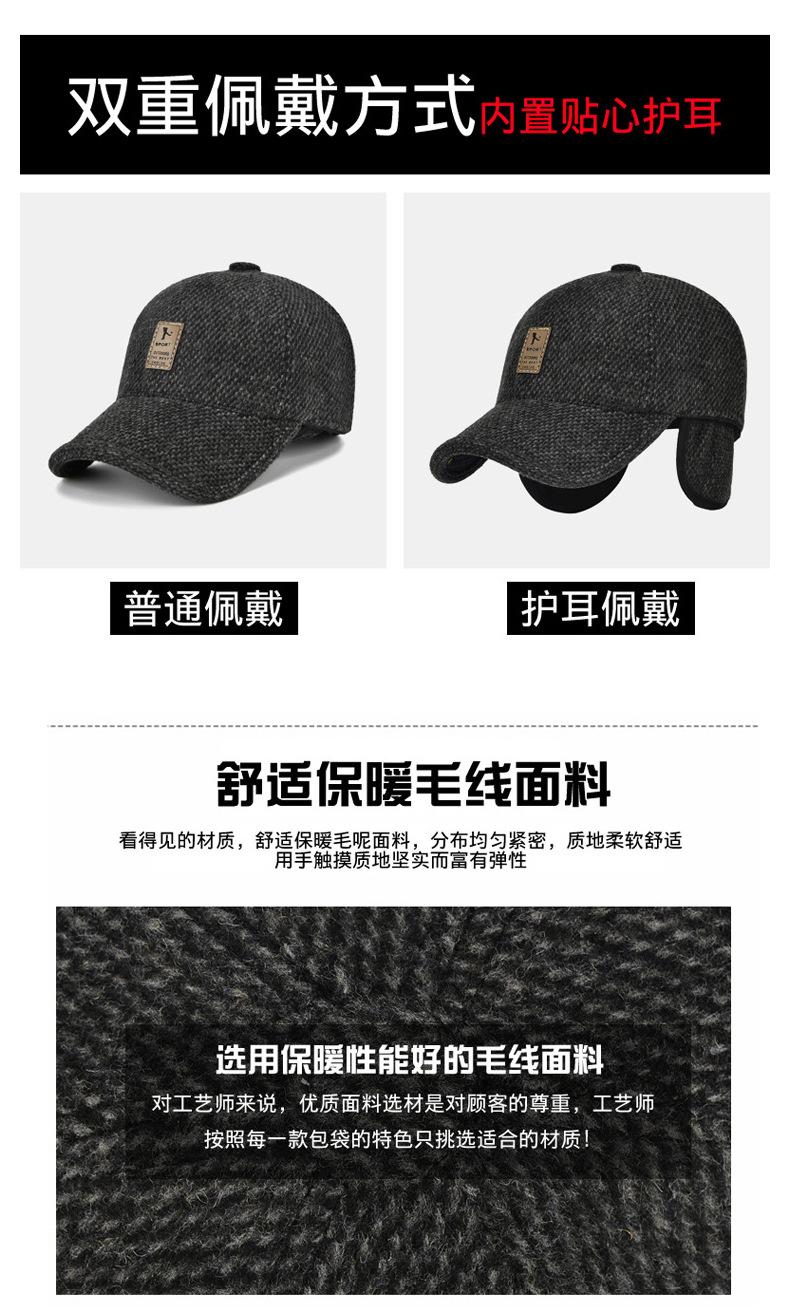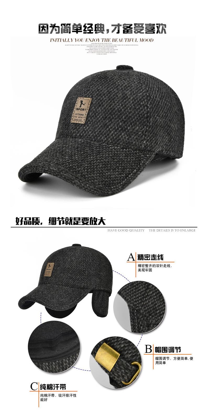 Chapéu Masculino 2025 Novo Outono e Inverno Meia-idade Pai Boné de Beisebol Espessado Quente Proteção de Orelhas Boné Combinável
