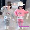 Conjunto de Suéter de Outono para Meninas 2025 Novo Conjunto Laço Manga Longa Tricô Infantil Saia Midi Conjunto de Duas Peças
