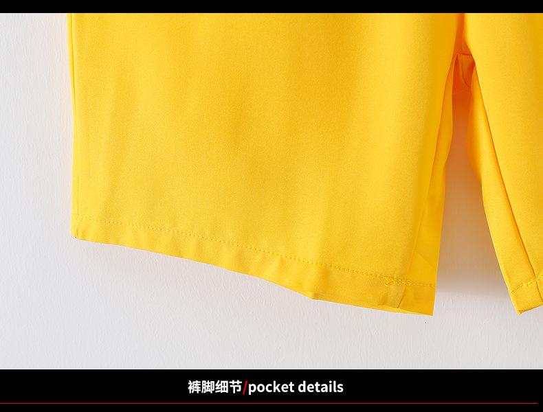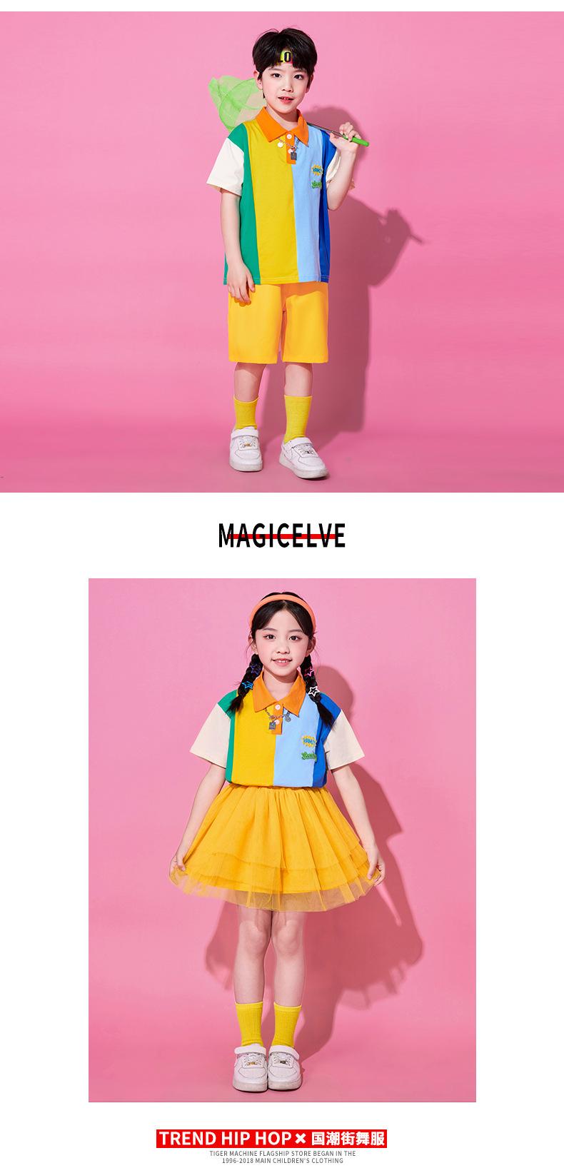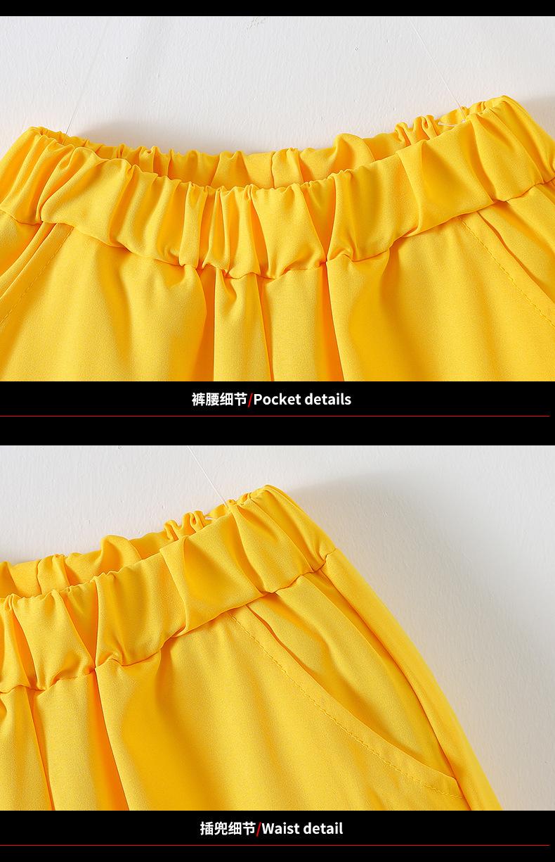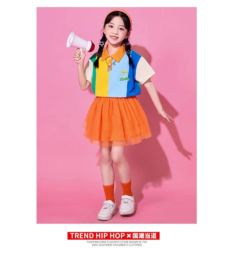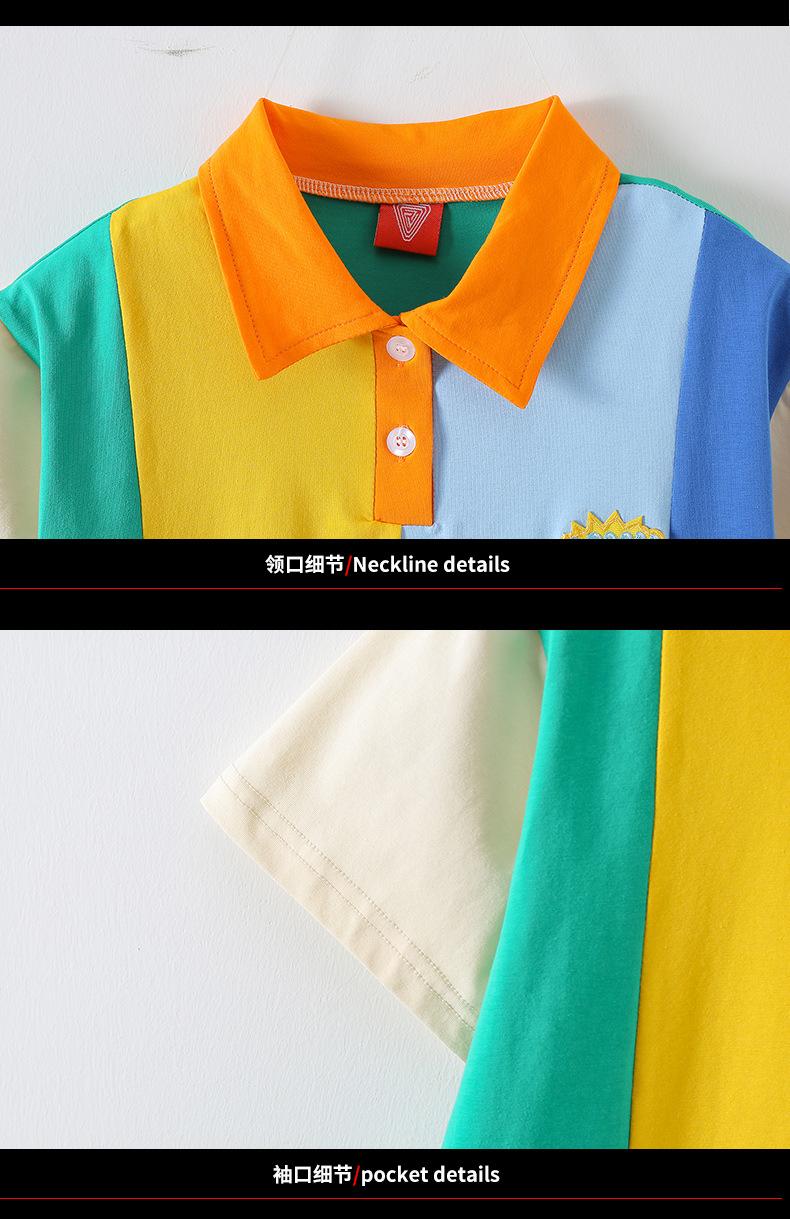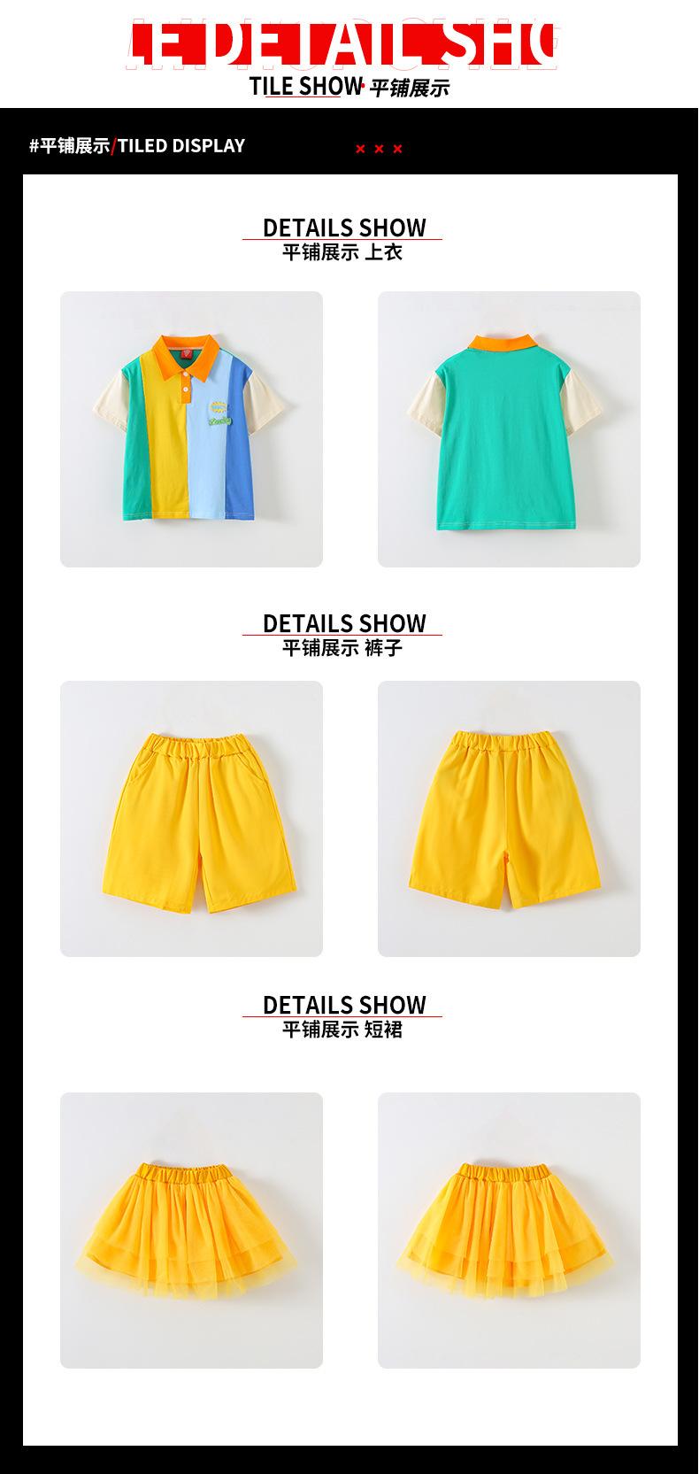 Orange lapel color block short sleeves, Orange shorts, Yellow shorts, Pure green shorts, Orange gauze skirt, Y...