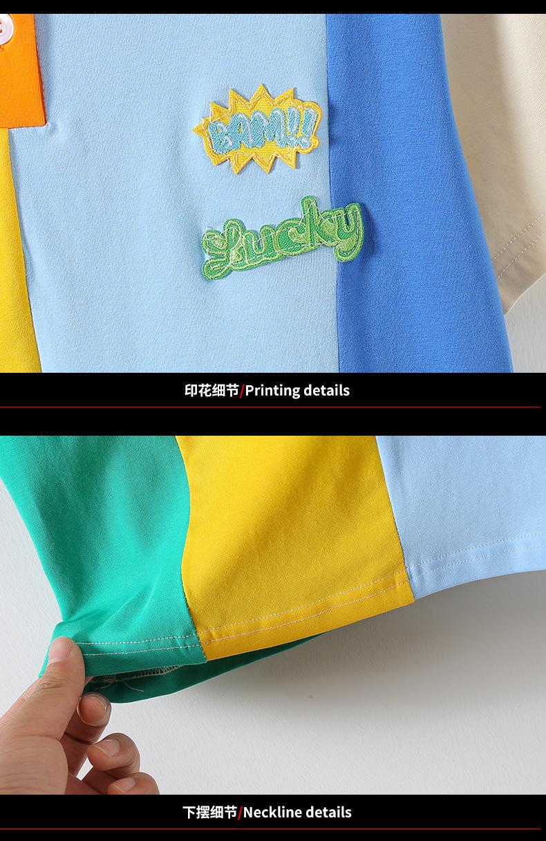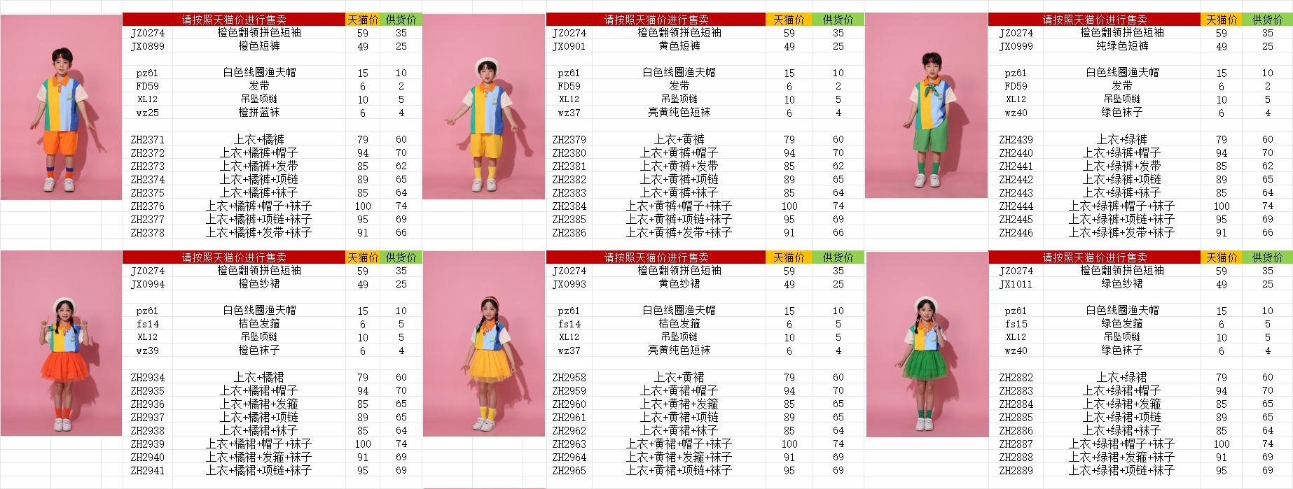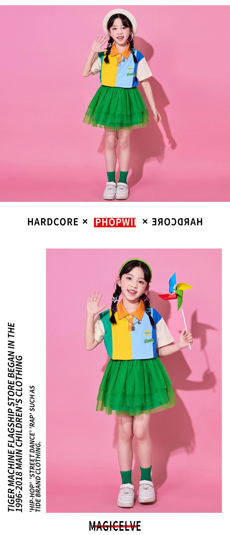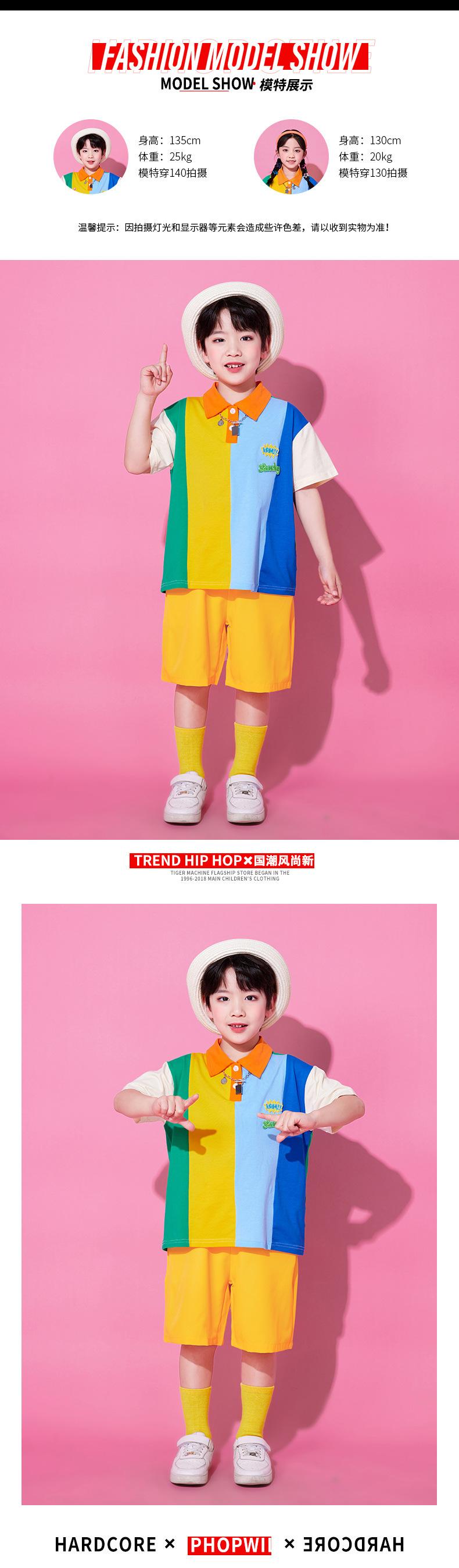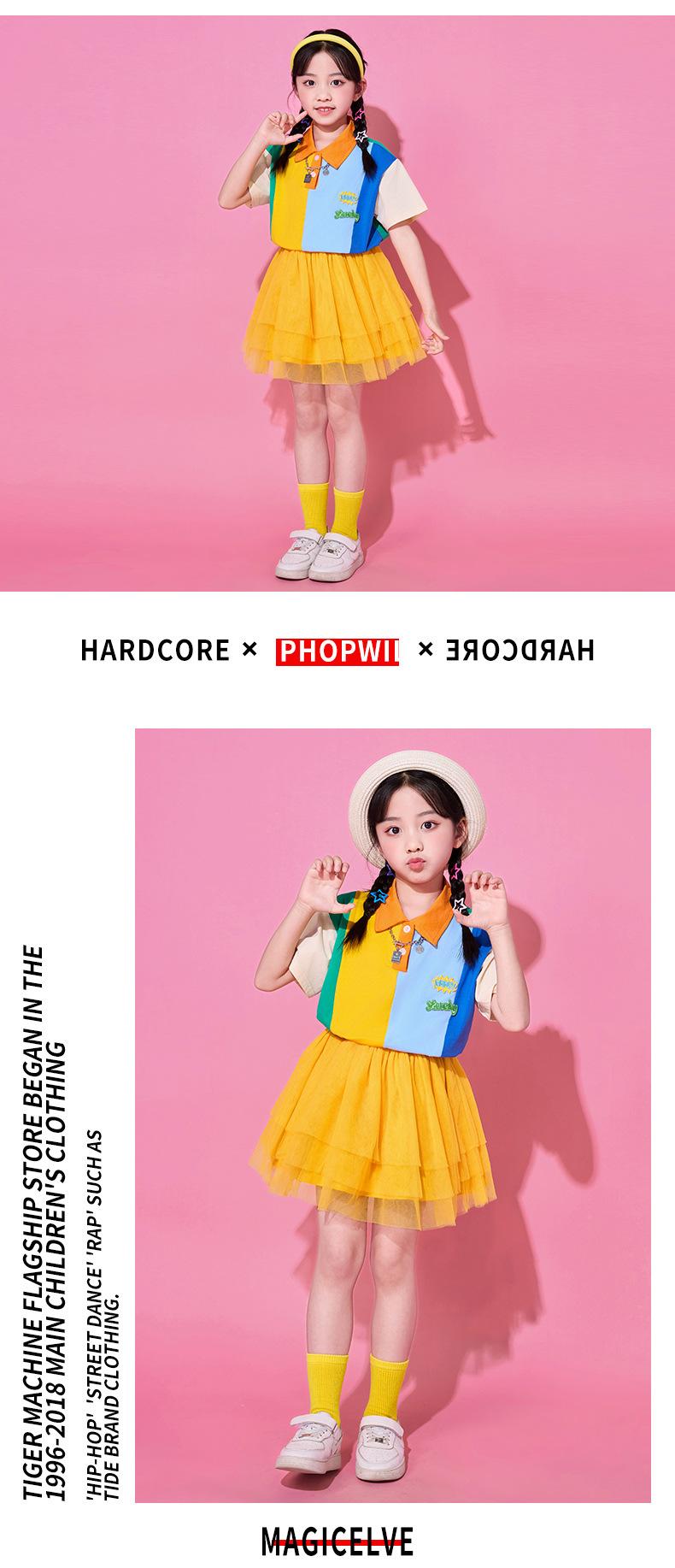 Orange lapel color block short sleeves, Orange shorts, Yellow shorts, Pure green shorts, Orange gauze skirt, Y...