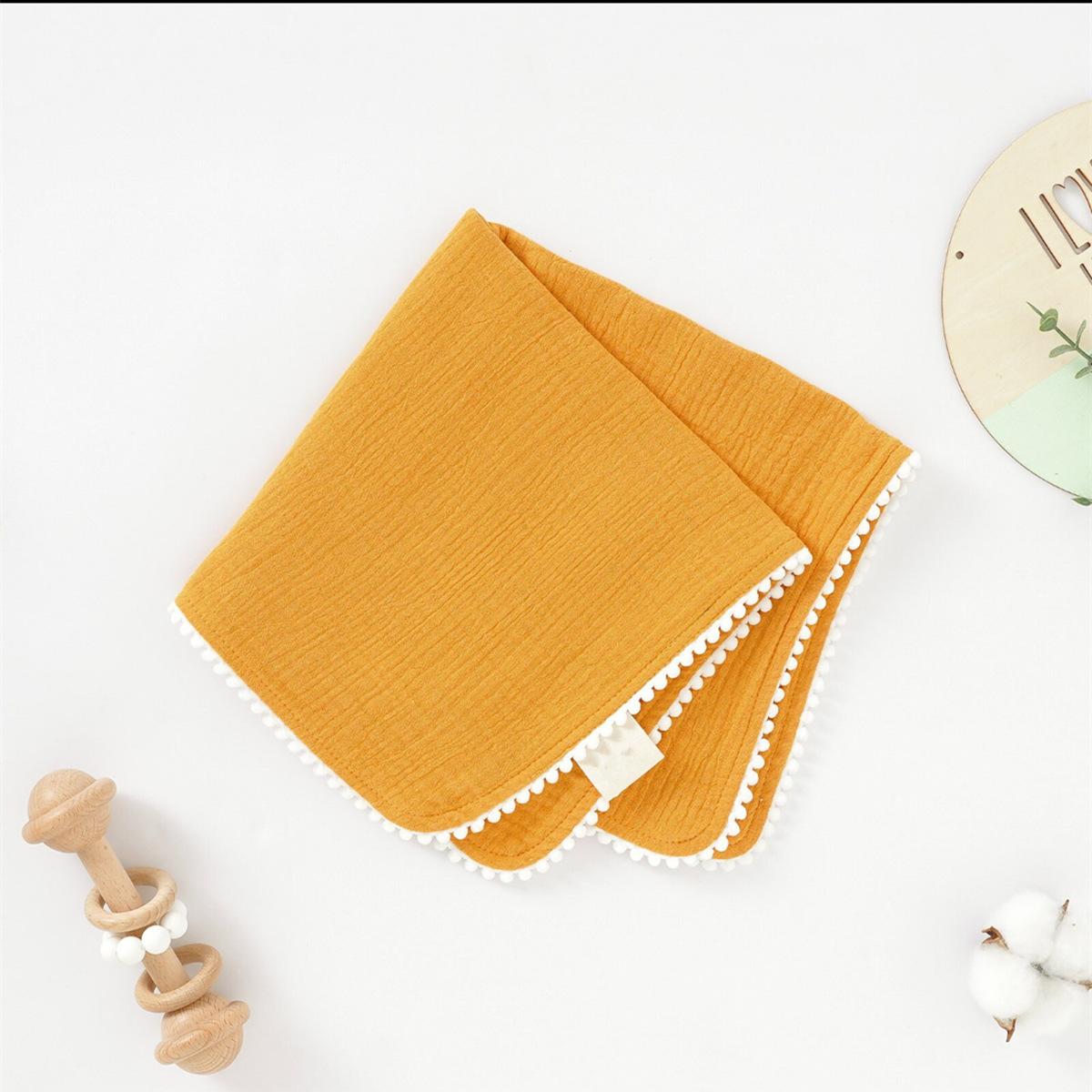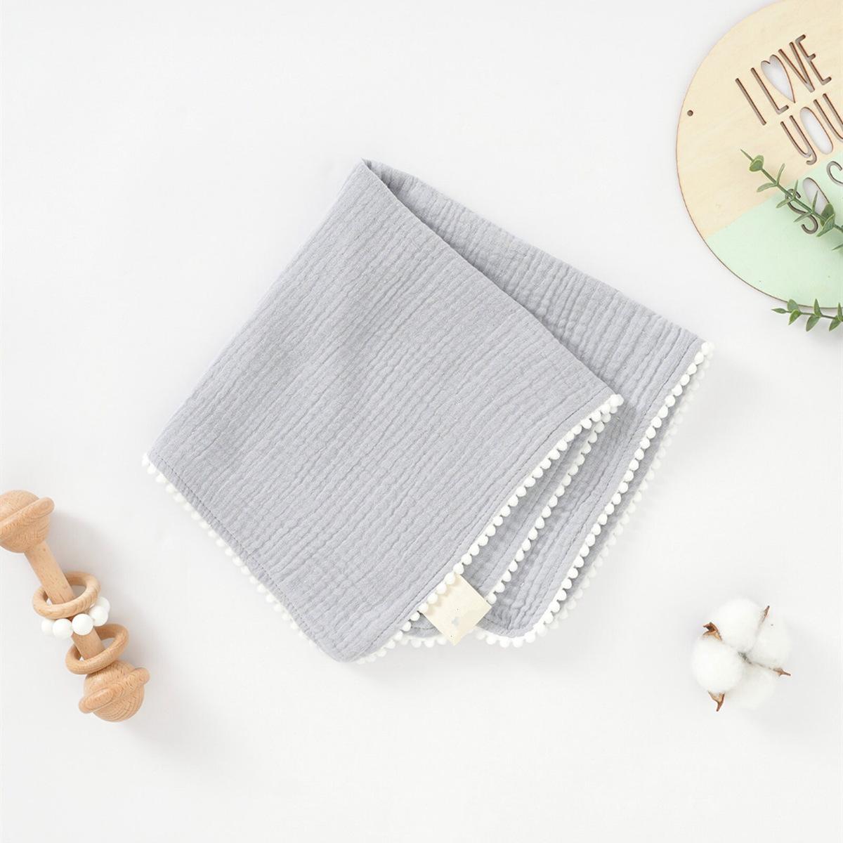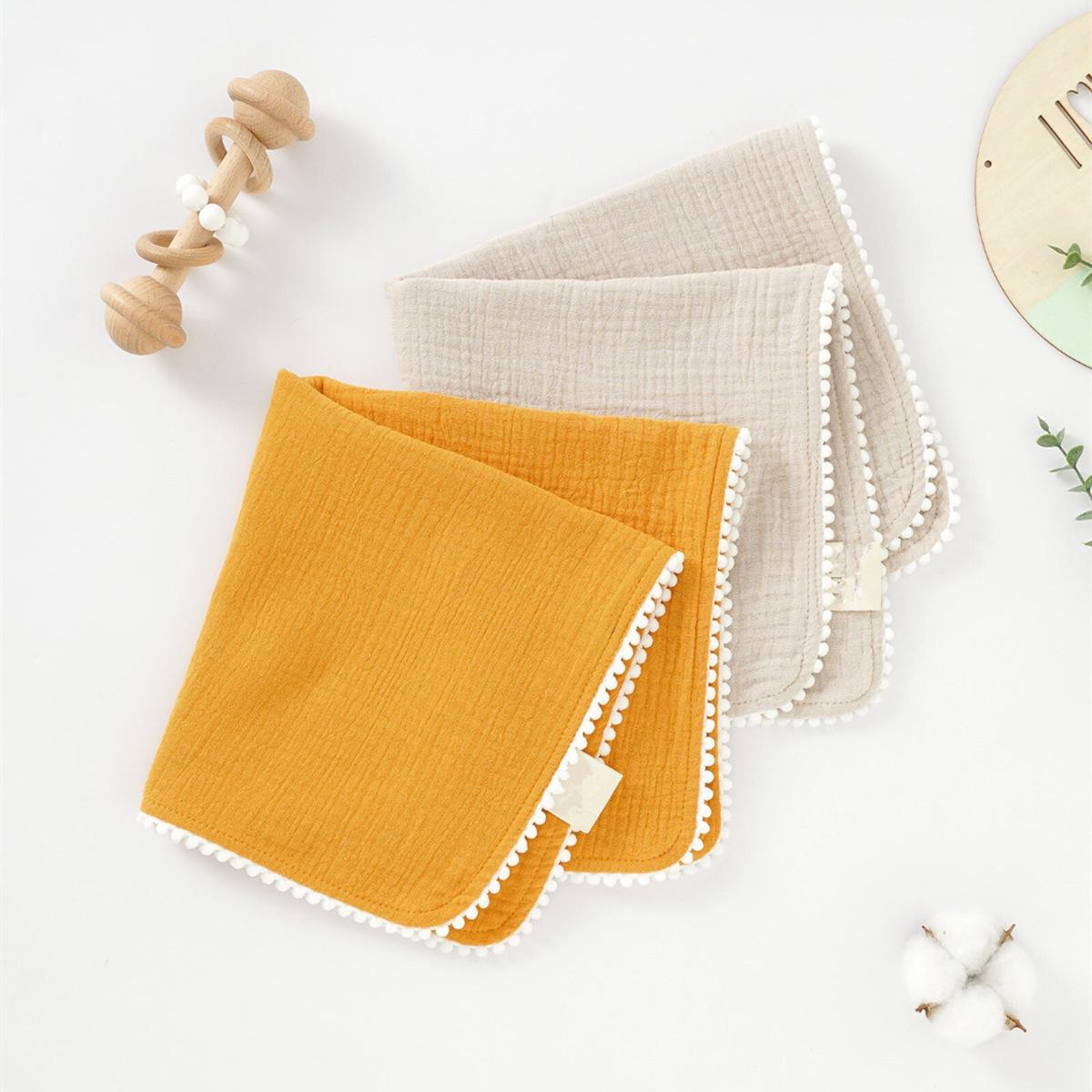 Babador de gaze de algodão de quatro camadas com renda pompom