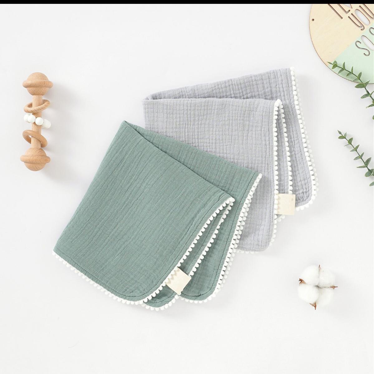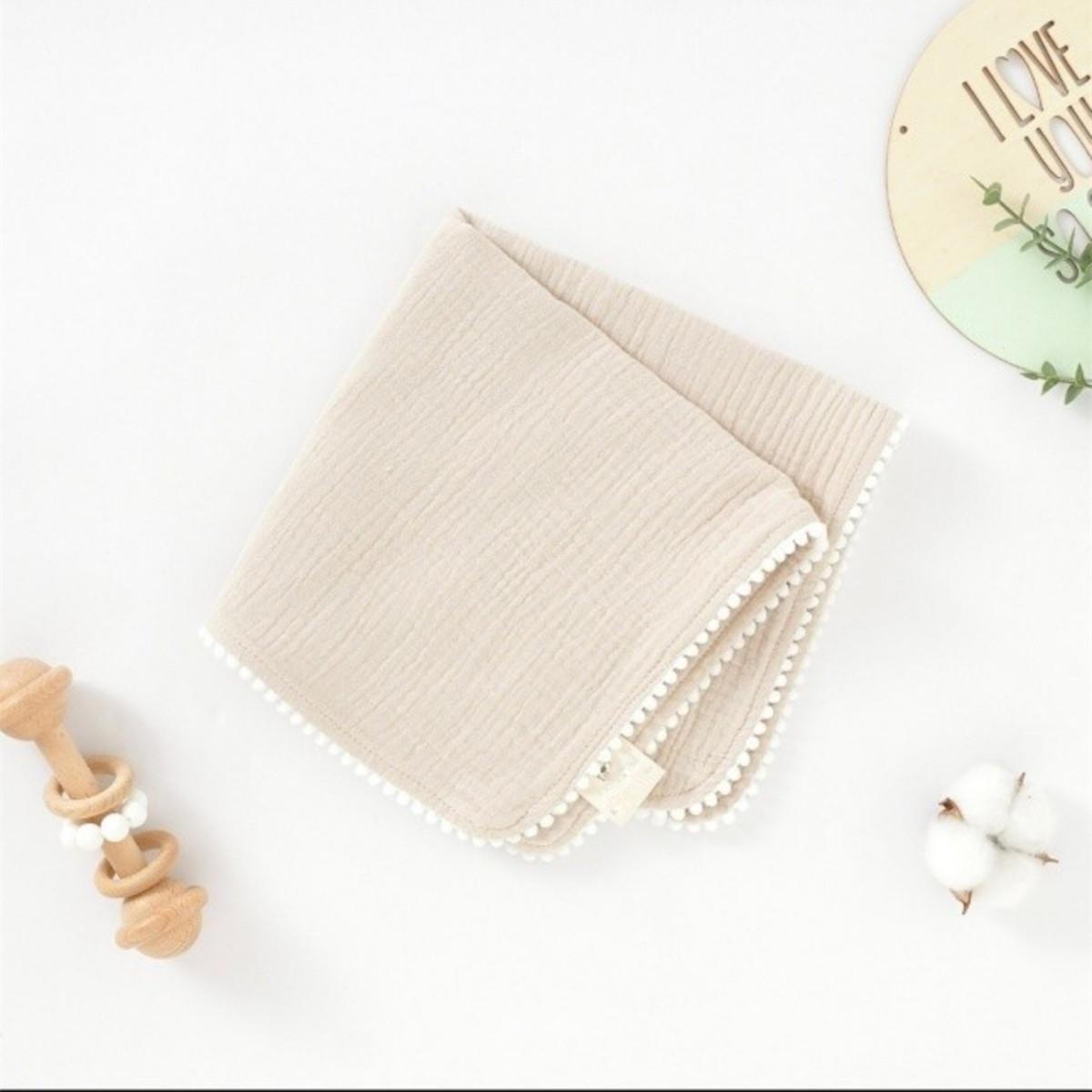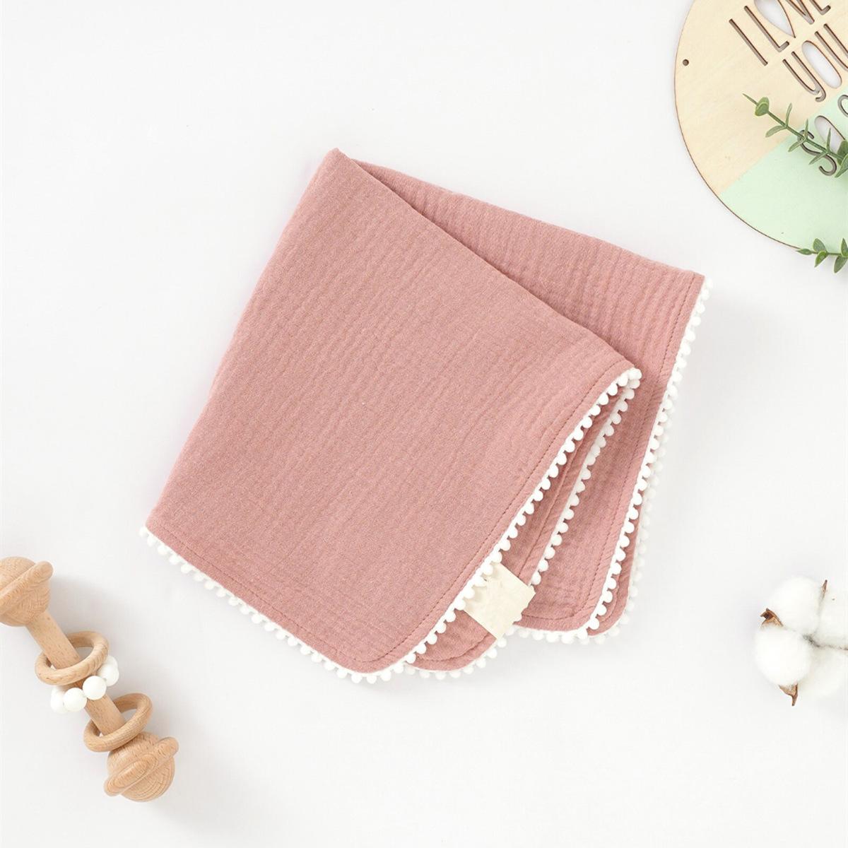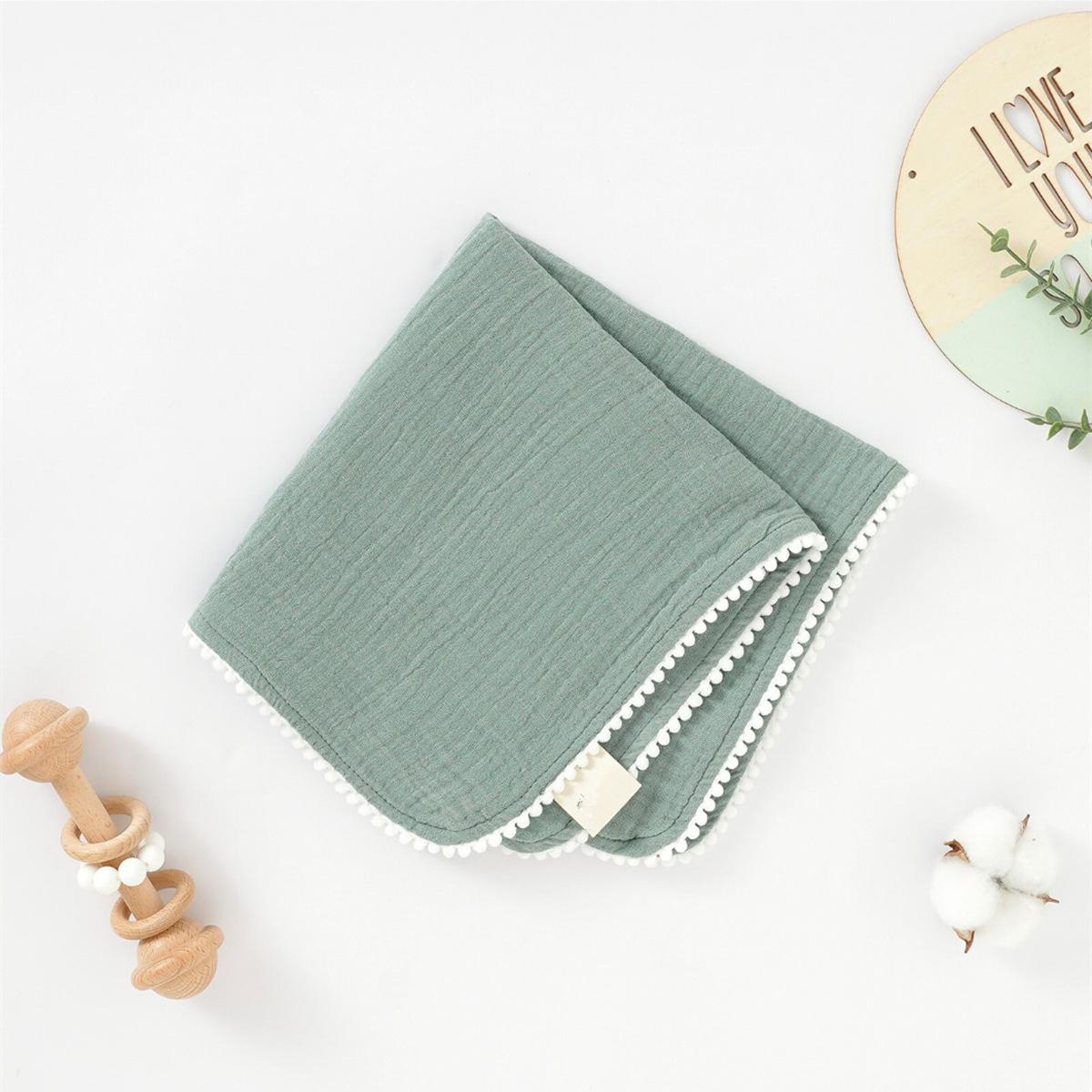 Babador de gaze de algodão de quatro camadas com renda pompom