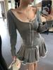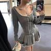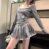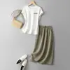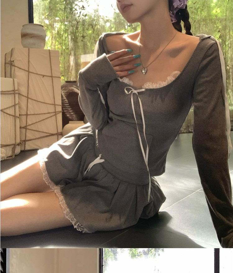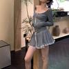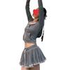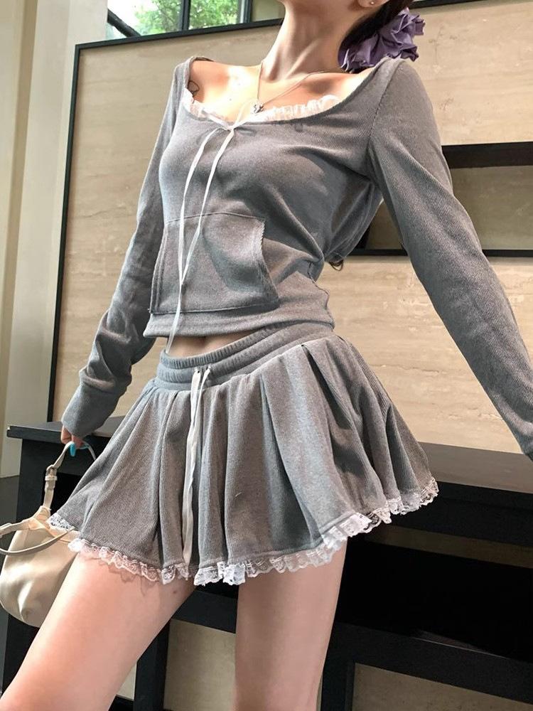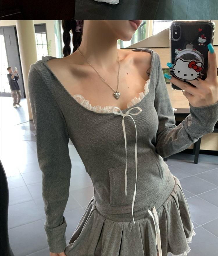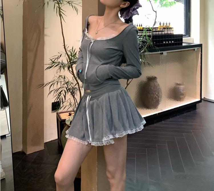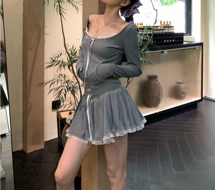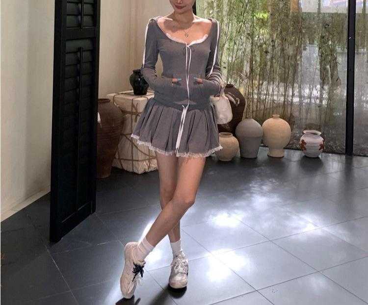 Camiseta Curta com Costura de Renda Roupa Spice Girls Nova Saia A-line Vestido Casual de Duas Peças para Primavera e Outono 2024