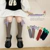 Meias infantis primavera e outono meias de cano médio meias fofas com laço meias modernas de borda enrolada para meninas crianças médias e grandes estudantes meias felpudas
