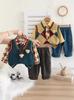 Conjunto de Primavera e Outono para Meninos 2024 Novo Conjunto de Duas Peças Estilo Ocidental para Bebê Menino Outono 01-3 Anos Roupa Infantil Moda