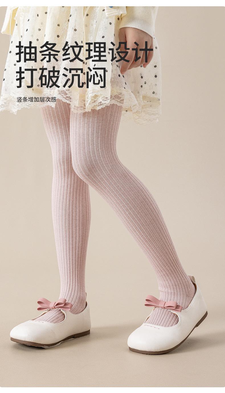 25 Meias-calças infantis de primavera outono para meninas Classe A Leggings Camada base Roupa exterior Cor sólida Algodão puro