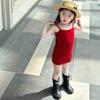 Vestido de Verão para Meninas Moda Bebê Infantil Elegante Tendência Marca Estilo Coreano Bolinhas Vermelho Princesa Colete Saia Suspender