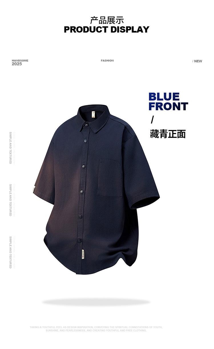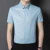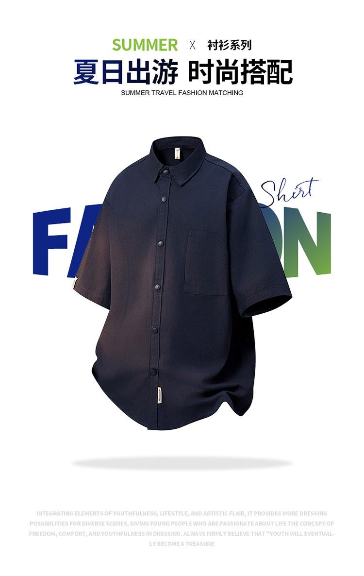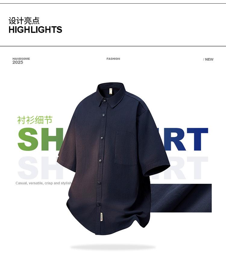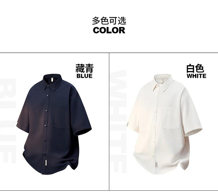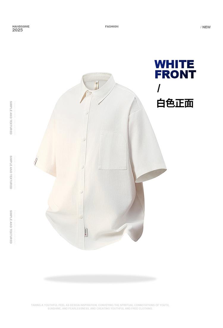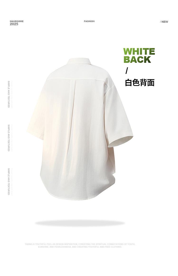 2025 Nova Camisa Masculina de Verão Patchwork Camisa Masculina de Manga Curta Marca da Moda Cor Sólida Branca Top