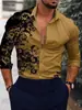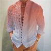 Camisa Masculina Slim Fashion Cardigan de Manga Longa com Estampa Gradiente Transfronteiriça Europeia e Americana 2023 com Impressão Digital 3D