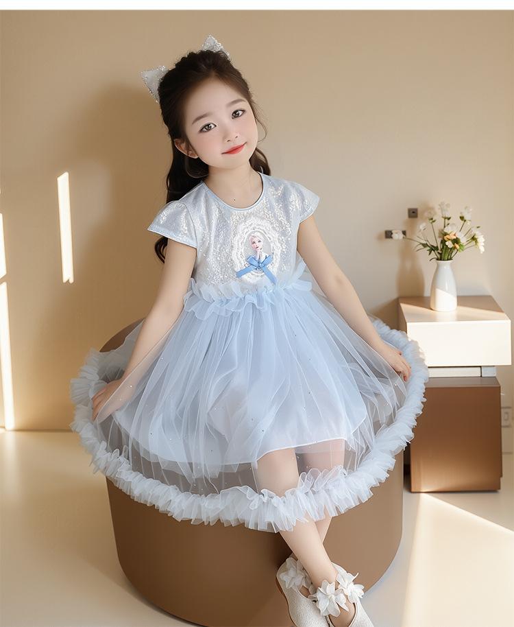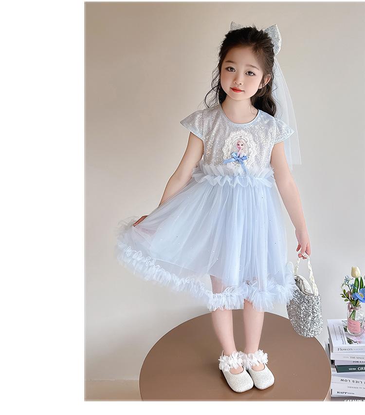 Vestido de Verão para Meninas 2025 Novo Estilo Vestido de Verão para Bebê Vestido de Princesa Elsa Vestido de Aniversário Saia Bufante