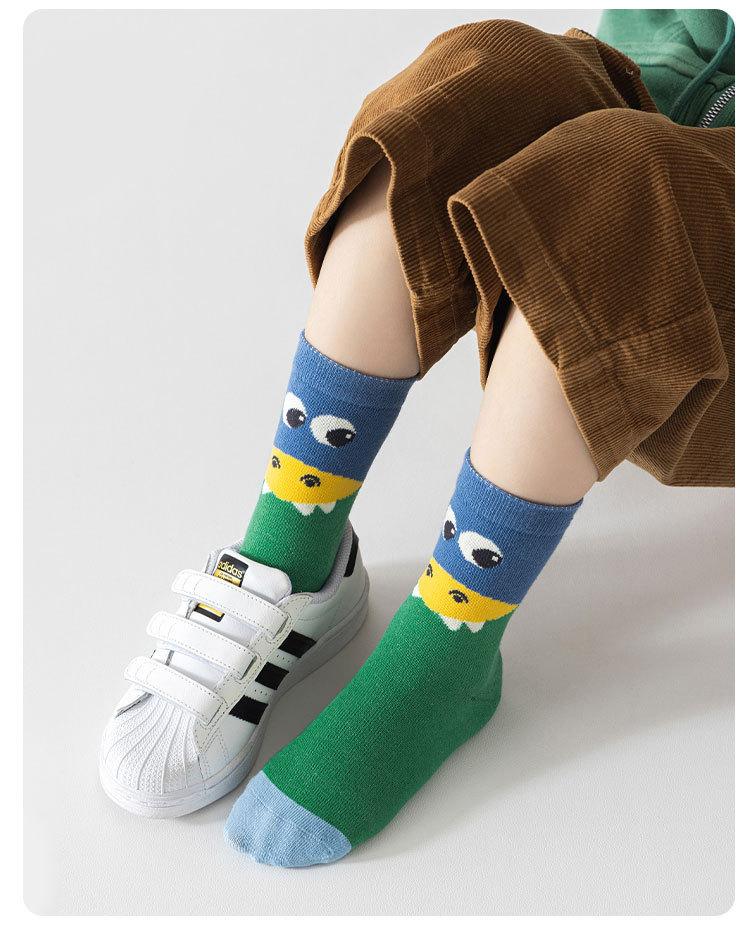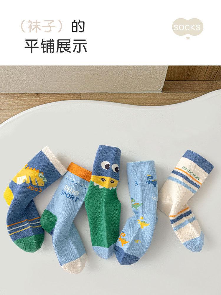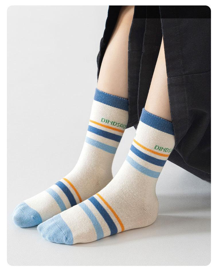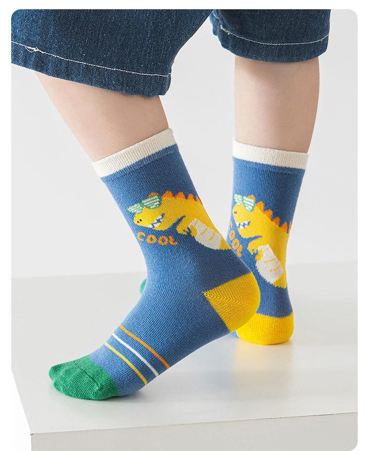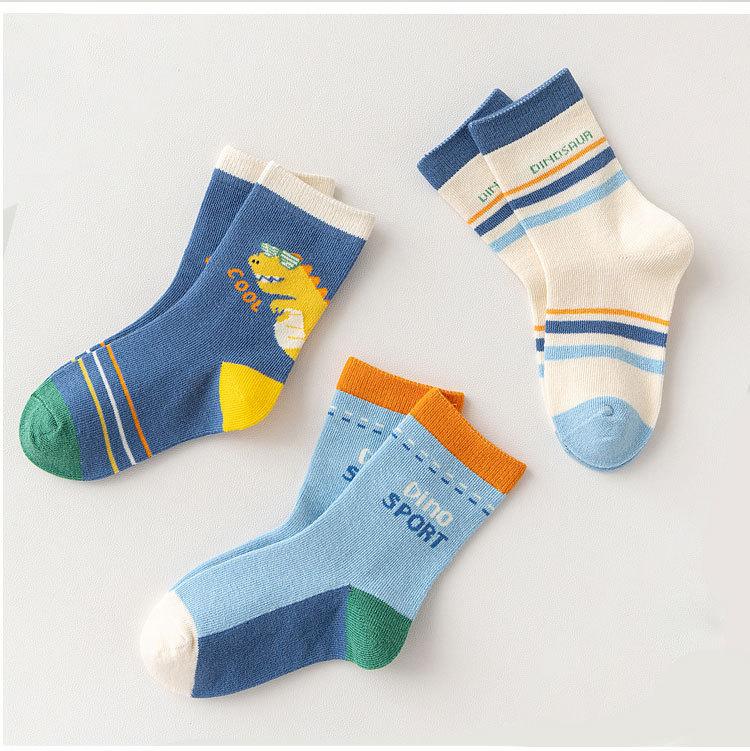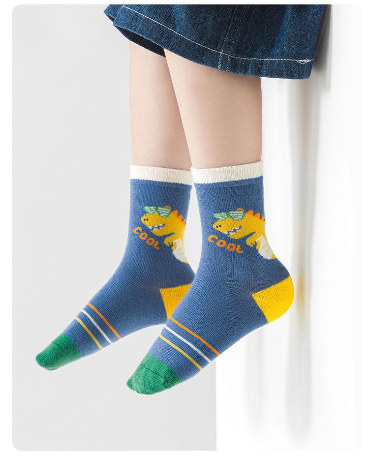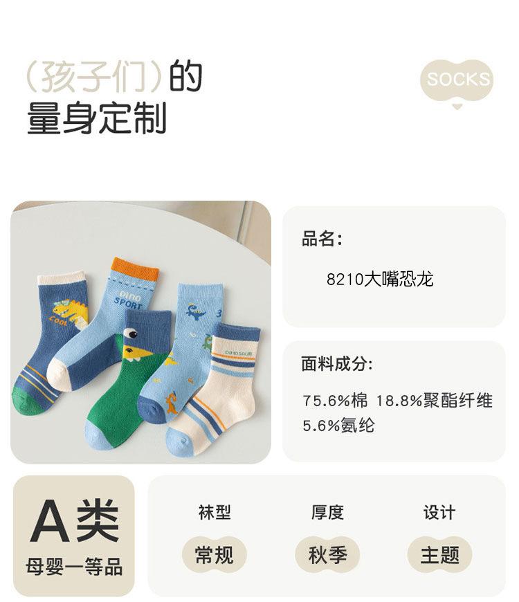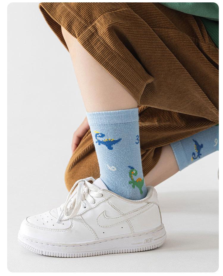 Meias de Outono para Meninos 2025 Meias de Cano Médio com Desenho de Dinossauro Meias Infantis Classe A Meias de Algodão Médias e Grandes para Crianças Meias de Bebê