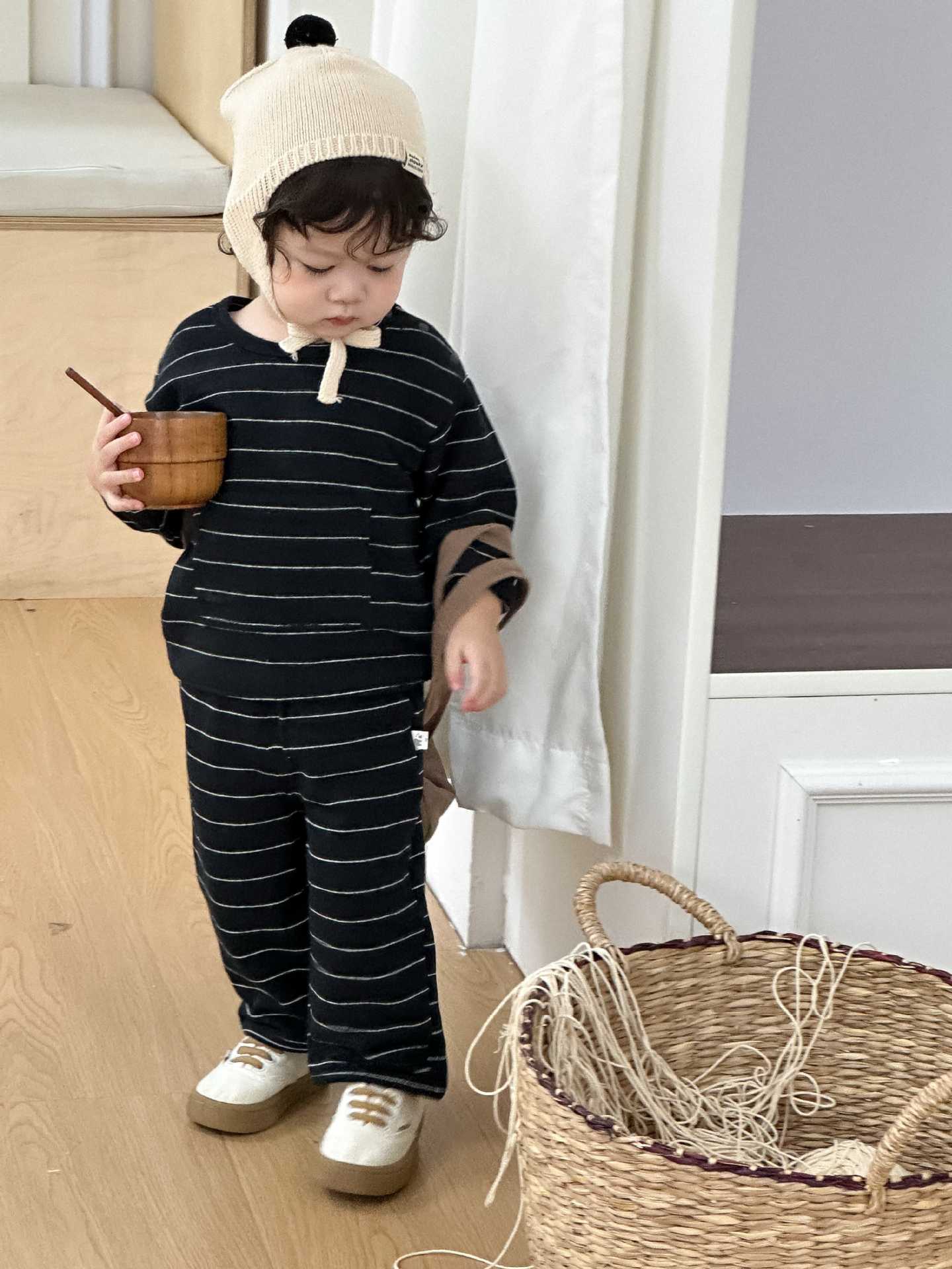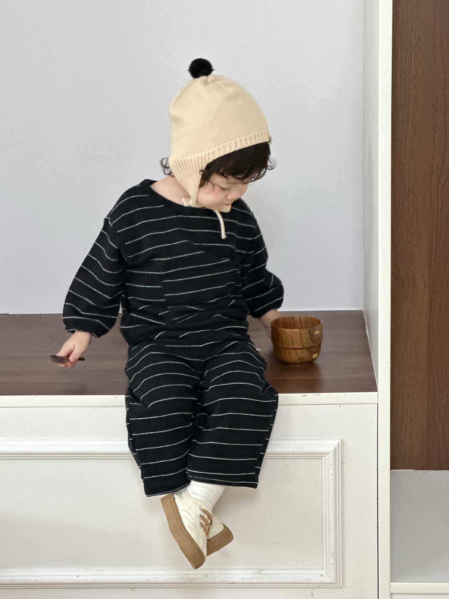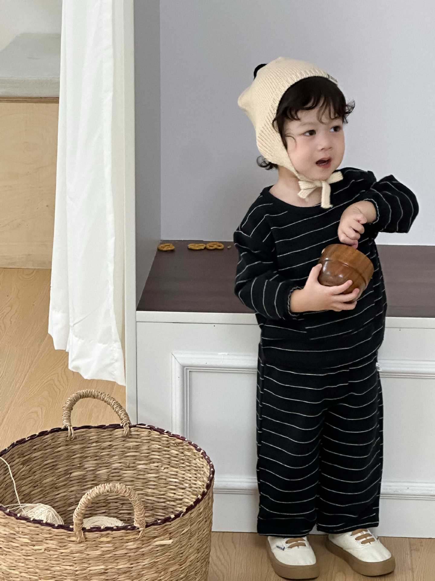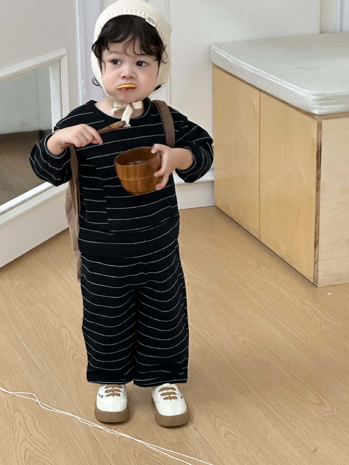 Conjunto Listrado para Meninos 2025 Outono Novo Estilo Coreano Roupas Infantis Roupas de Bebê Calças de Outono Roupas de Outono Infantis Conjunto de Duas Peças