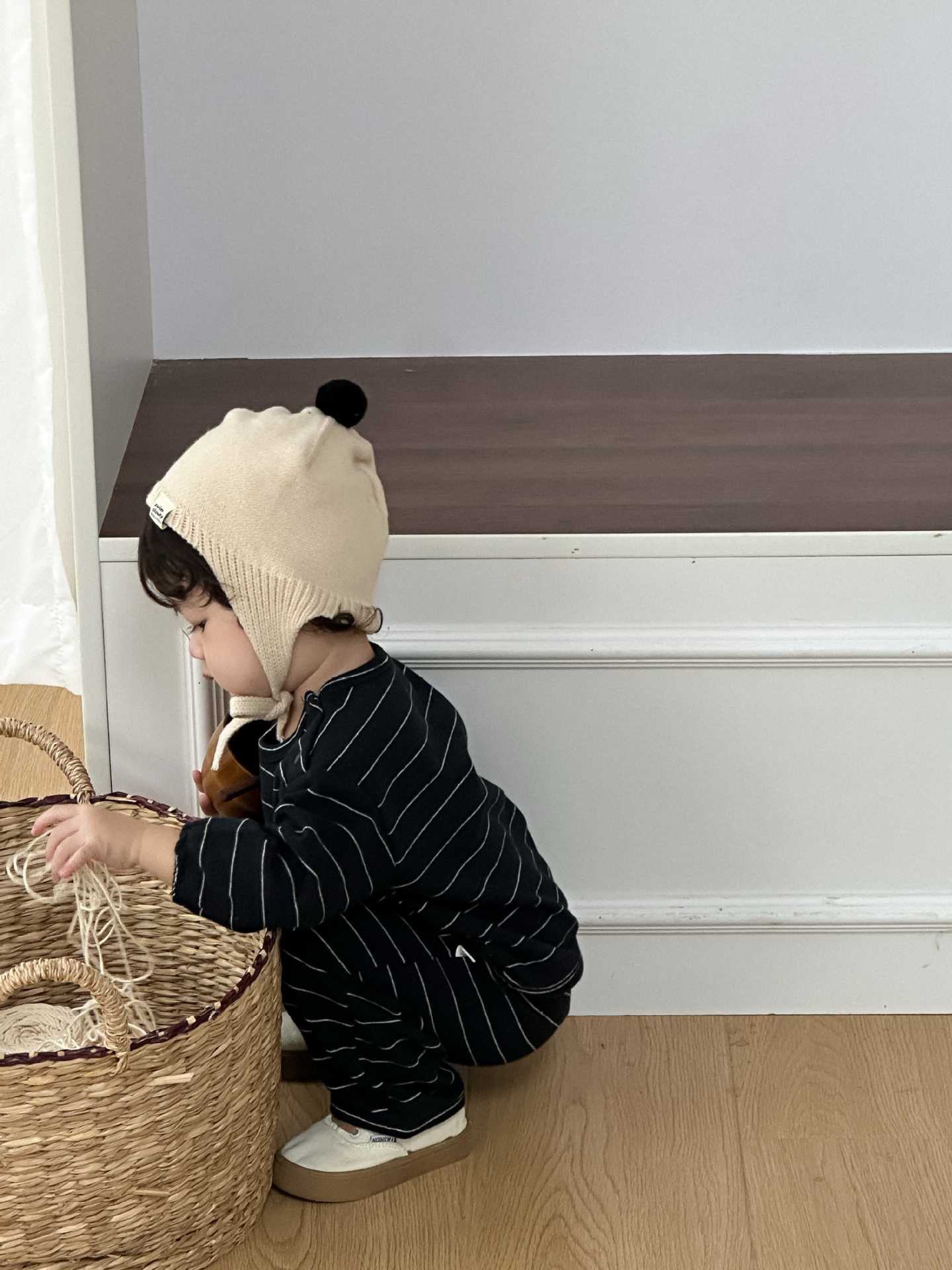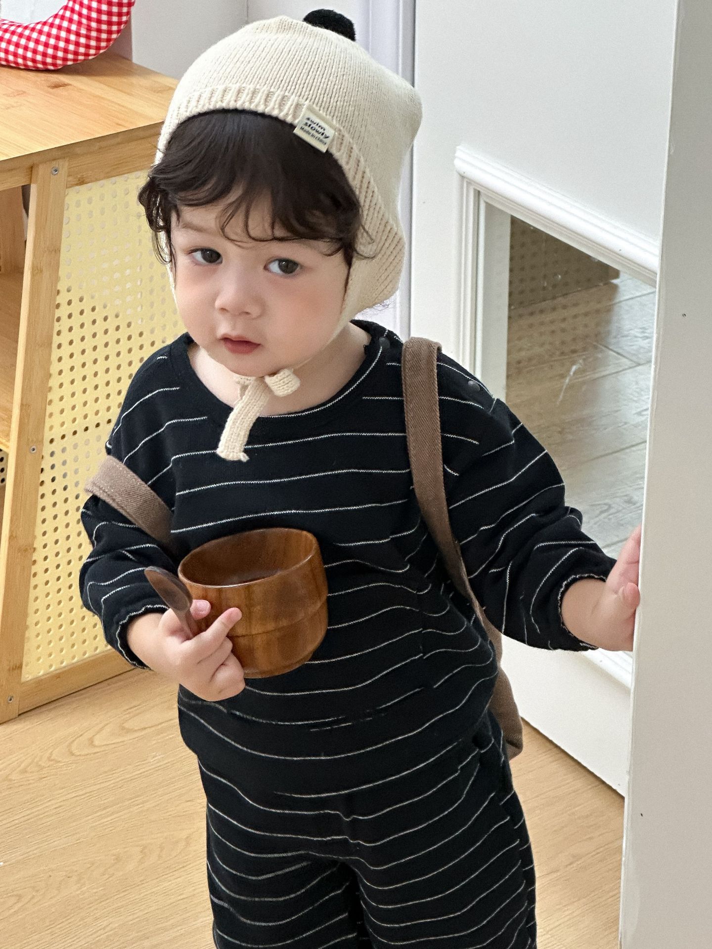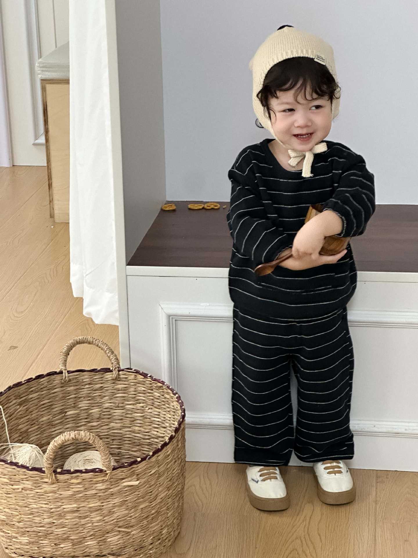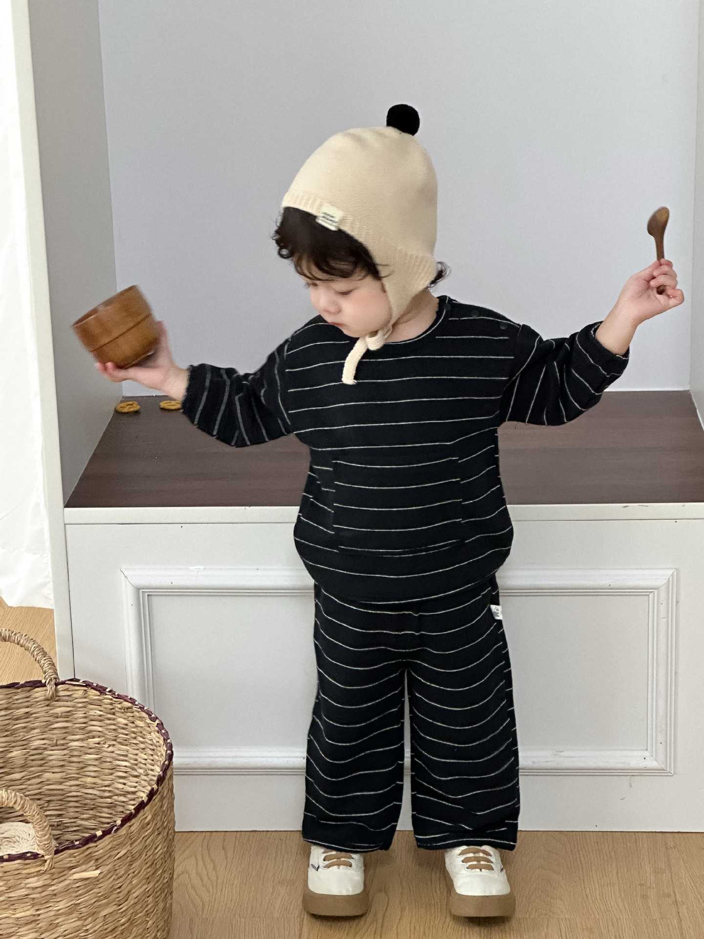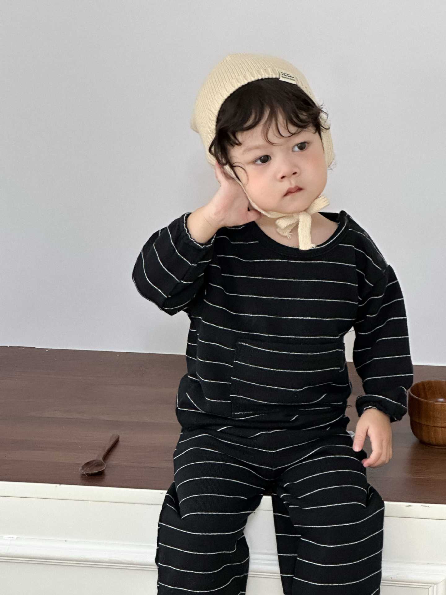 Conjunto Listrado para Meninos 2025 Outono Novo Estilo Coreano Roupas Infantis Roupas de Bebê Calças de Outono Roupas de Outono Infantis Conjunto de Duas Peças