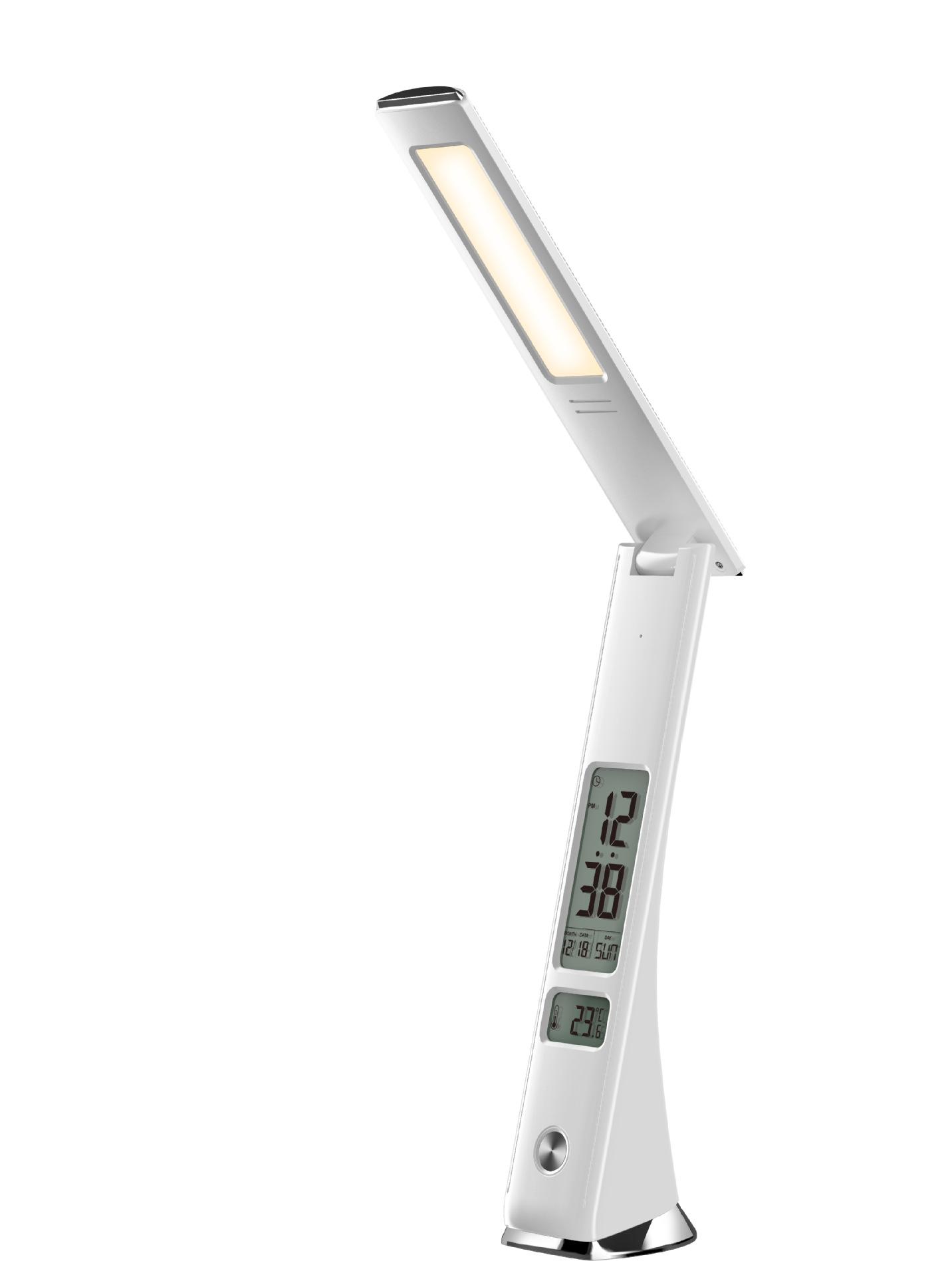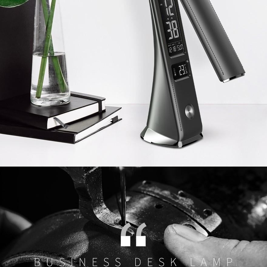 Lâmpada de mesa LED clássica simples com padrão de couro, para mesa de estudante, quarto, cabeceira, criativa, com calendário, despertador, luz noturna para leitura