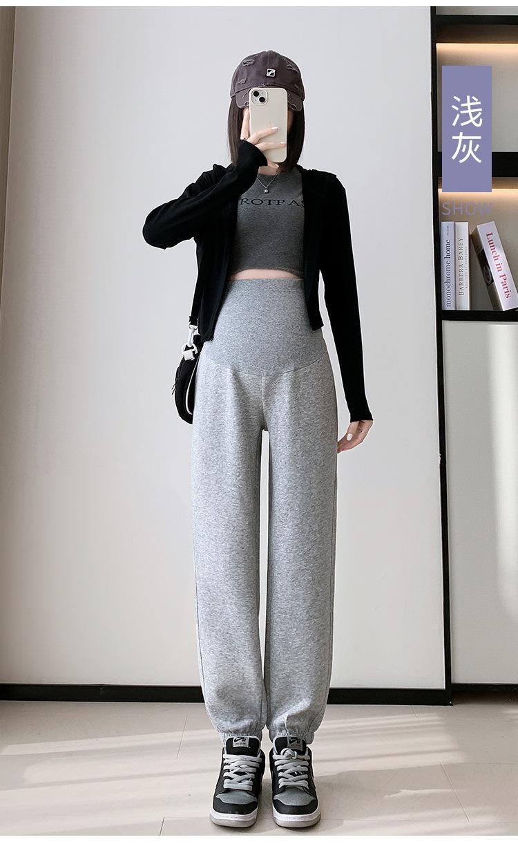 Calças de Maternidade Outono e Inverno Forradas com Lã Suporte para Barriga Calças de Moletom 2025 Nova Moda Soltas Casuais Slim Versátil Esportivas Joggers