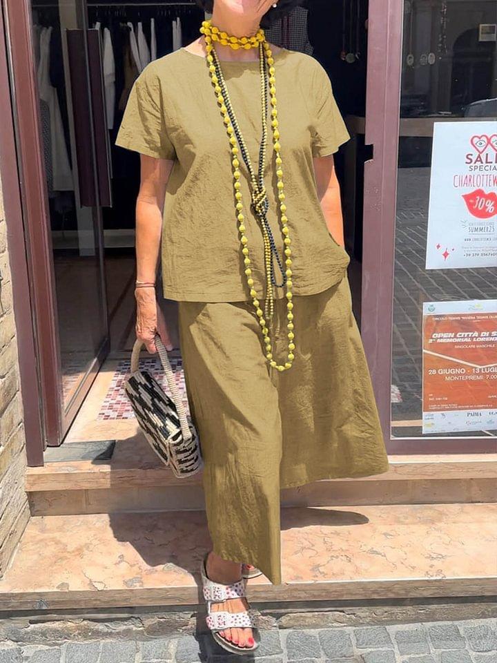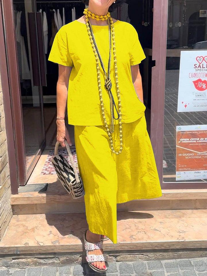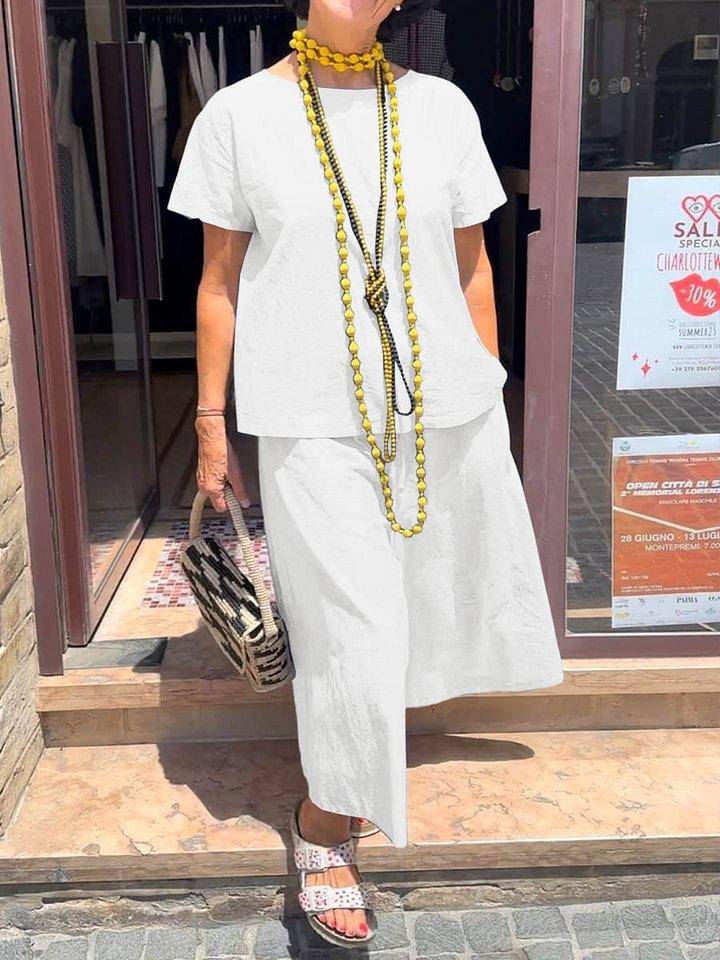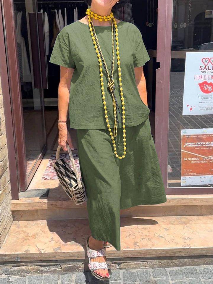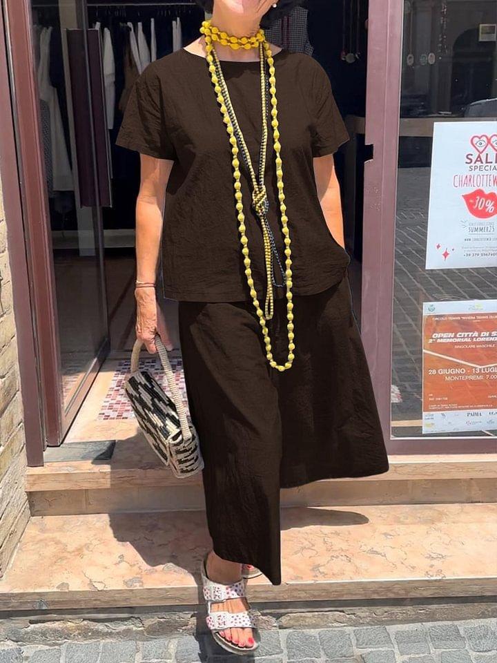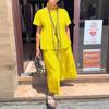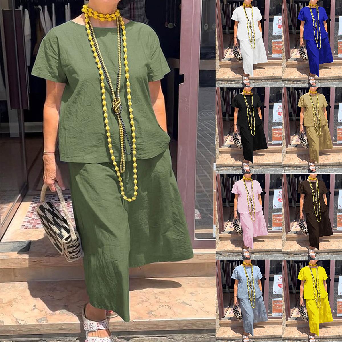 2025 Transfronteiriço Europeu e Americano Algodão e Linho Verão Novo Conjunto de Calças Feminino Cor Sólida Solto Casual Novo Conjunto de Duas Peças Simples
