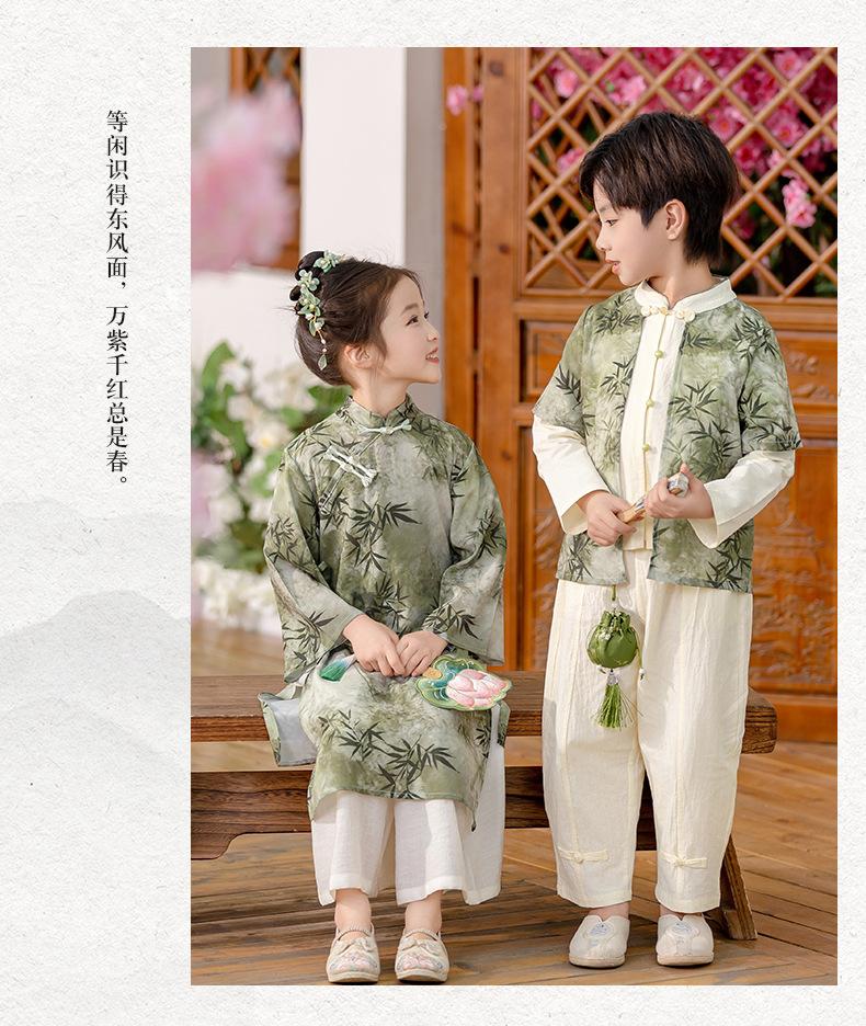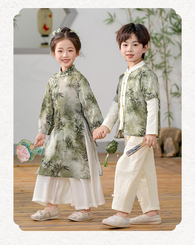 Novo Conjunto Hanfu Infantil Estilo Chinês Primavera e Outono Meninos e Meninas Estilo Chinês Conjunto de Duas Peças Vestido de Primeiro Aniversário do Bebê Terno Tang Estilo Antigo