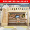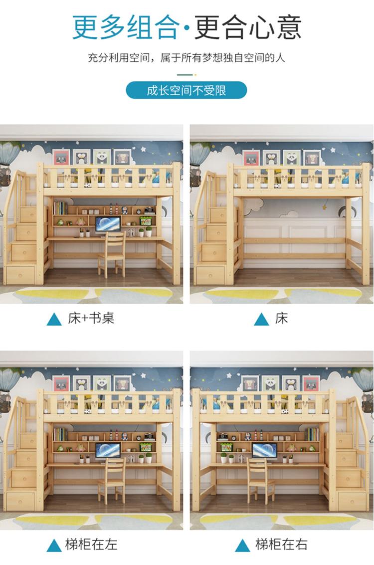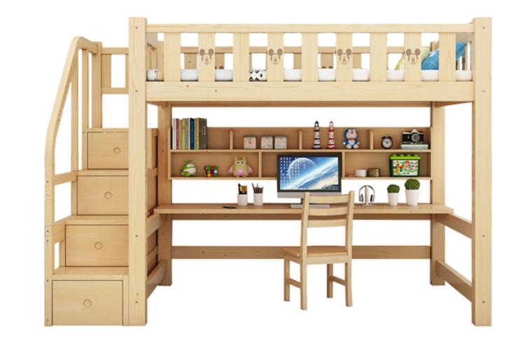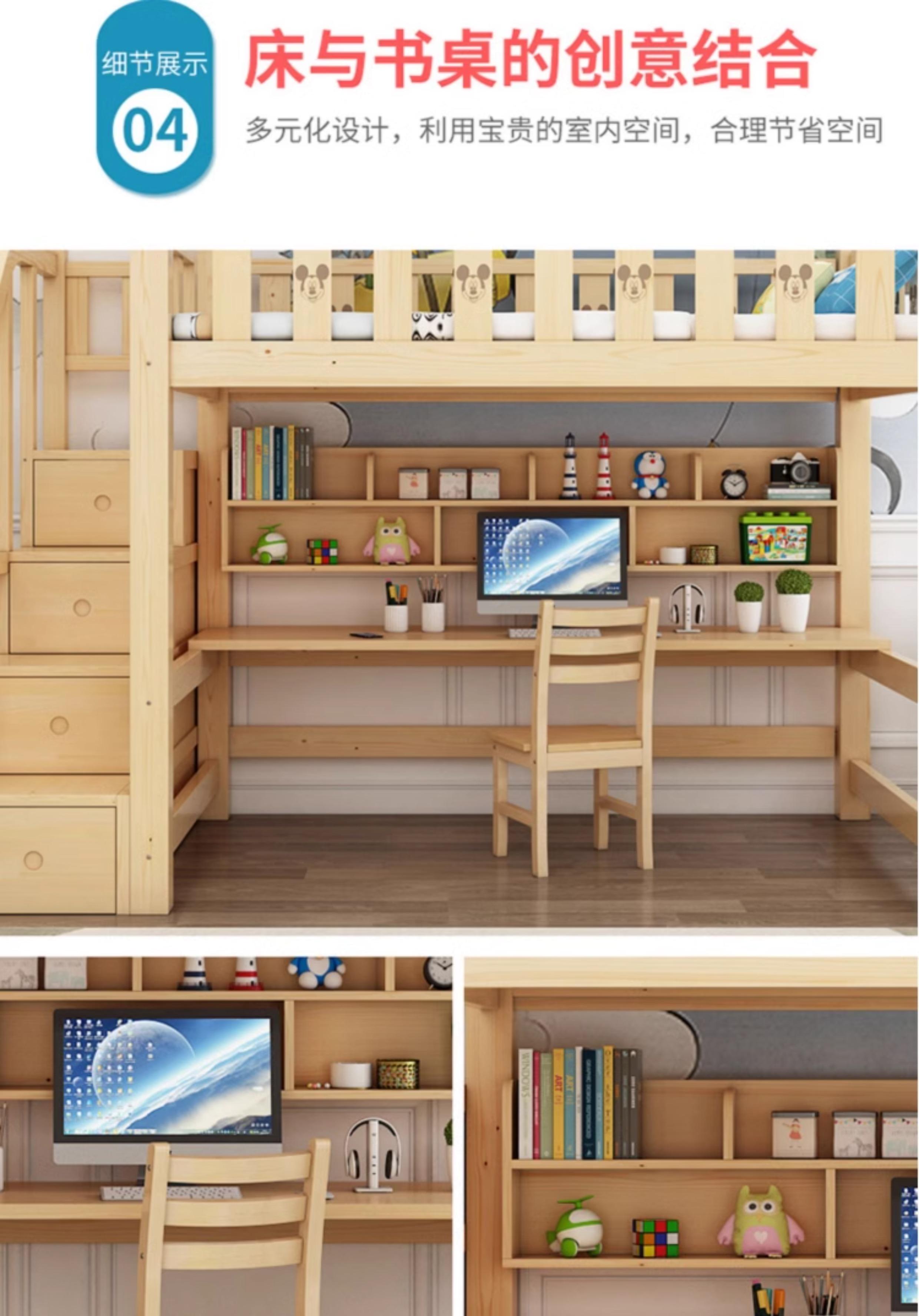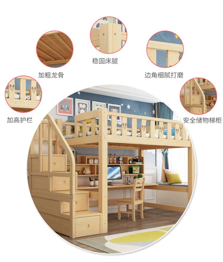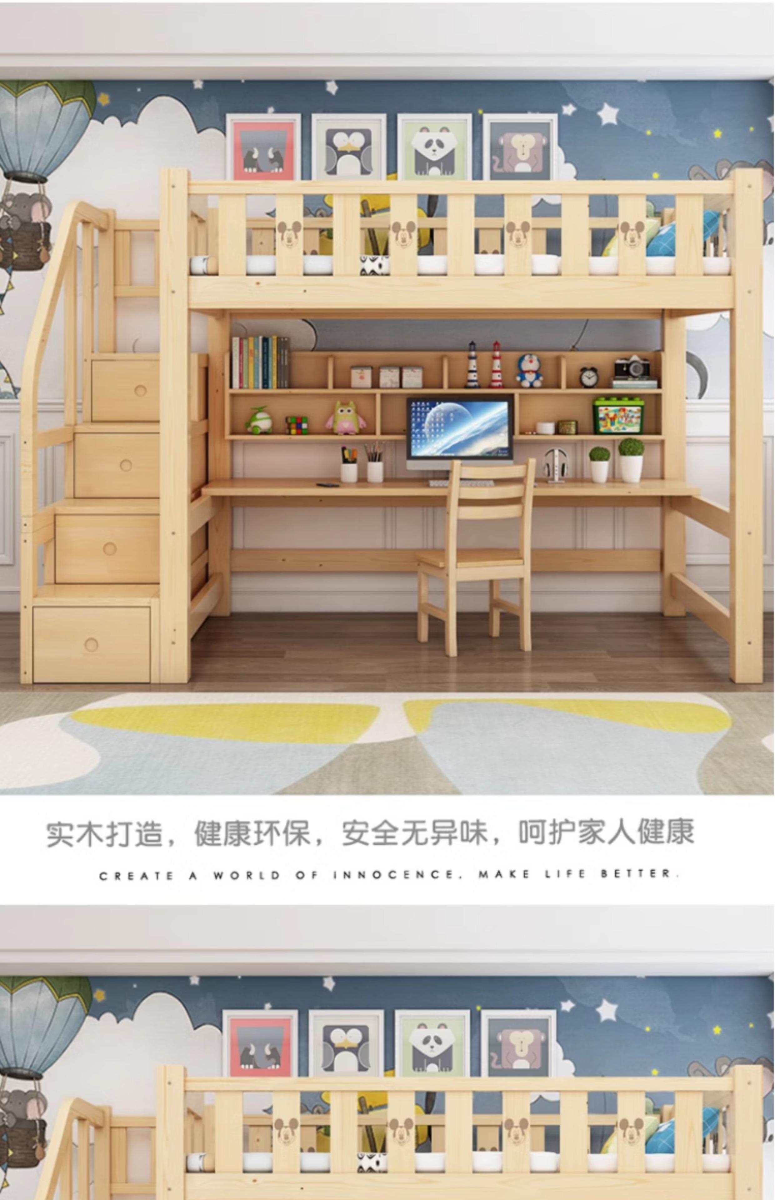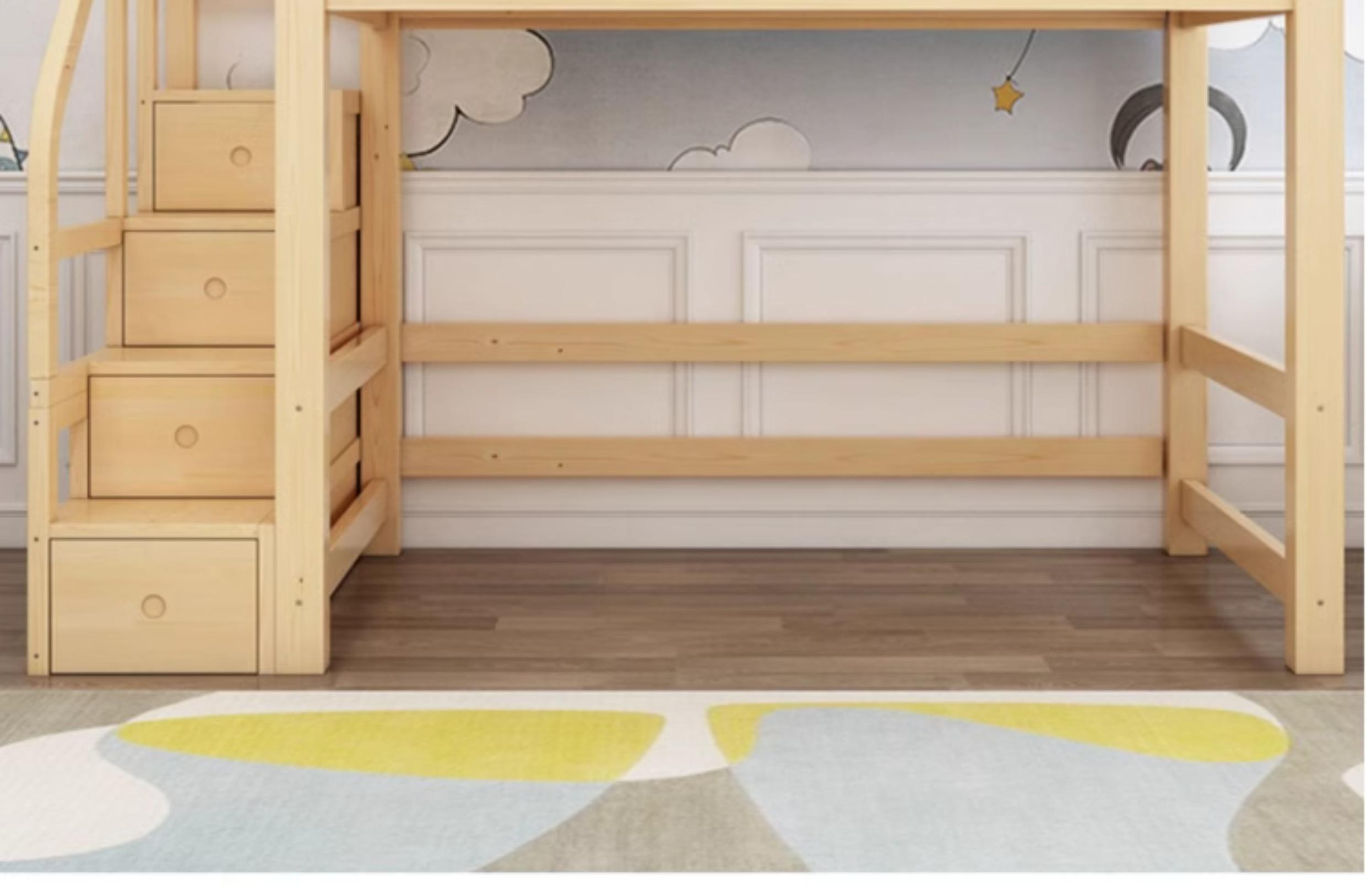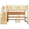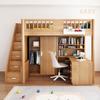 Cama Alta com Escrivaninha, Cama Combinada Multifuncional de Madeira Maciça, Beliche Infantil de Camada Dupla com Escada e Armário