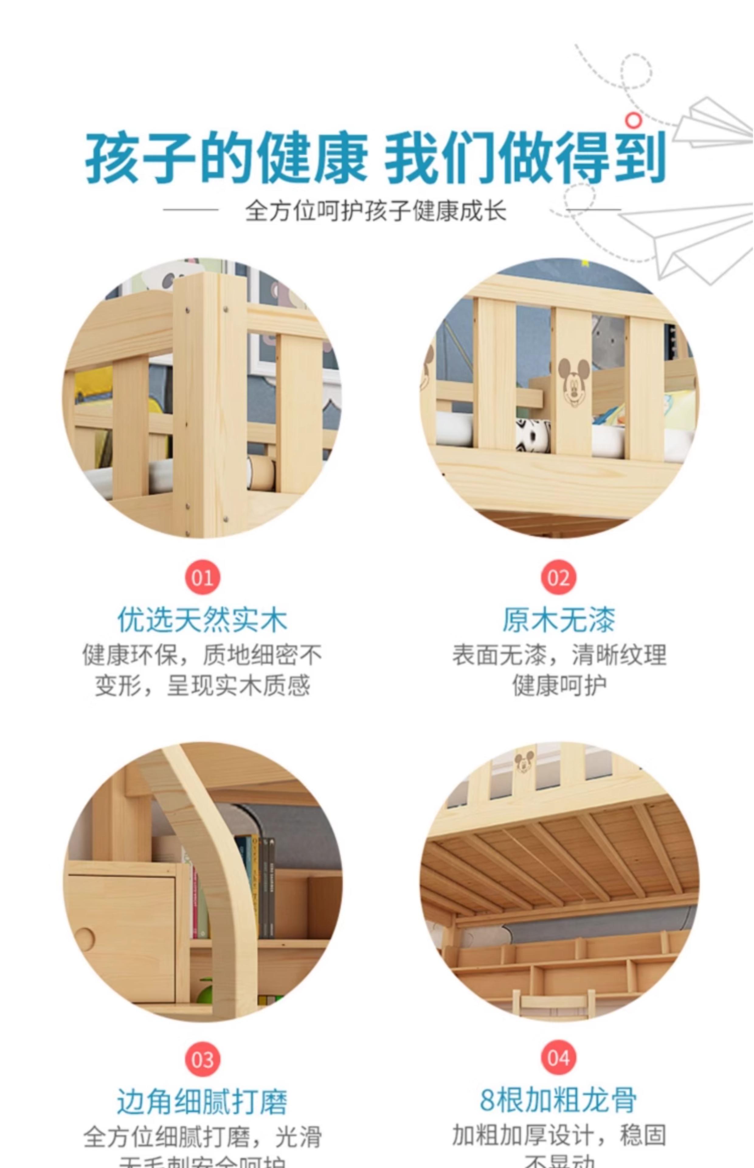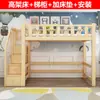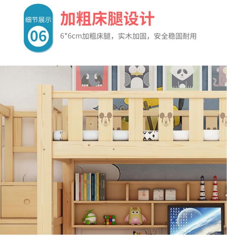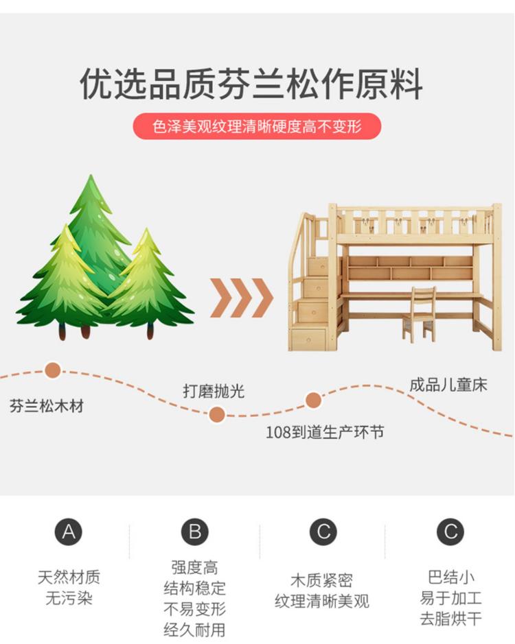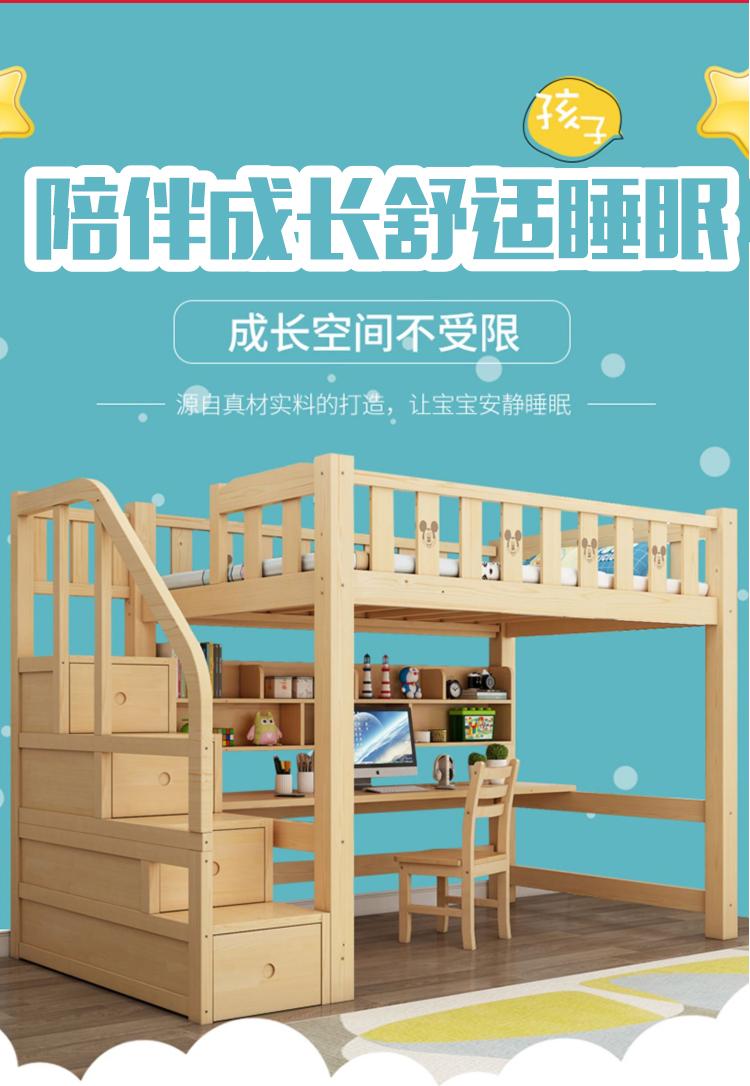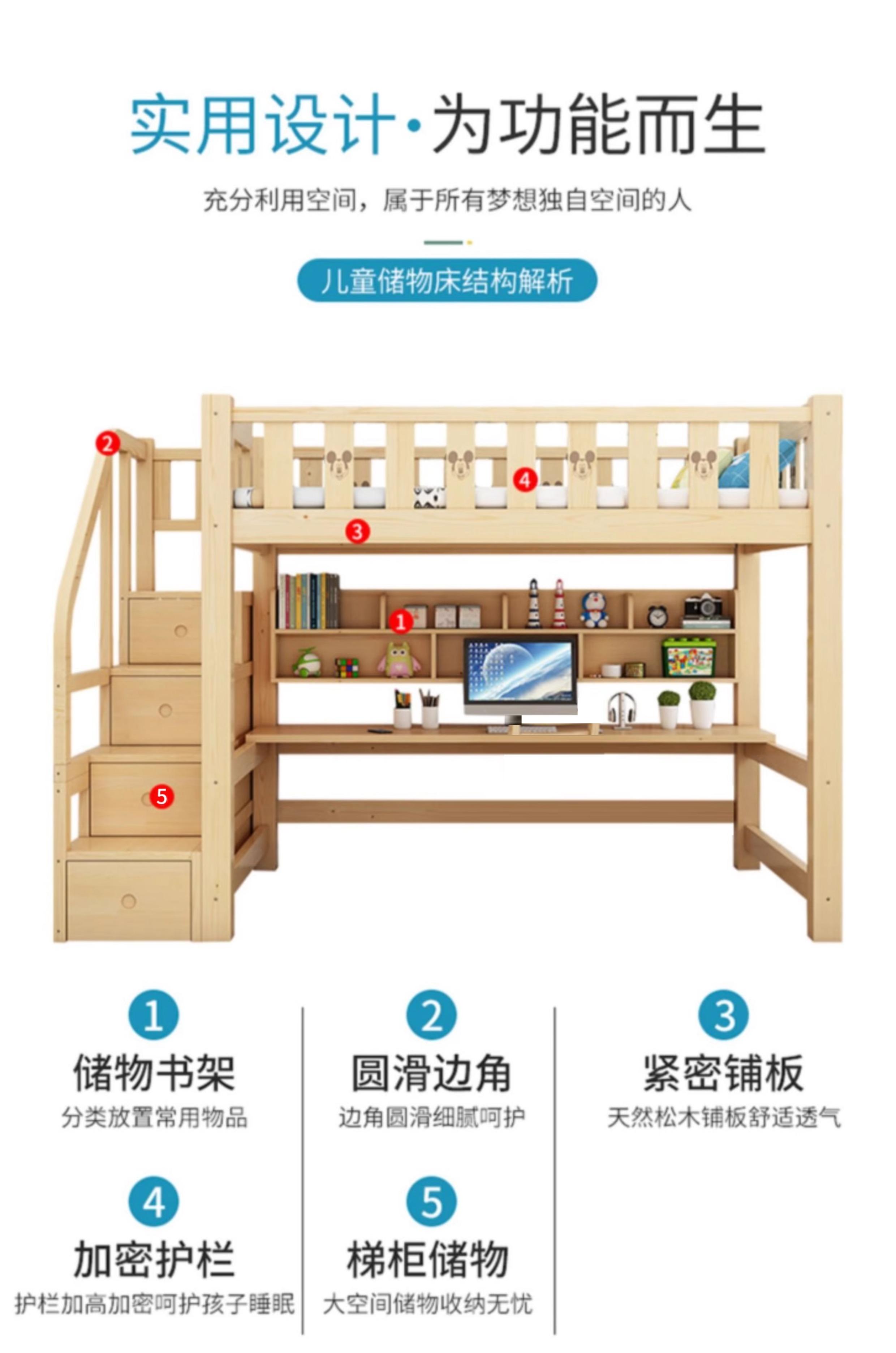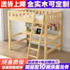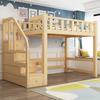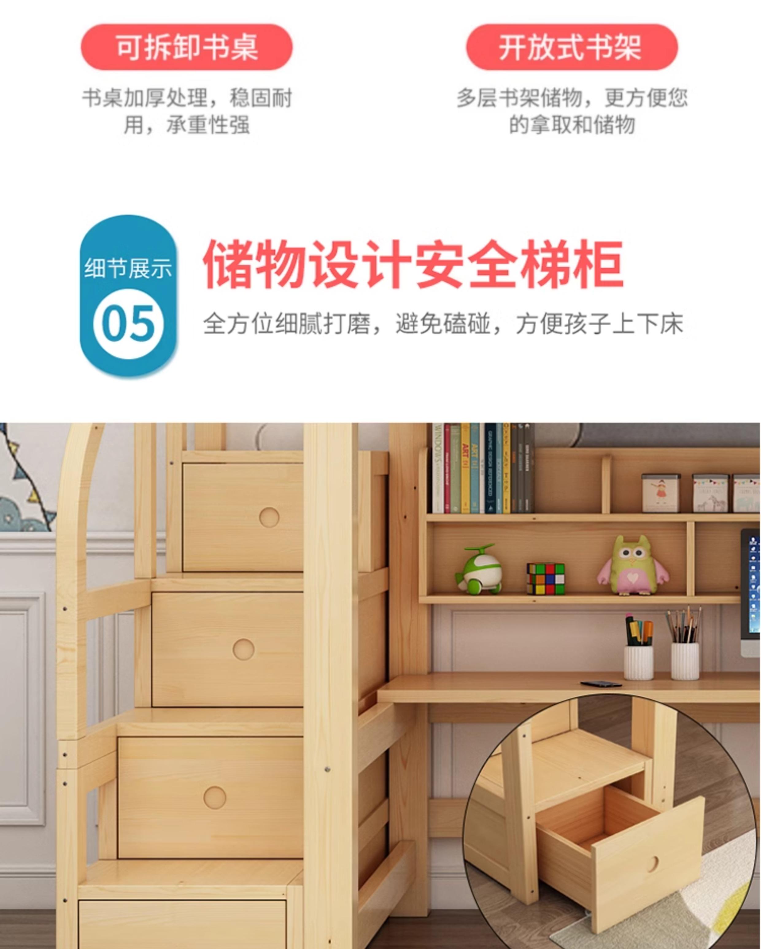 Cama Alta com Escrivaninha, Cama Combinada Multifuncional de Madeira Maciça, Beliche Infantil de Camada Dupla com Escada e Armário