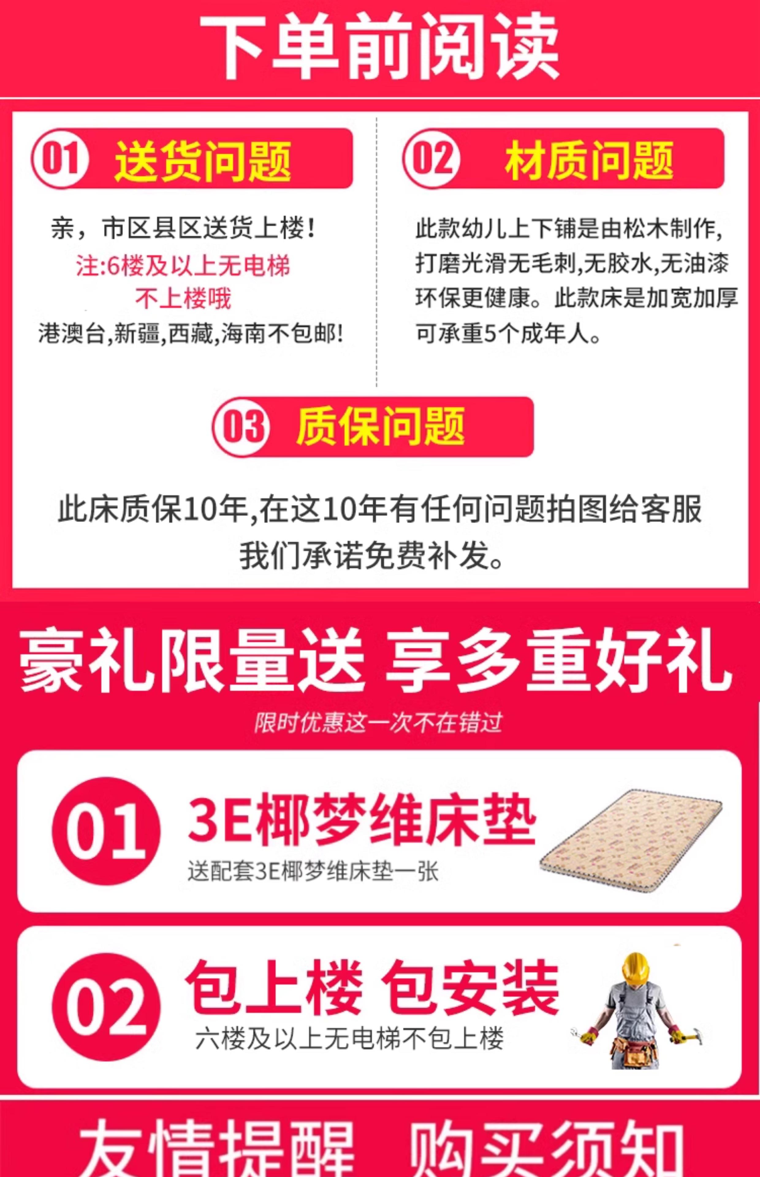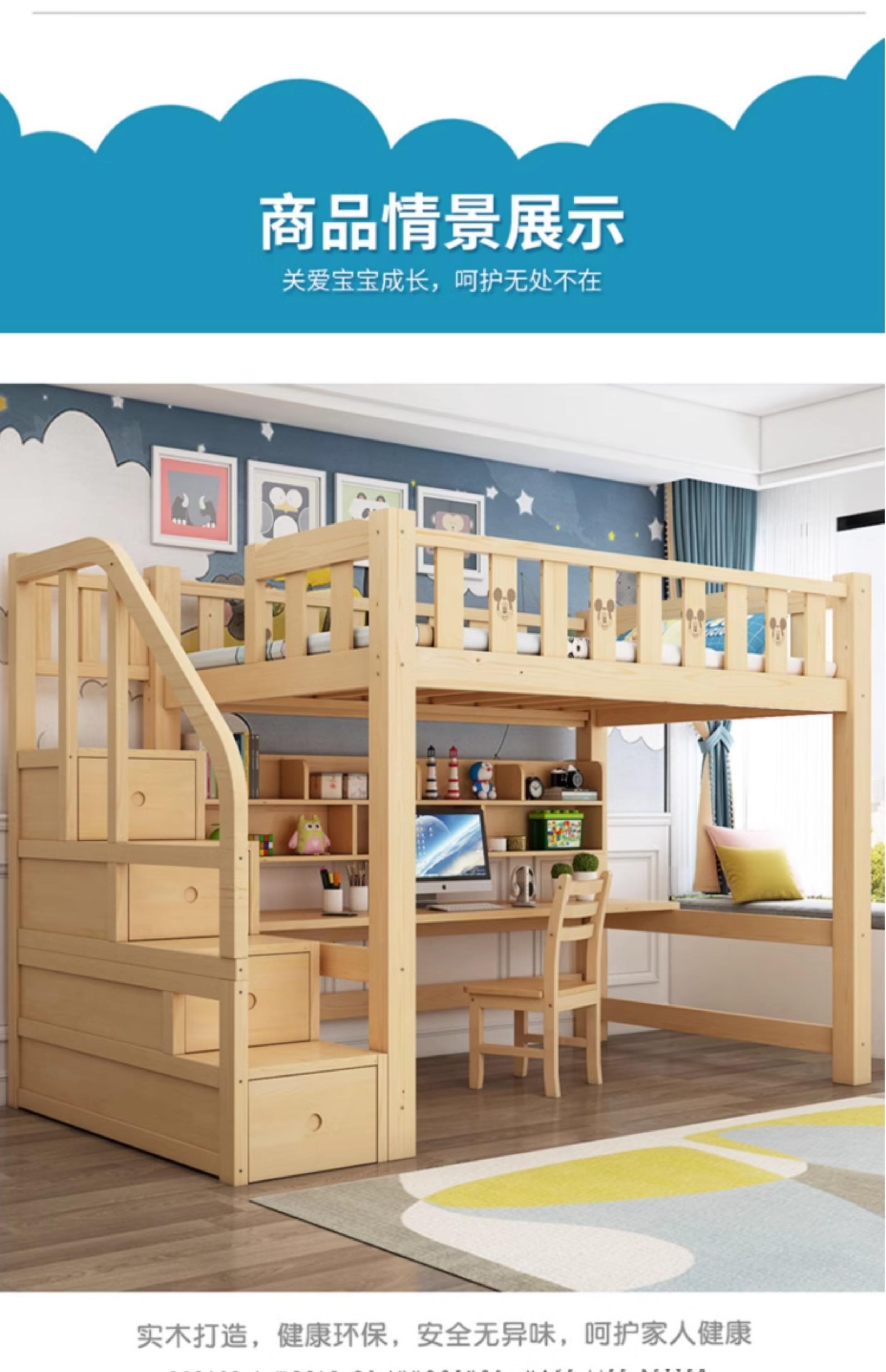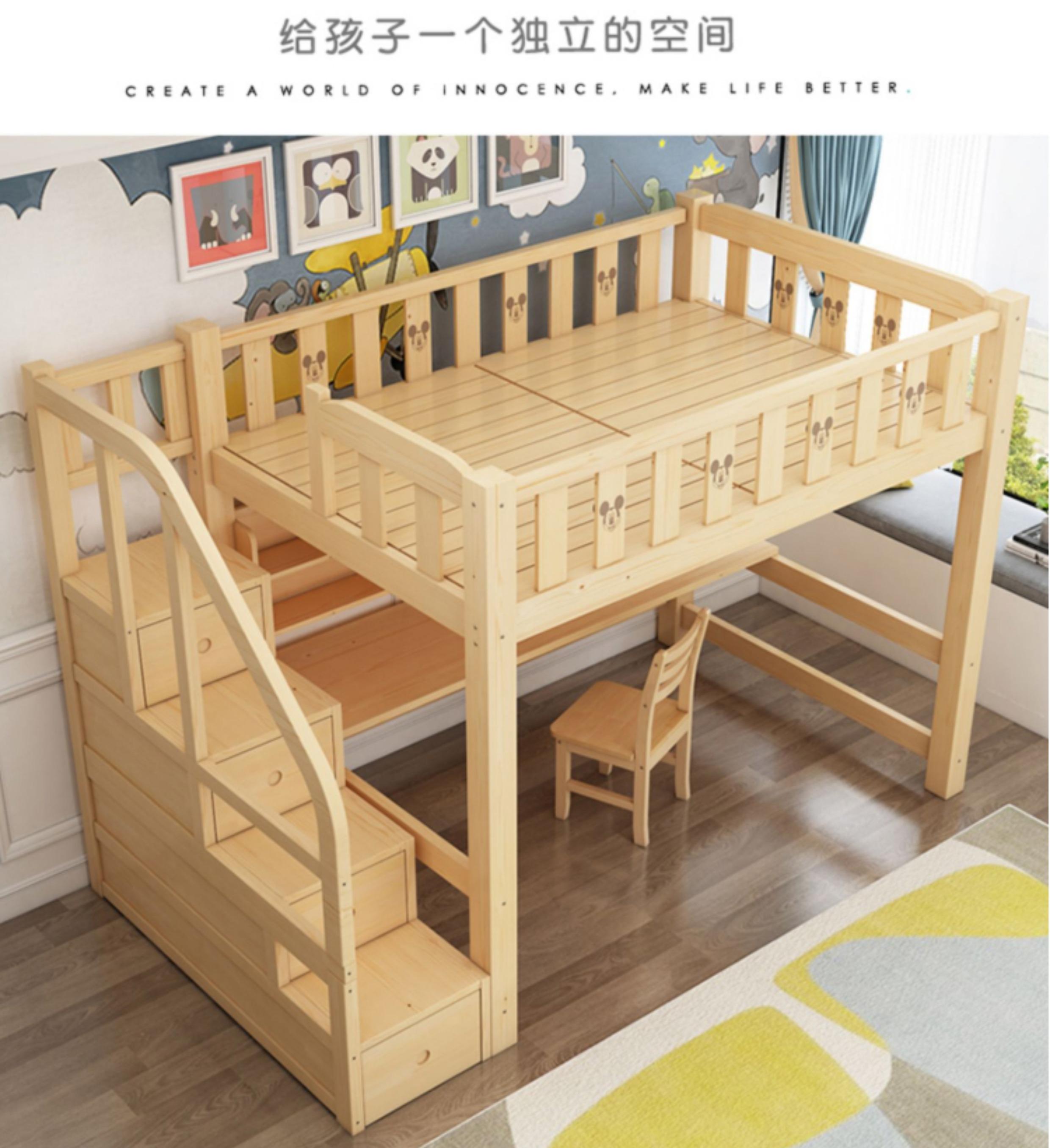 Solid wood unpainted loft bed + free mattress, Solid wood unpainted loft bed complete set + free mattress