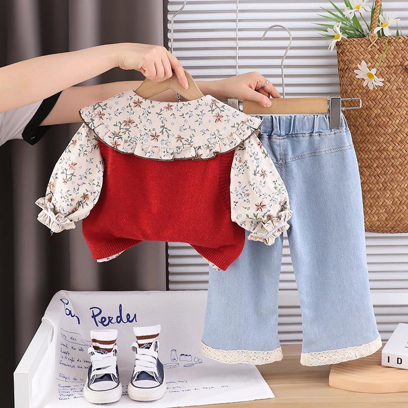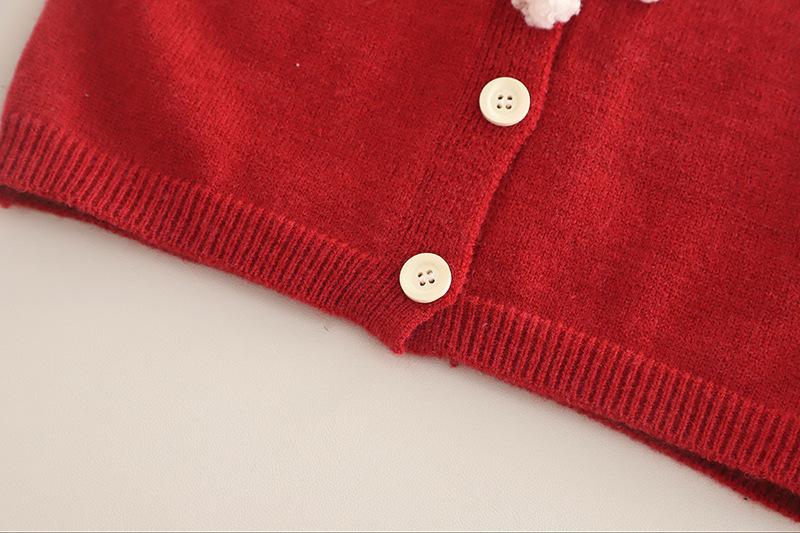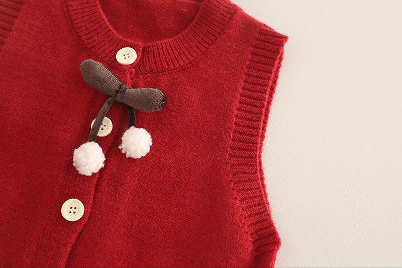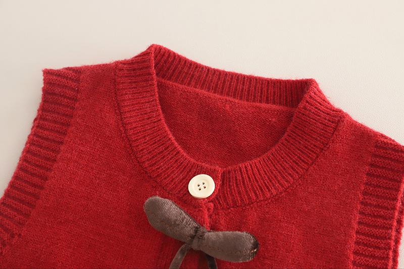 8380 Girls' Bow Cardigan Sweater Three-Piece Set Red