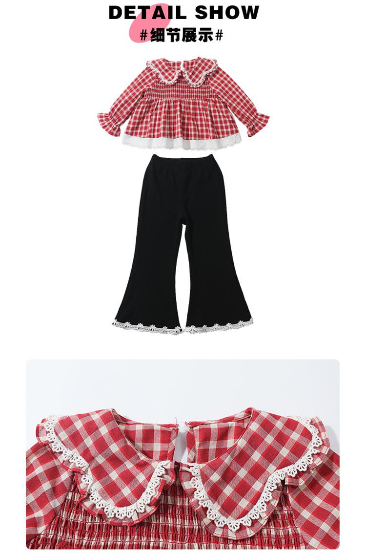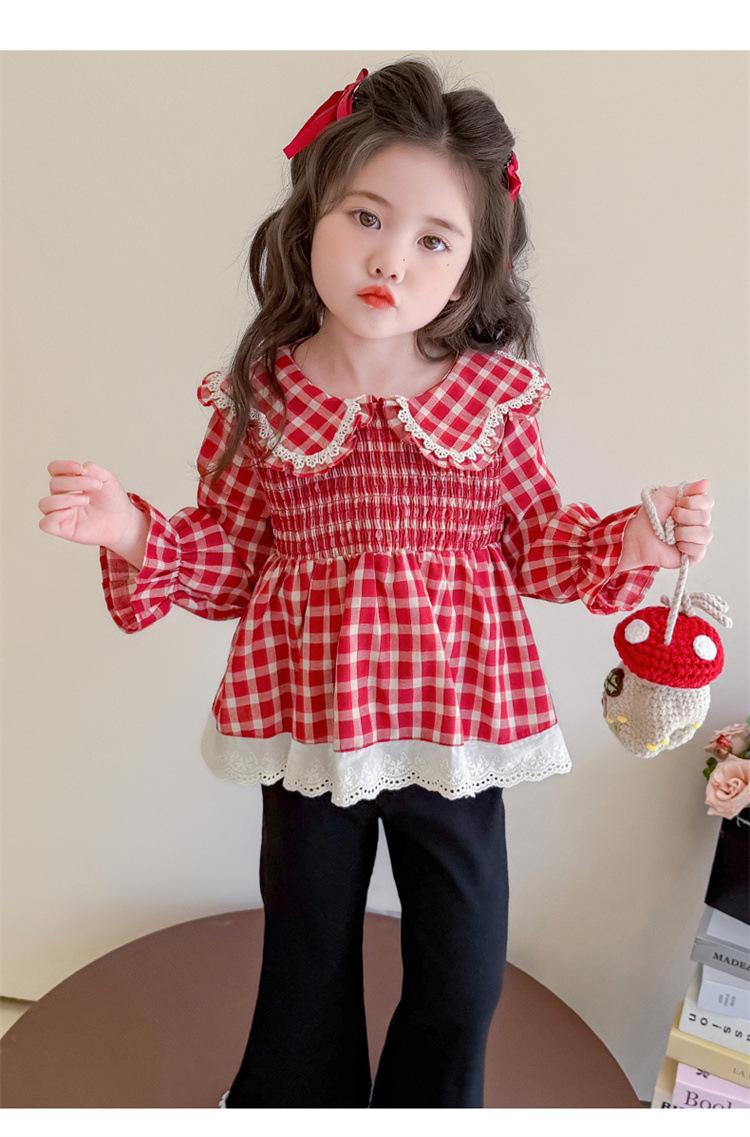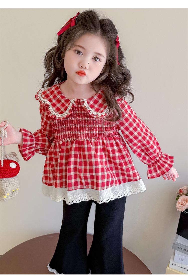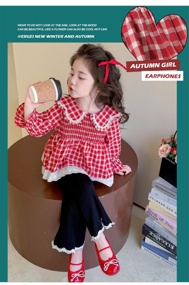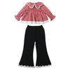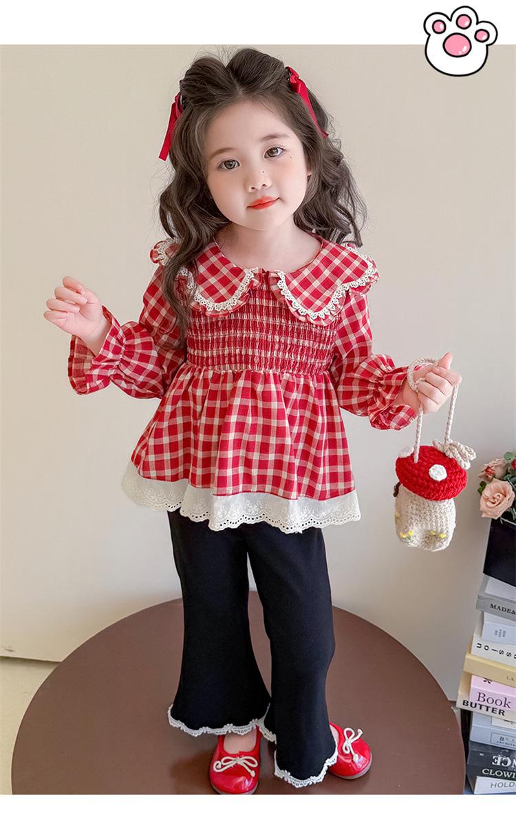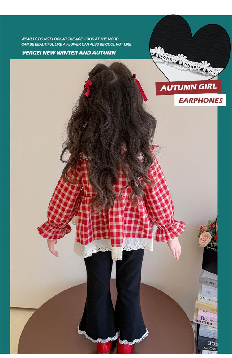 Conjunto da Moda Outono para Meninas Estilo Estrangeiro 2025 Novo Infantil Bebê Xadrez Camisa Boneca Calças Flare Conjunto Duas Peças Tendência