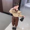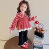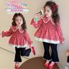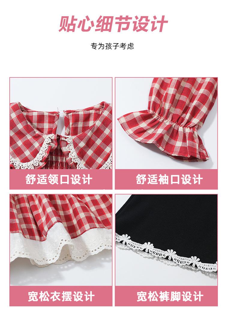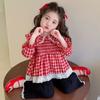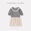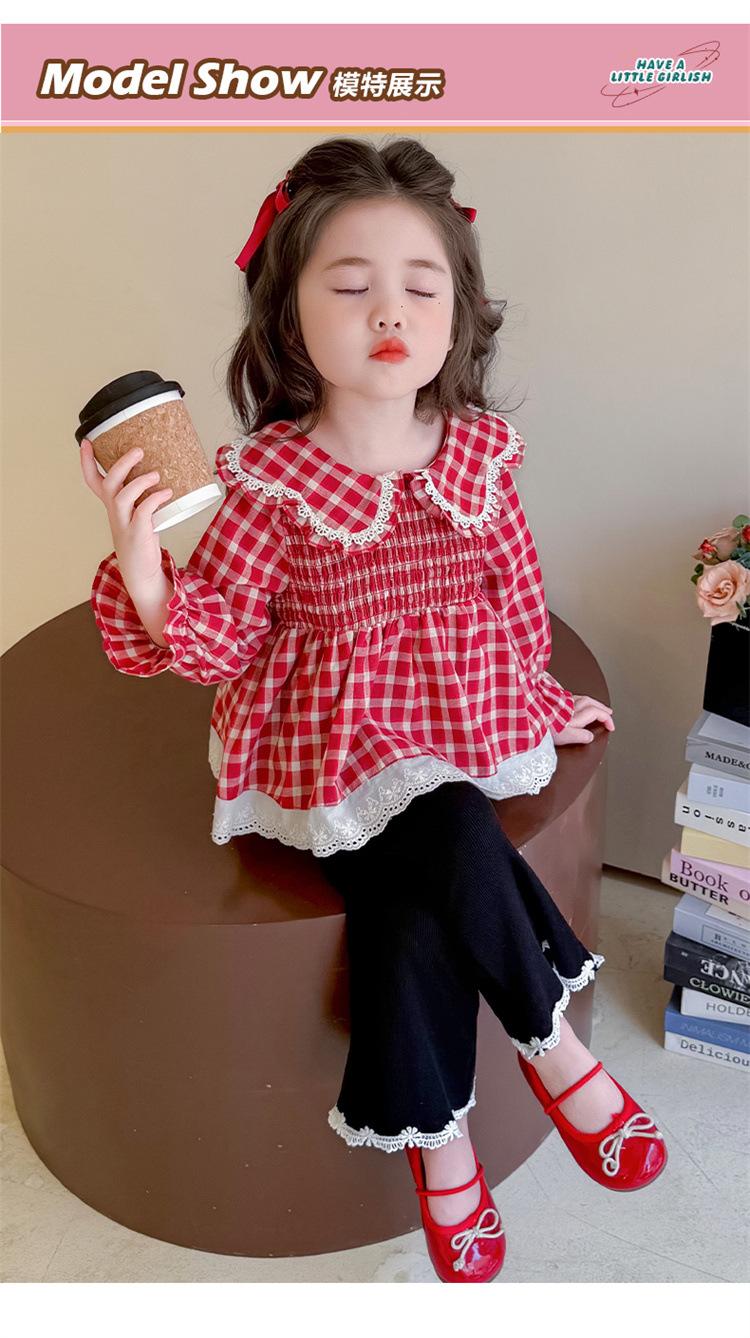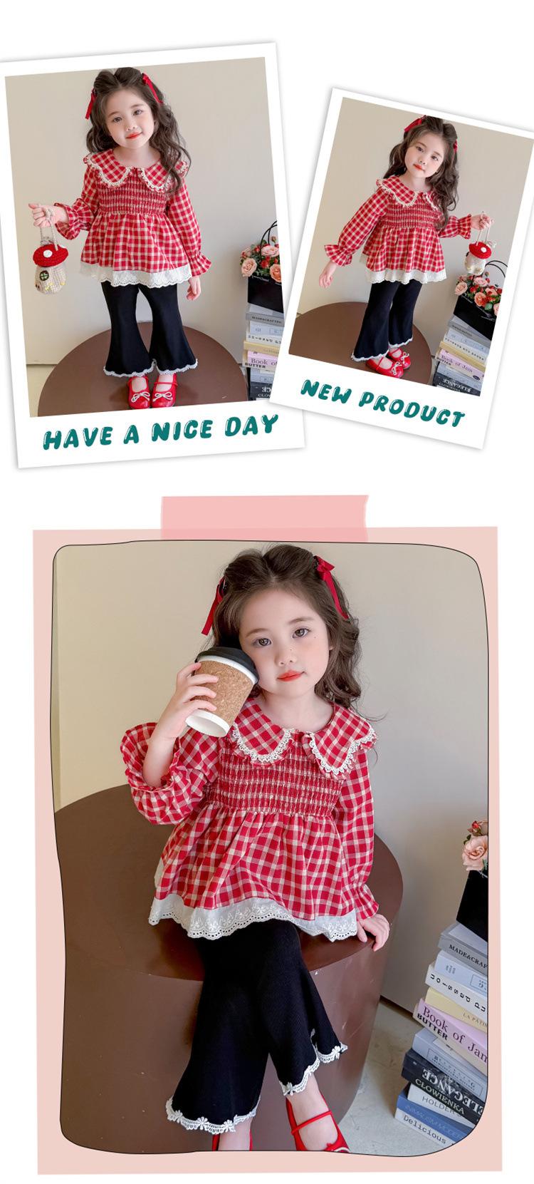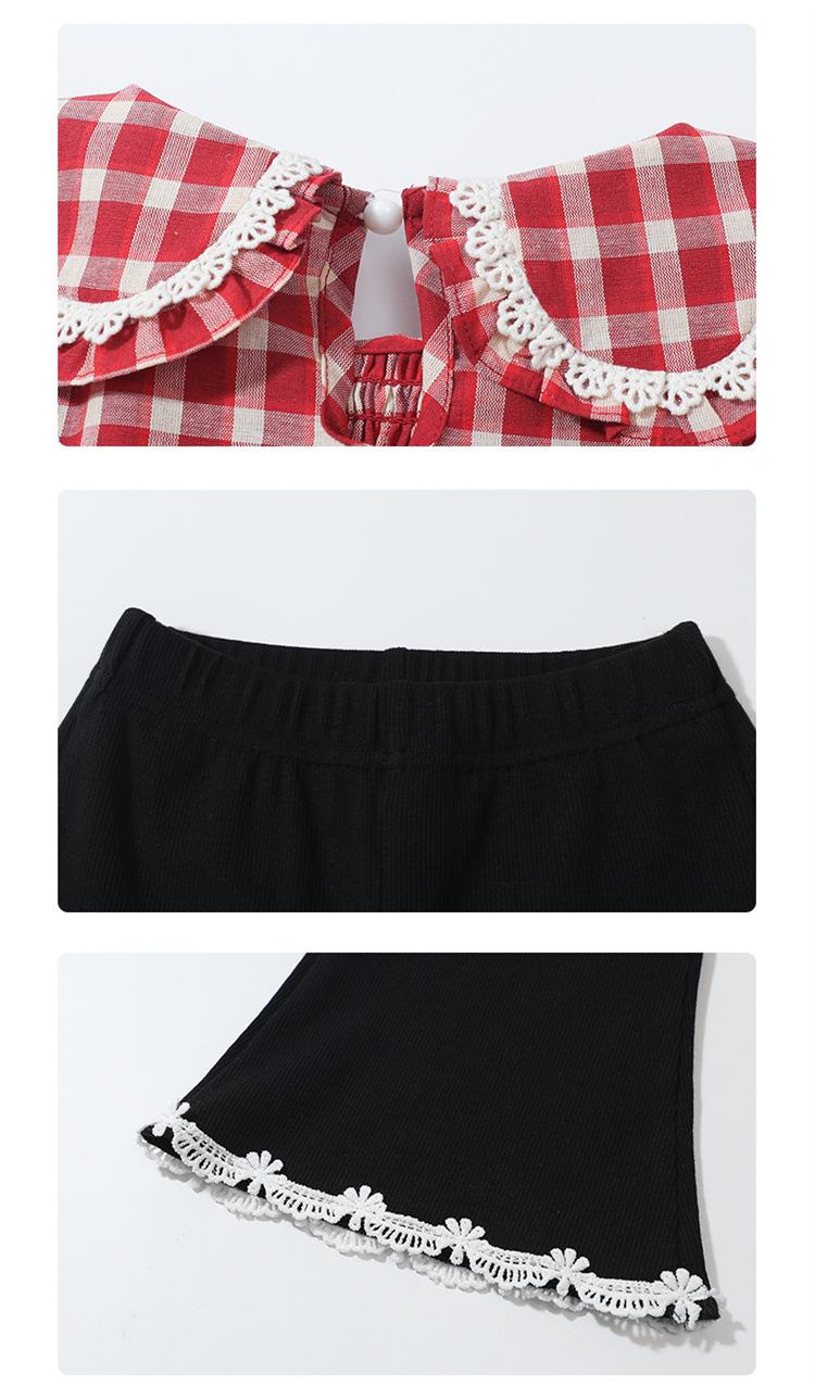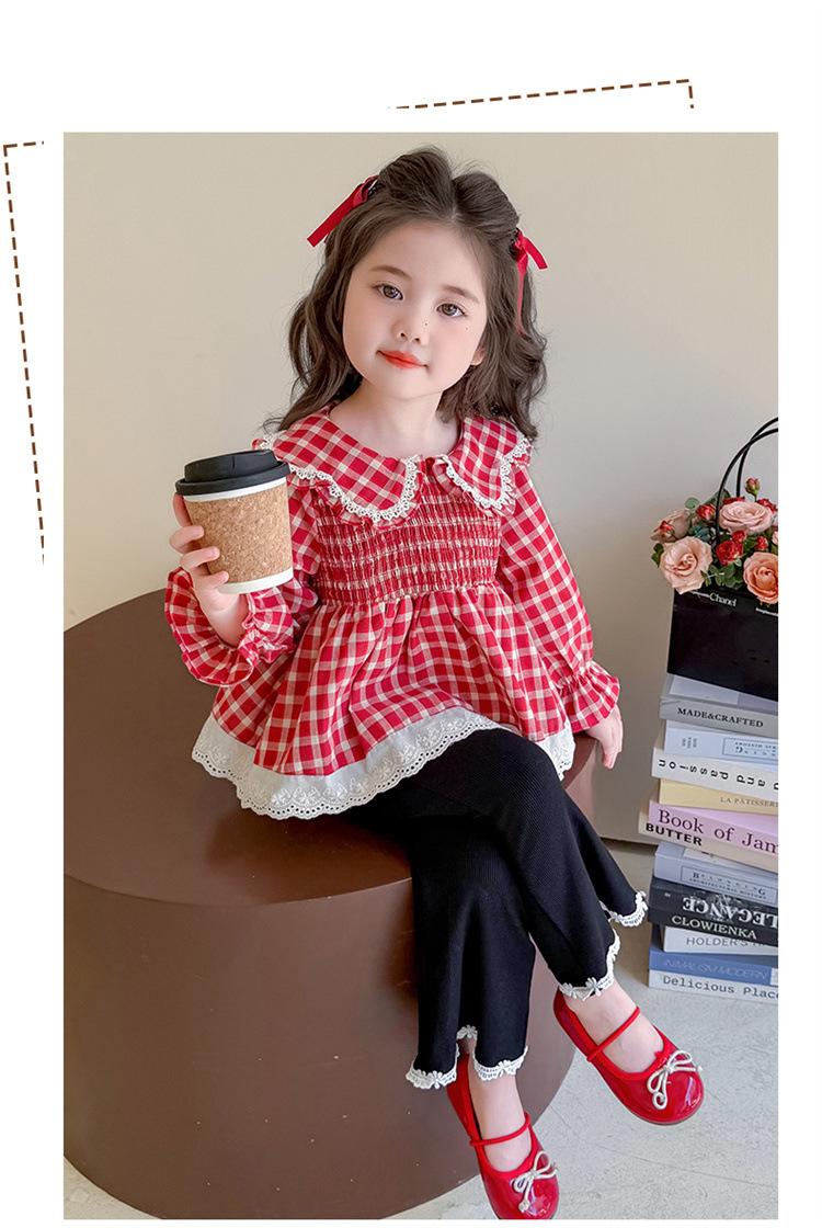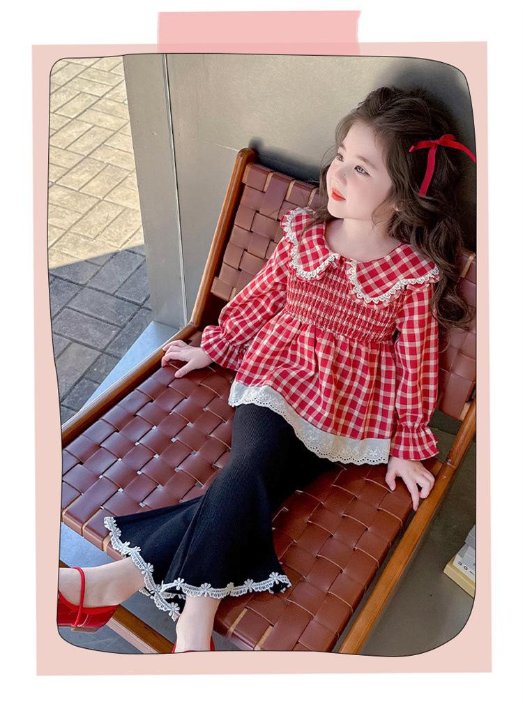 Conjunto da Moda Outono para Meninas Estilo Estrangeiro 2025 Novo Infantil Bebê Xadrez Camisa Boneca Calças Flare Conjunto Duas Peças Tendência