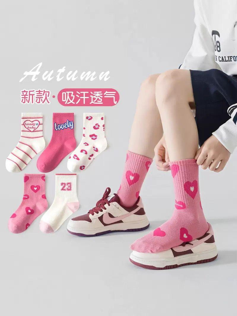 Meias de Menina Estilo Primavera e Outono Meias Princesa de Meia Panturrilha Infantil Crianças Médias e Grandes Meninas Outono e Inverno Esporte Algodão Meias Modernas
