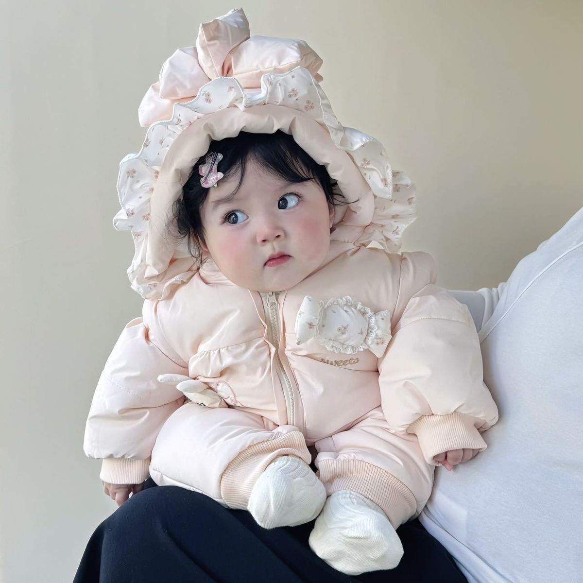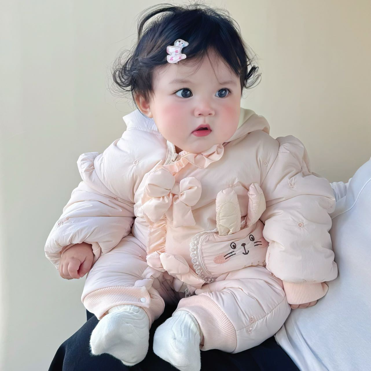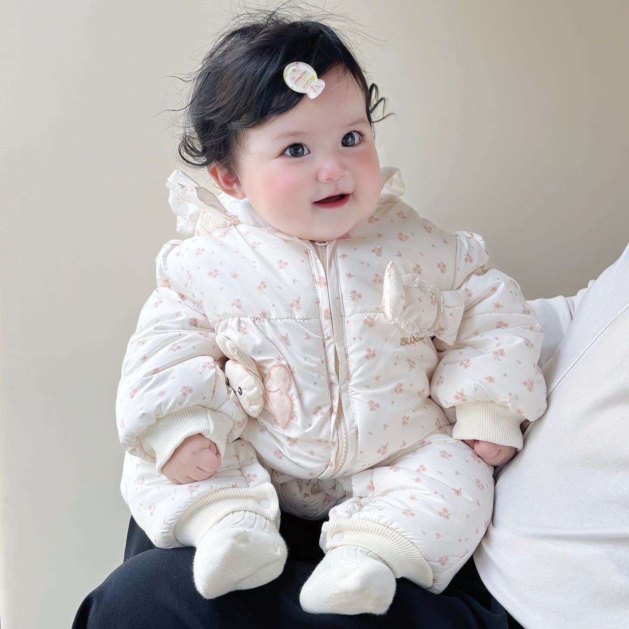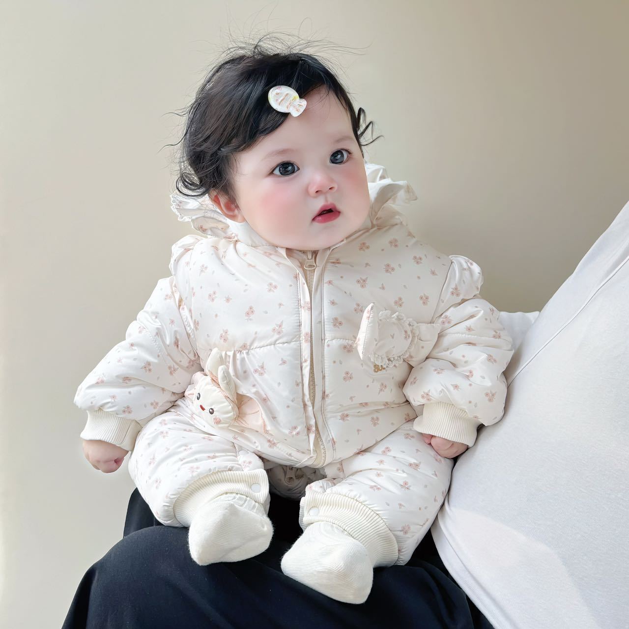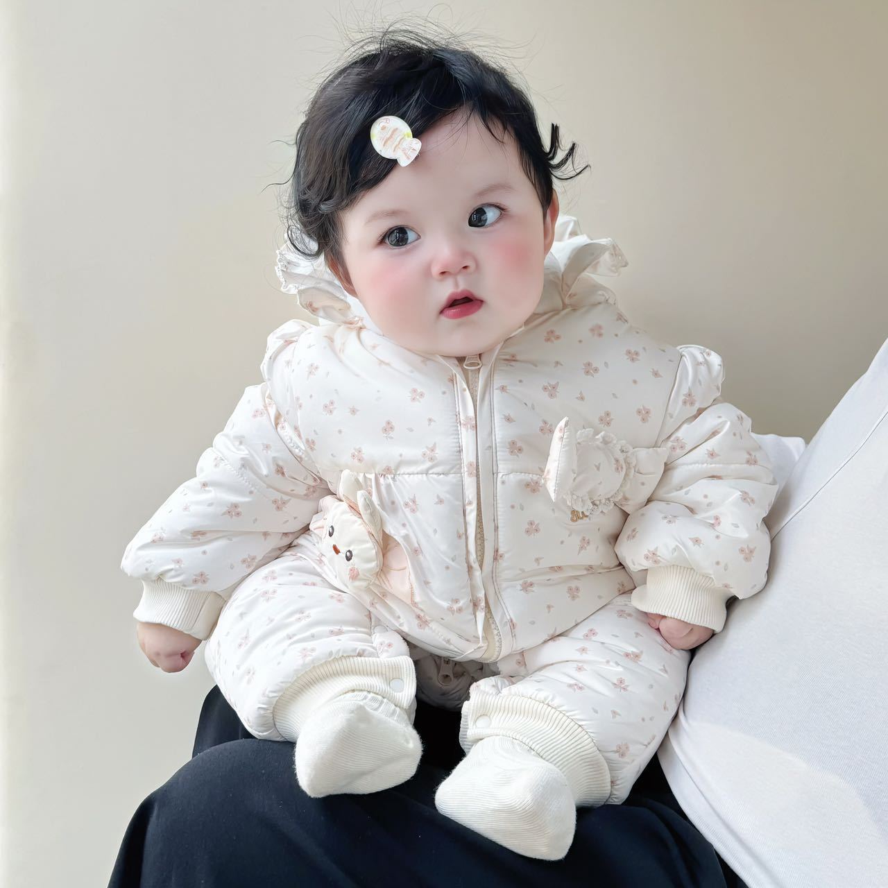 Roupa de Recém-Nascido Infantil Macacão Grosso de Uma Peça Inverno Bebê Roupa de Algodão de Manga Comprida Roupa para Rastejar Bebê Doce Roupa Externa Moderna