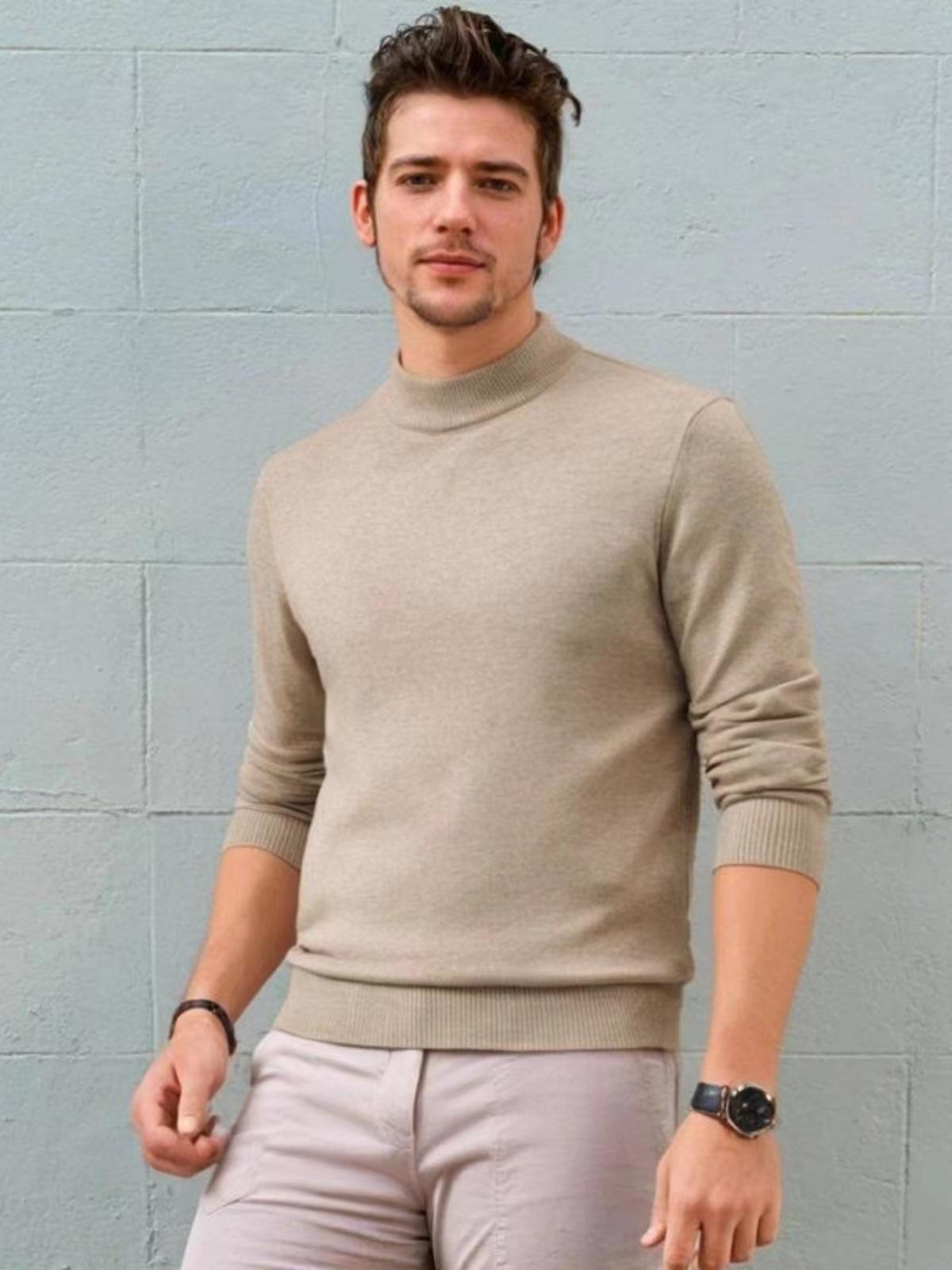 Compre Suéter Masculino Novo Outono Inverno 2025 Com Gola Semi-Alta Juventude Slim Pulôver Base Tricô Lã no atacado no Joom.pro