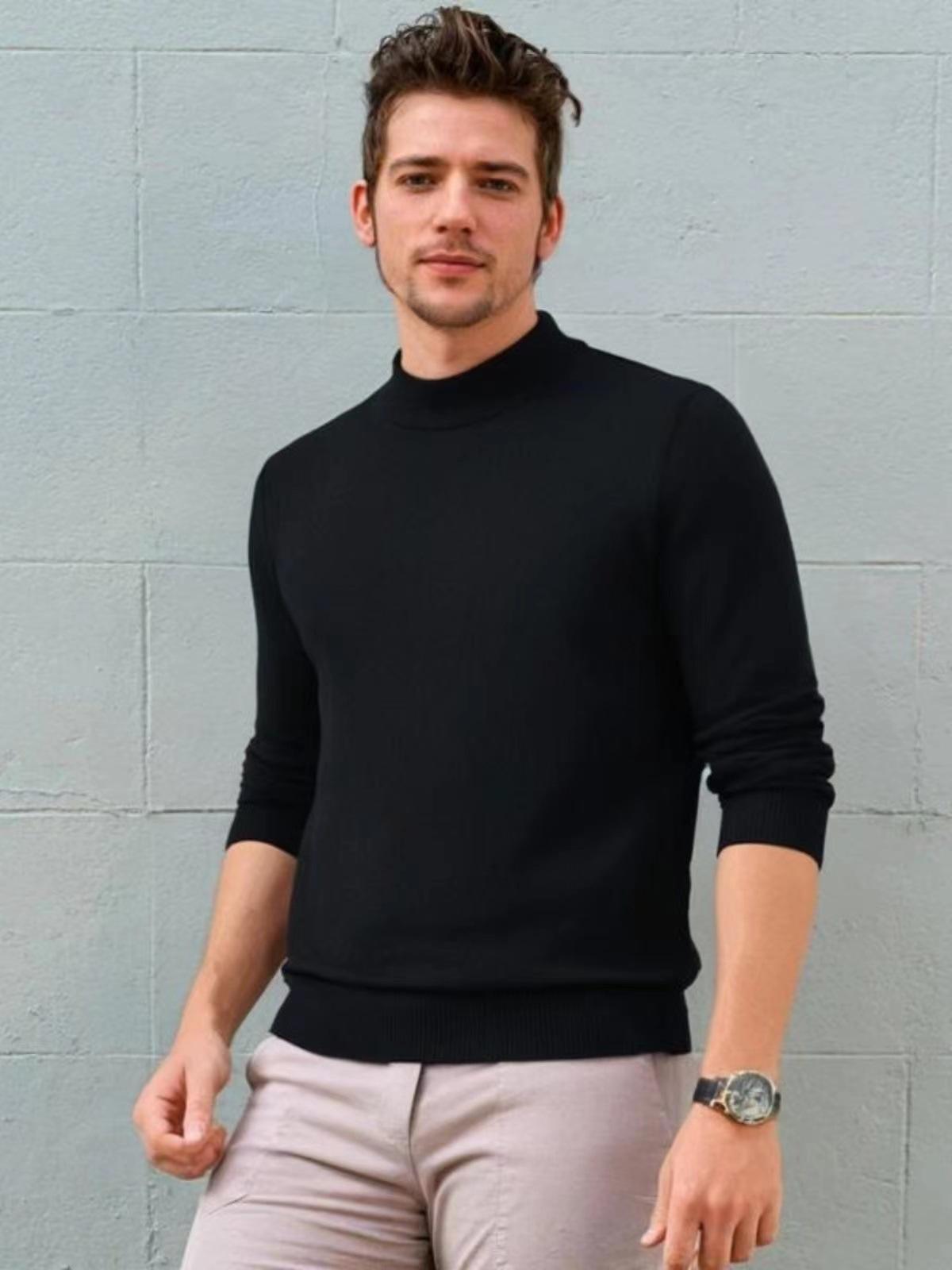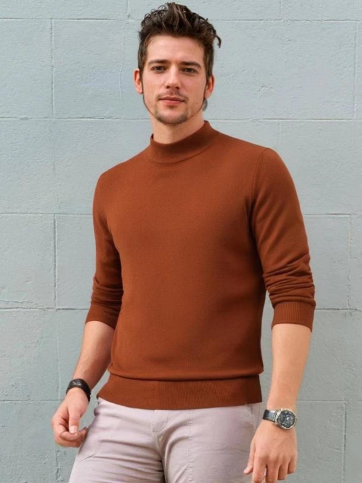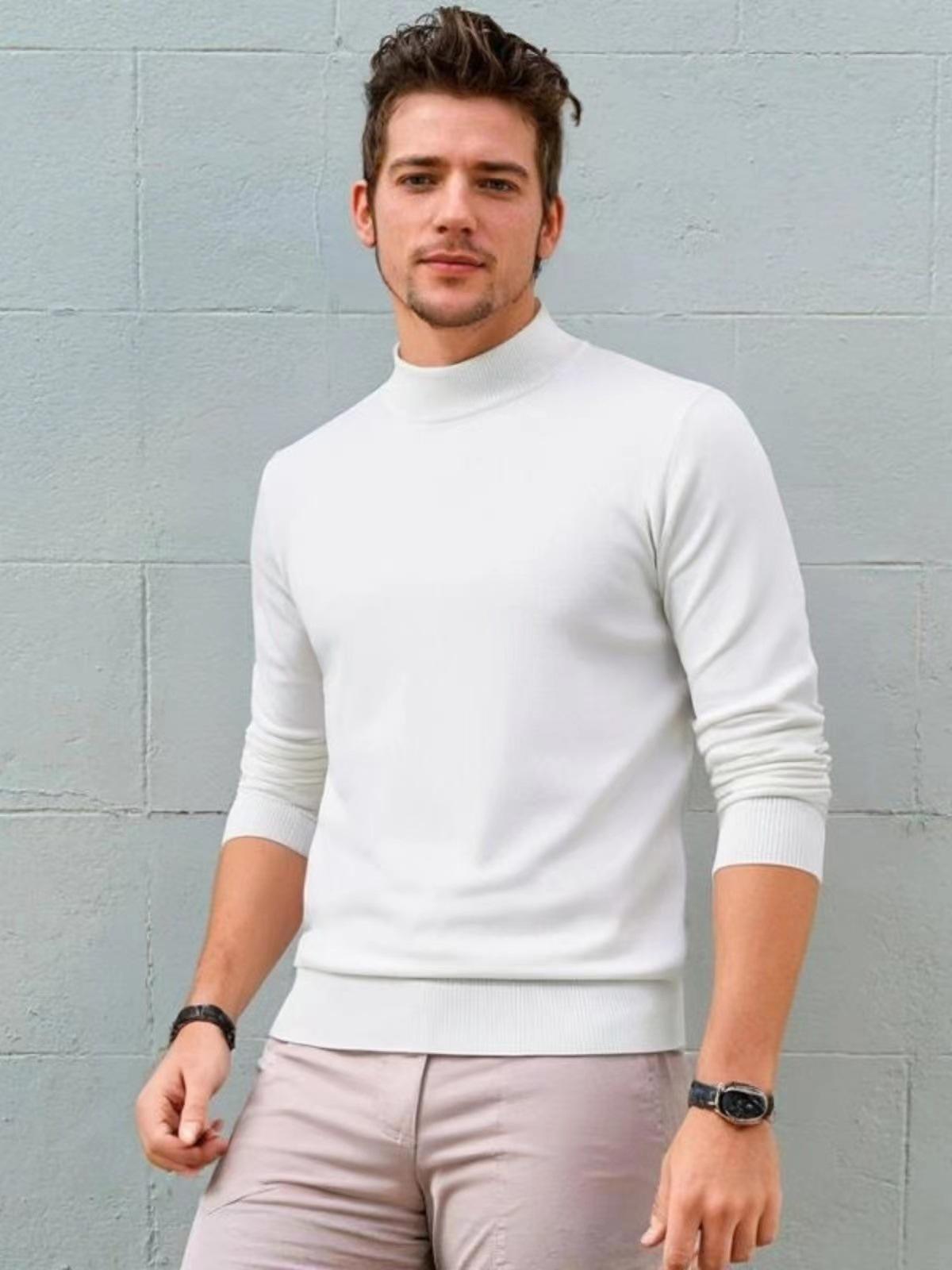 Suéter Masculino Novo Outono Inverno 2025 Com Gola Semi-Alta Juventude Slim Pulôver Base Tricô Lã