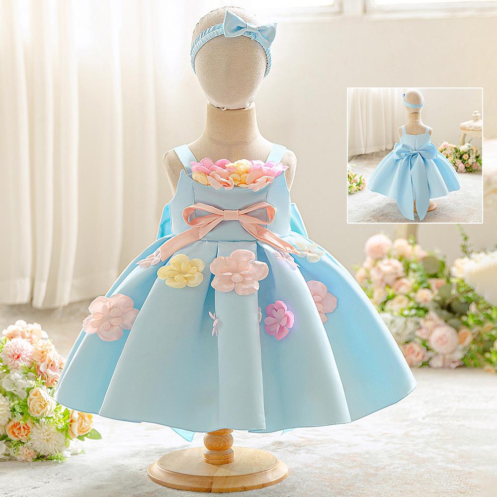 Vestido de Verão para Meninas 2025 Vestido de Princesa Mori Aplique Festa de Aniversário Vestido de Dama de Honra Vestido de Noite em Tule