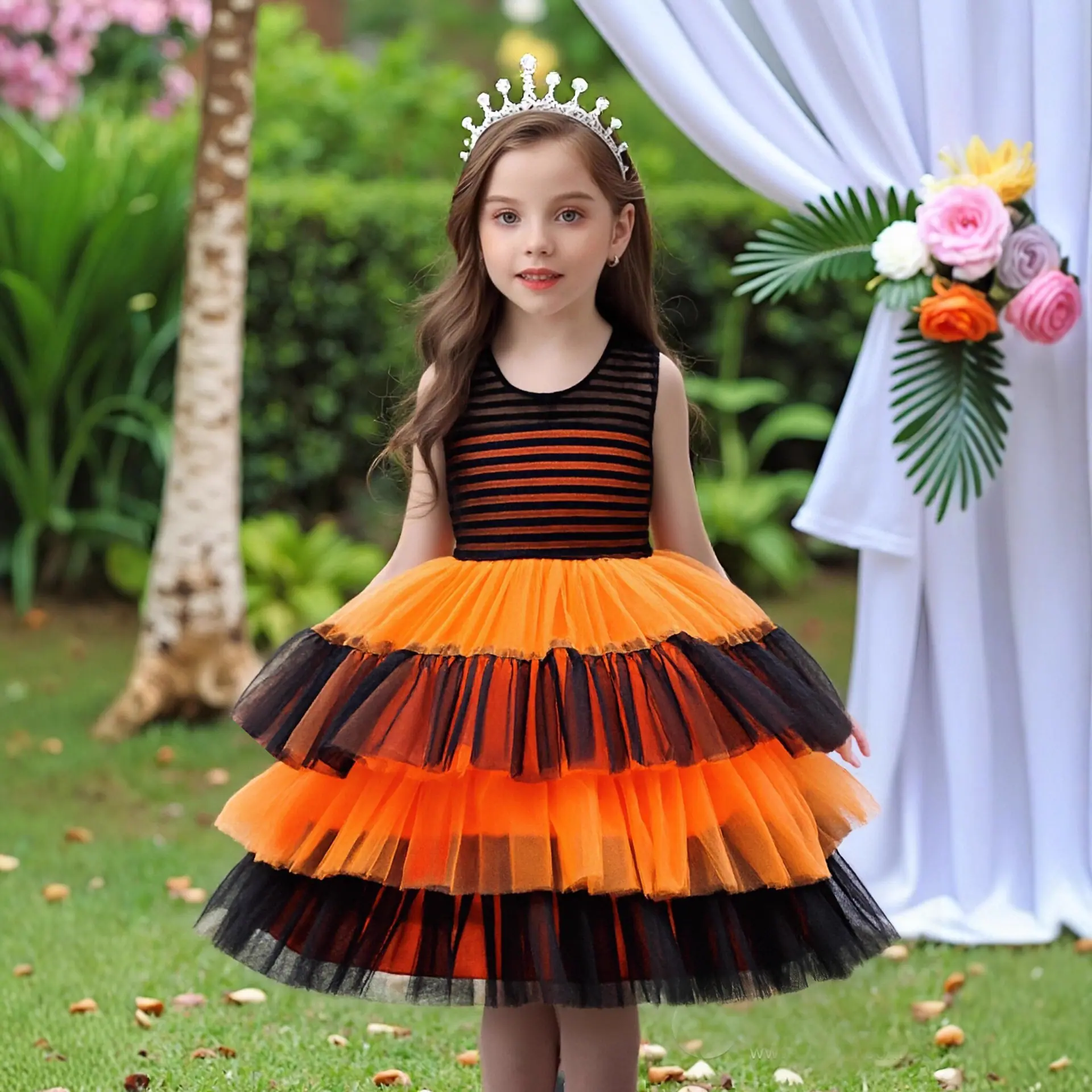 2025 Novo Vestido de Princesa Bruxa para Festa Cosplay de Meninas Halloween Tutu Fantasia para Interpretação de Papéis 8081