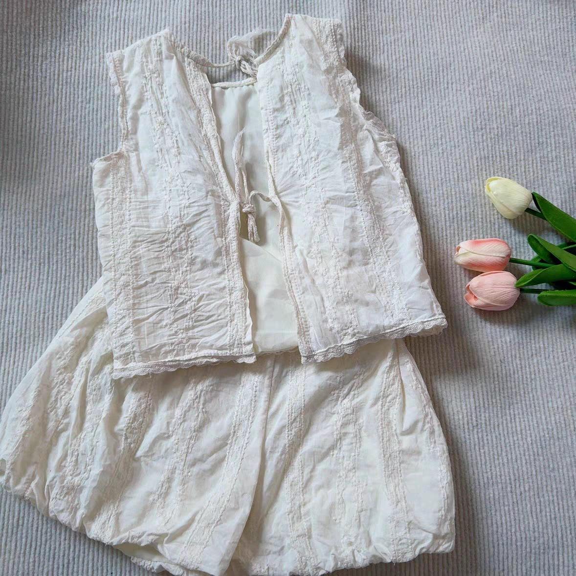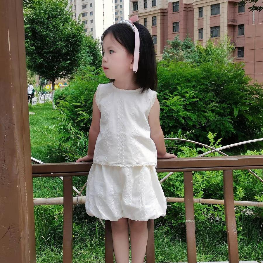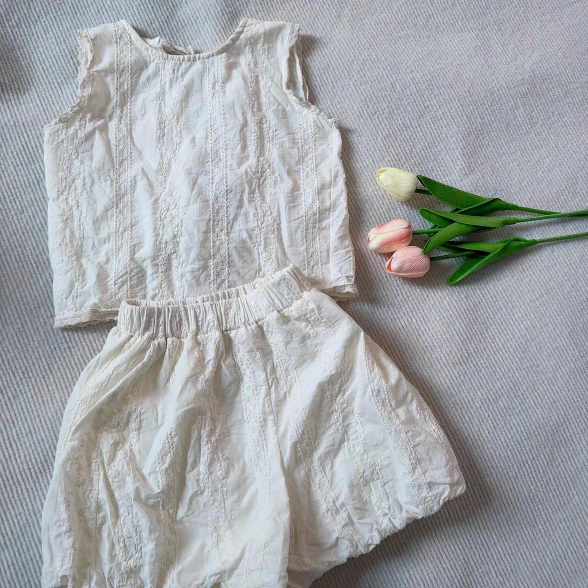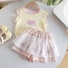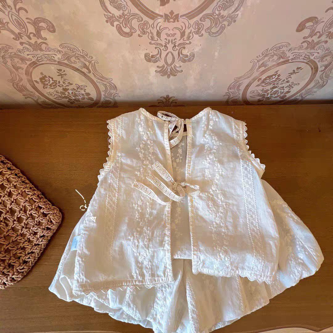 Conjunto de Verão para Meninas Moda Bebê Personalidade Infantil Tendência Doce Estilo Coreano Jacquard Renda Guarnição Colete Bloomers