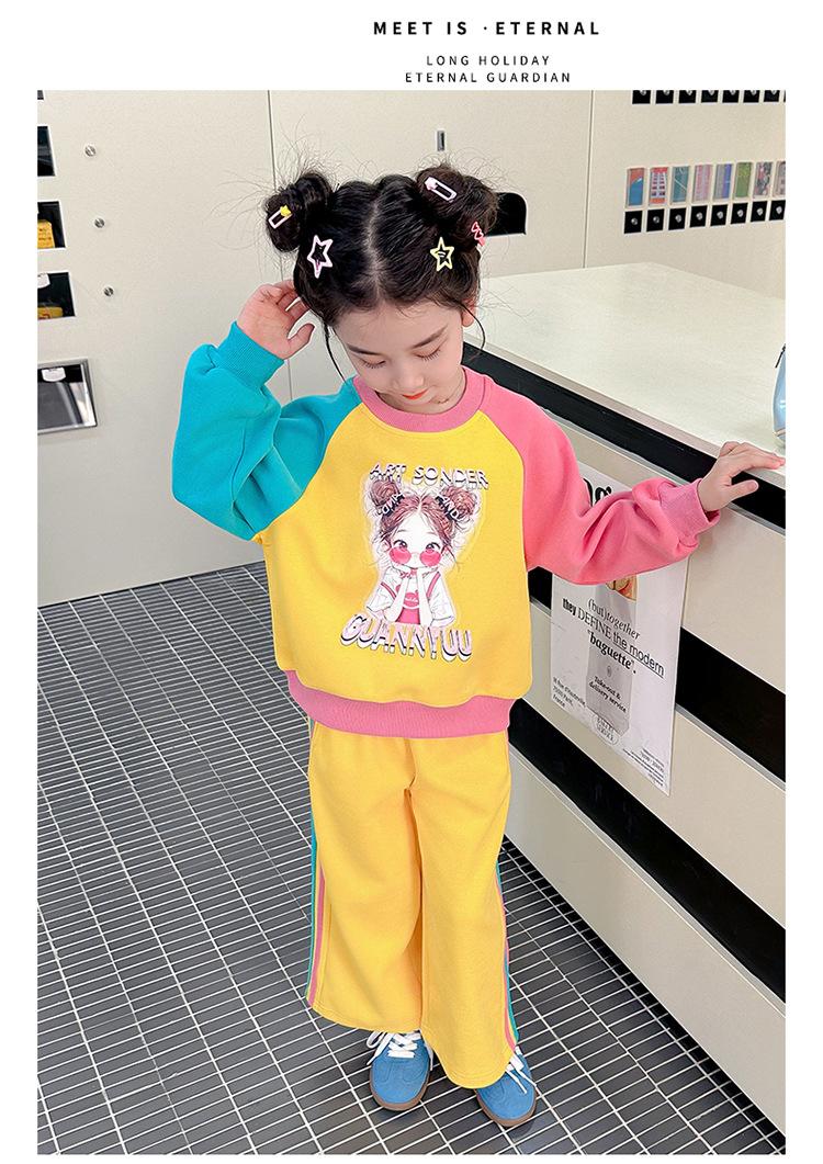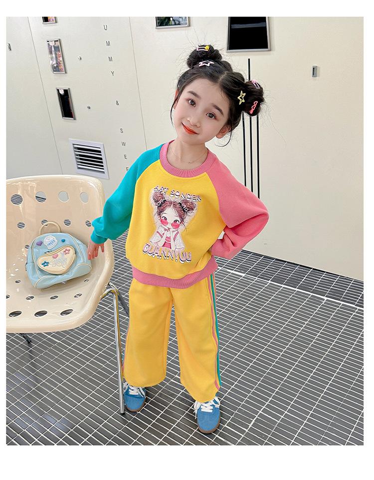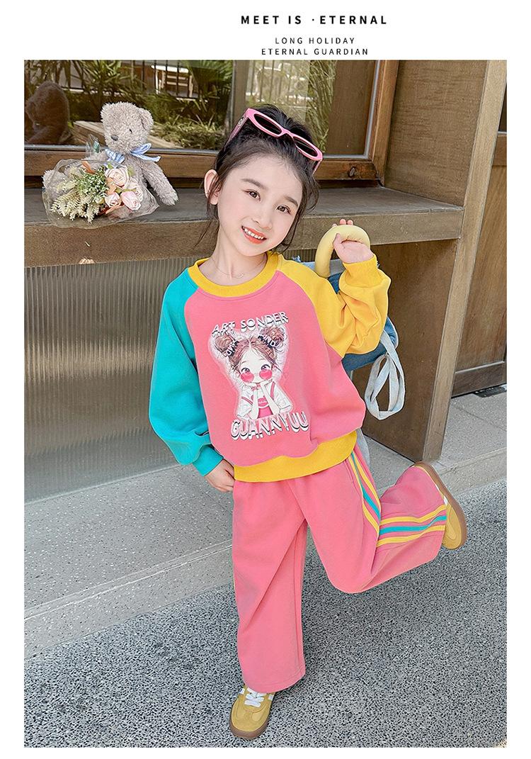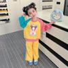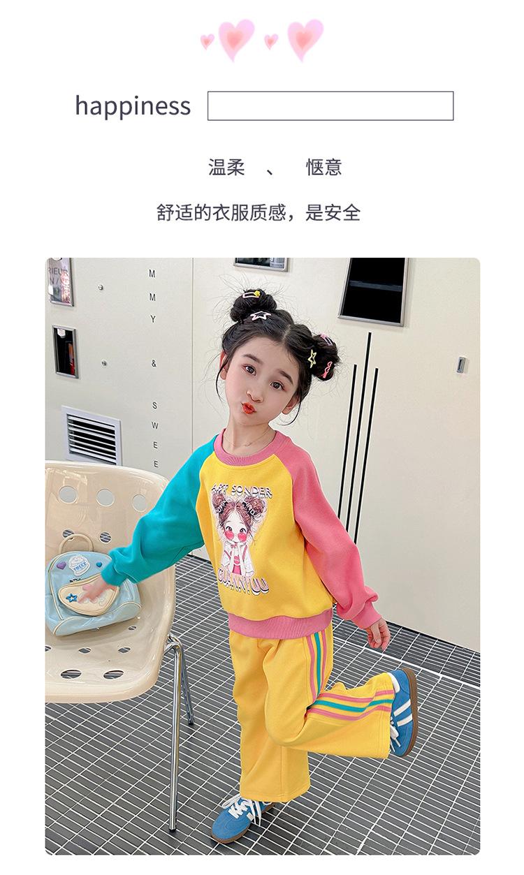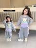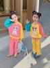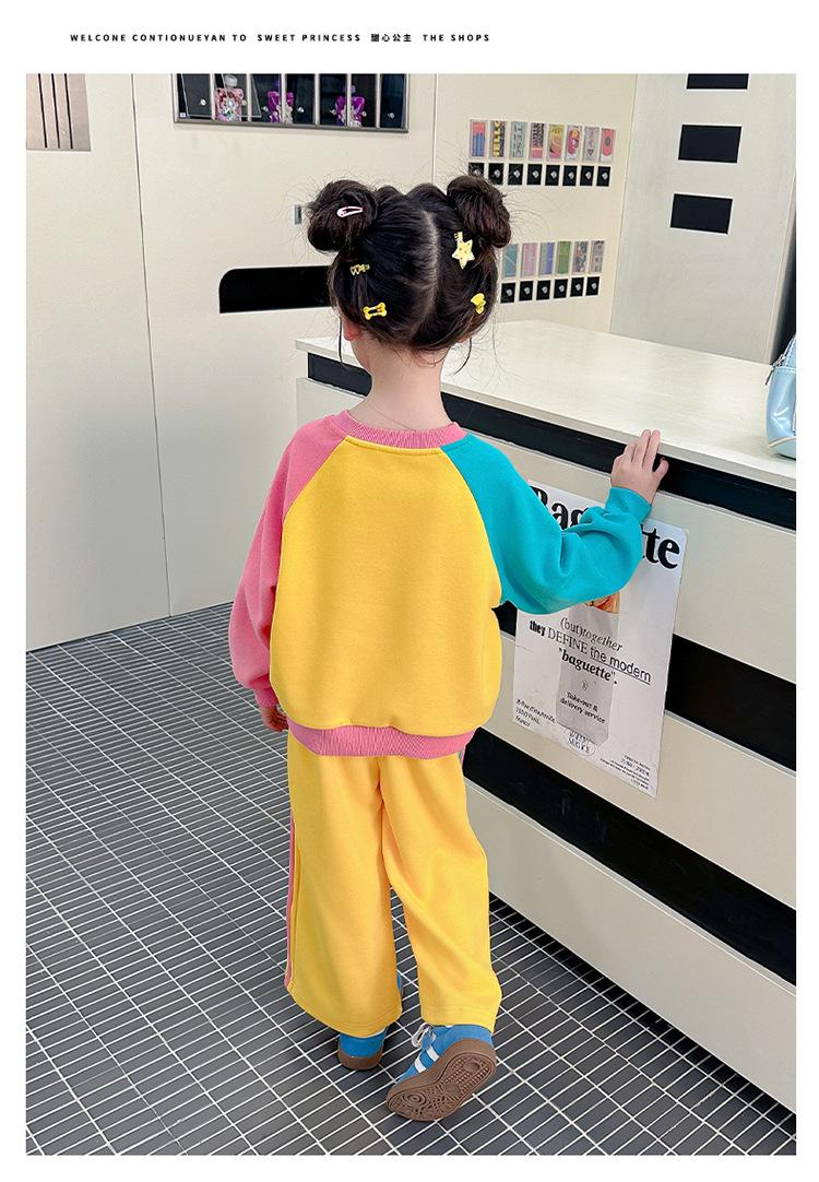 Conjunto de Moletom para Meninas Outono 2025 Novo Estilo Infantil Estampa Coreana Bloco de Cores Casual Outono Bebê Menina Conjunto de Duas Peças