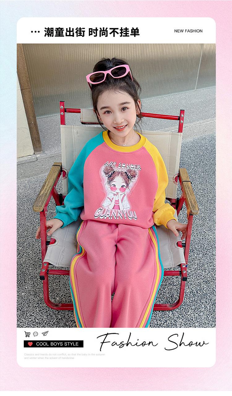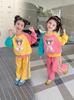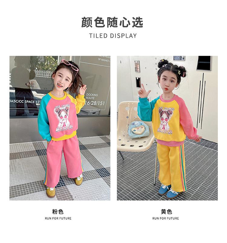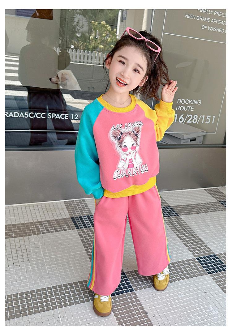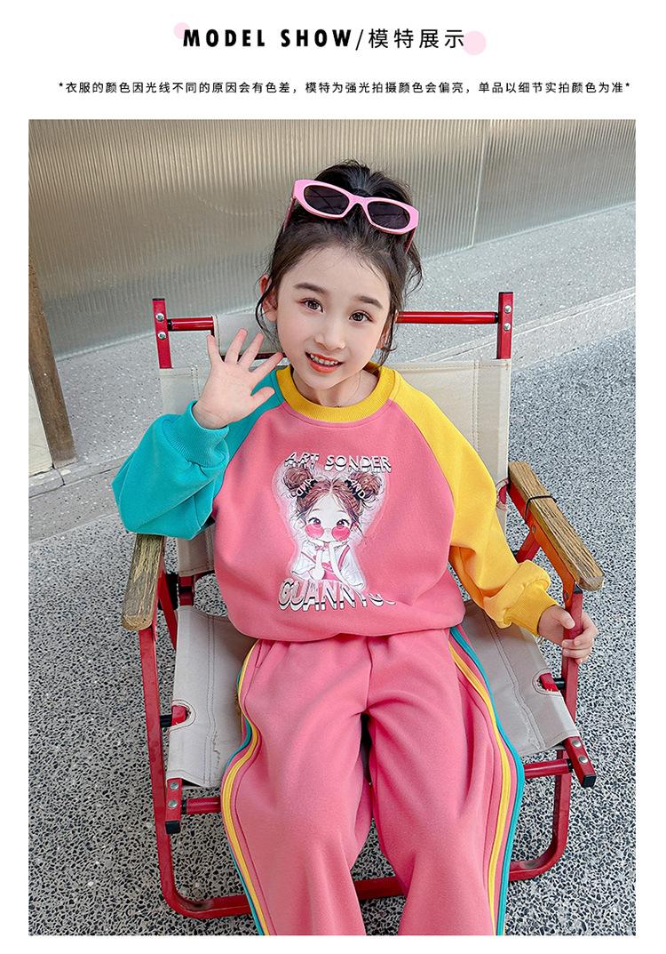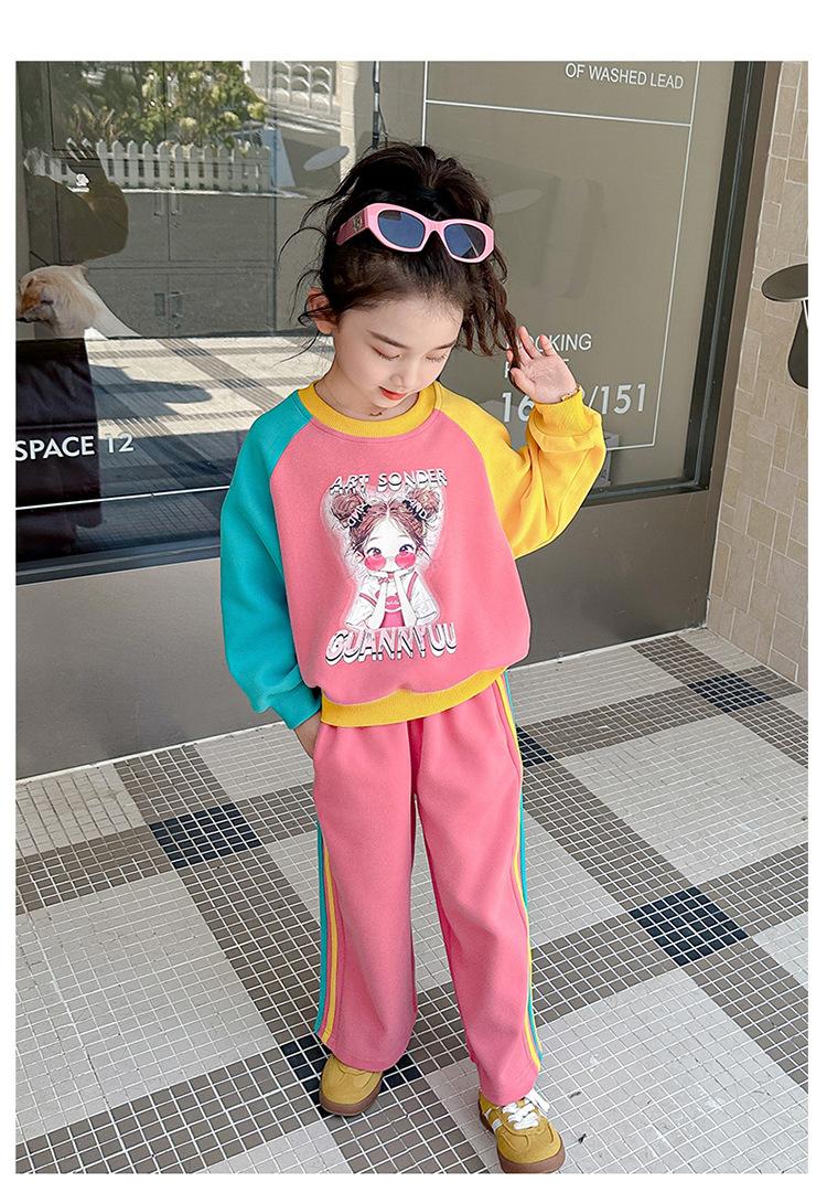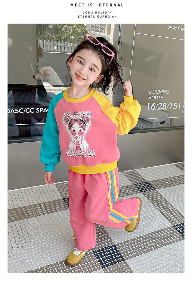 Conjunto de Moletom para Meninas Outono 2025 Novo Estilo Infantil Estampa Coreana Bloco de Cores Casual Outono Bebê Menina Conjunto de Duas Peças