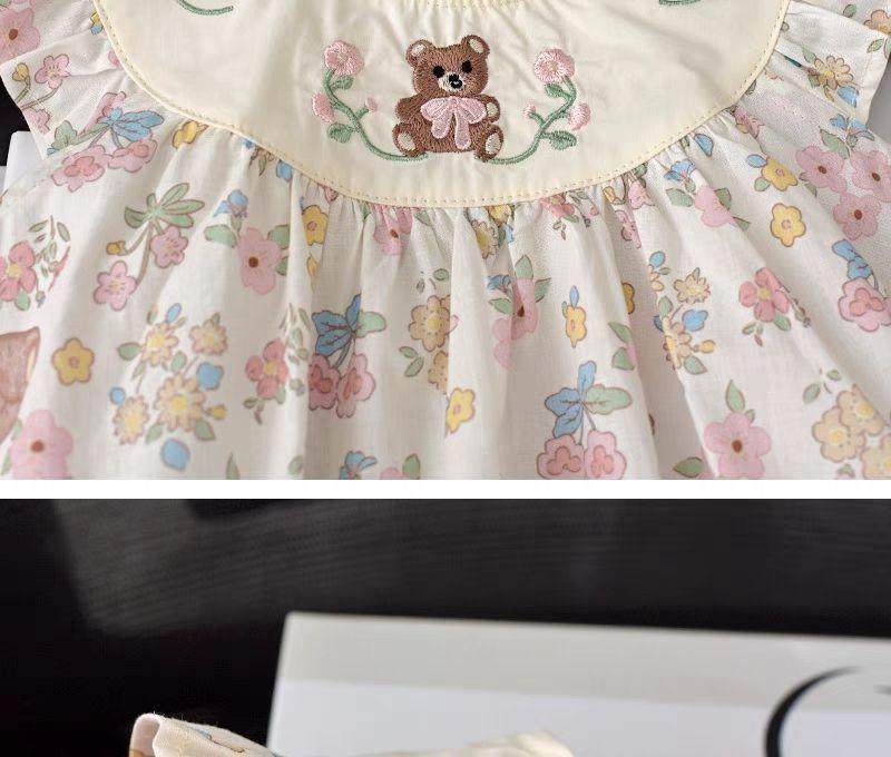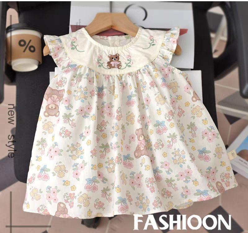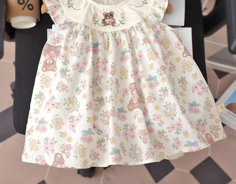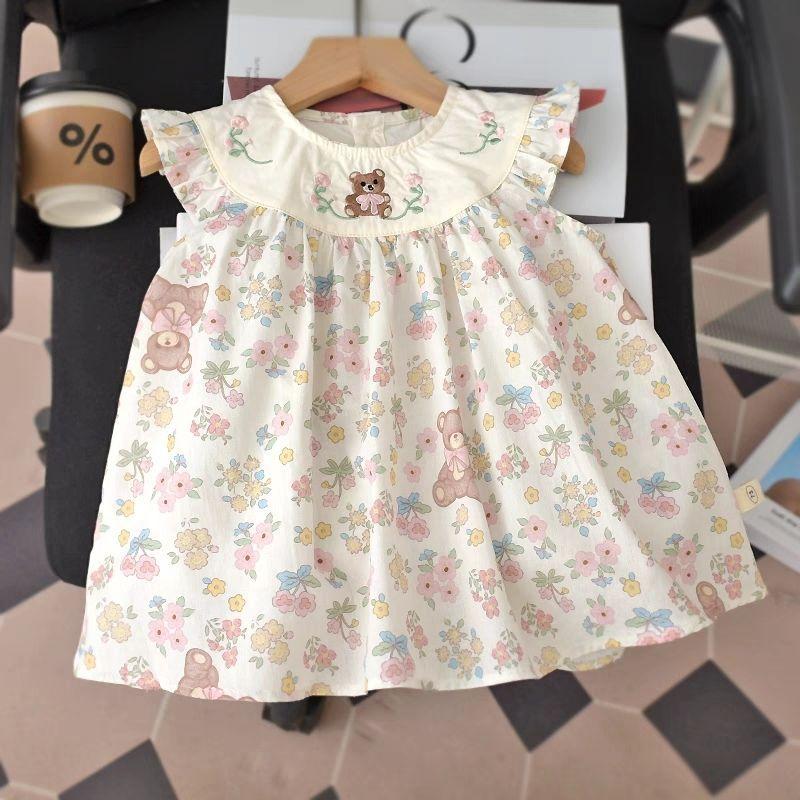 Vestido de Menina Estilo Coreano Verão Vestido de Princesa Floral para Bebê de Um Ano Vestido de Bebê Moderno com Manga Voadora