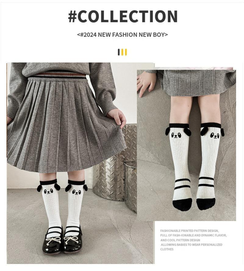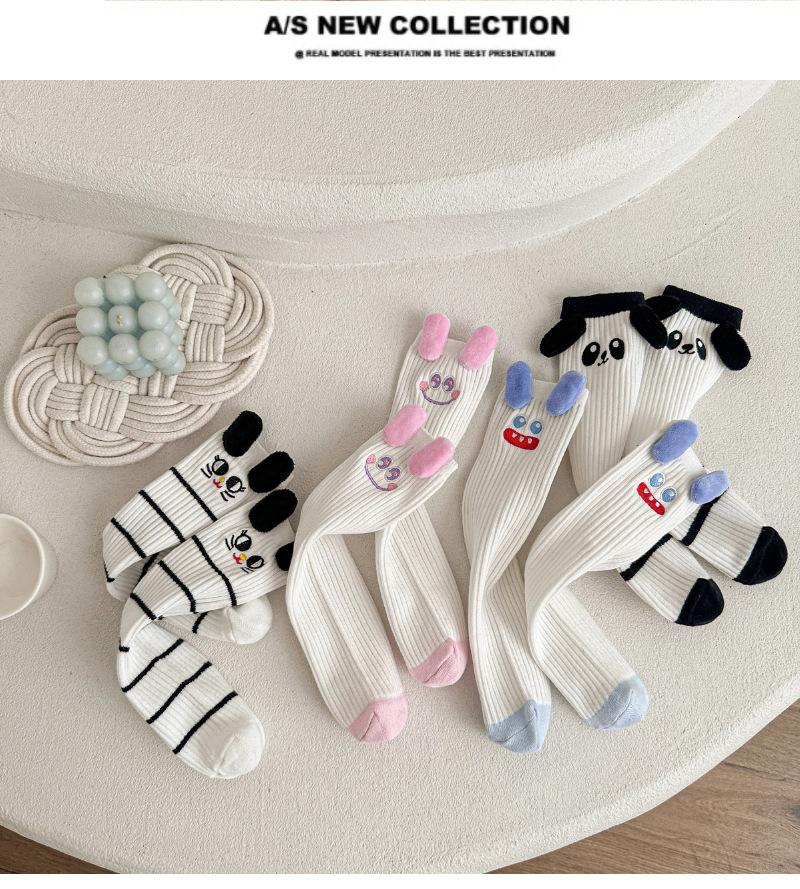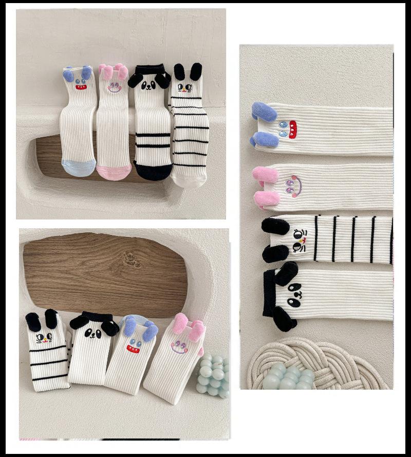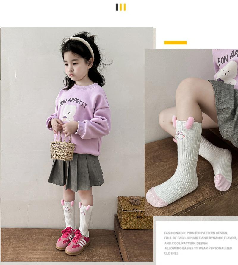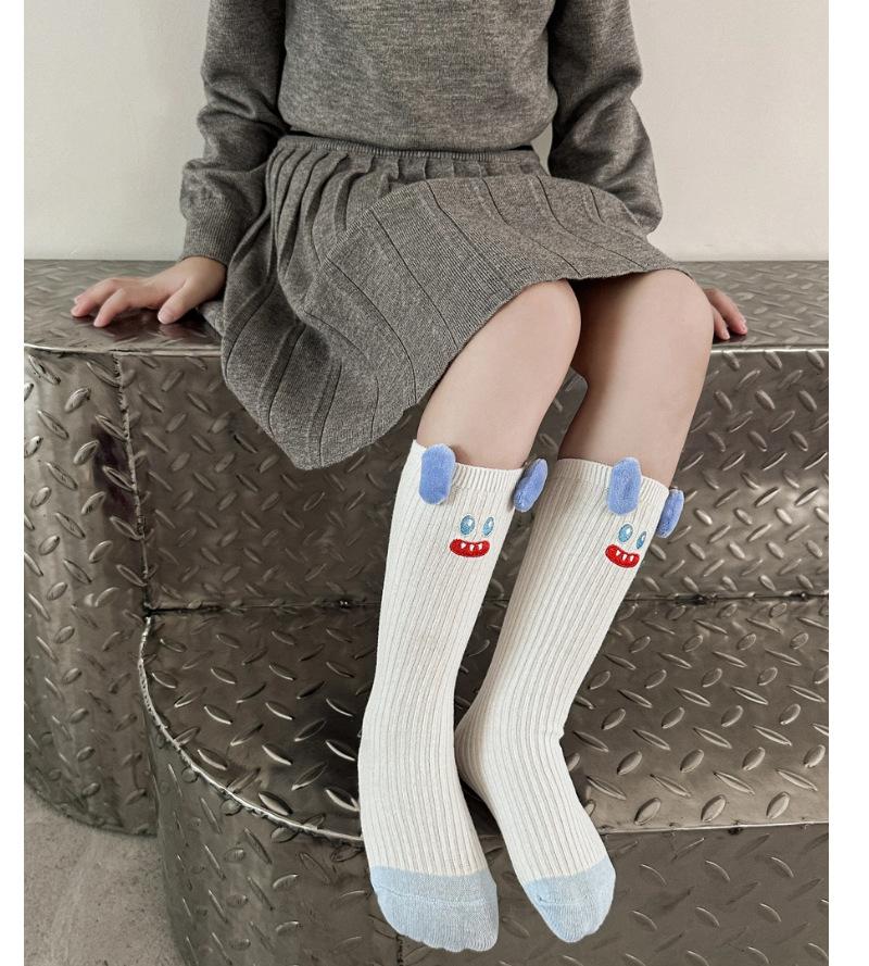 Meias infantis primavera e outono algodão penteado agulha dupla cano médio meias meninas coreano desenho animado fofo meias de princesa meias de bebê