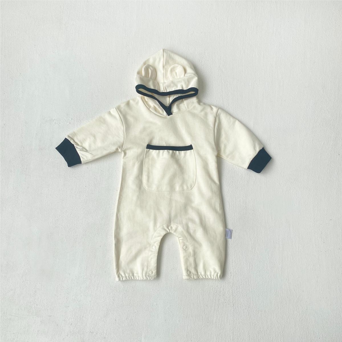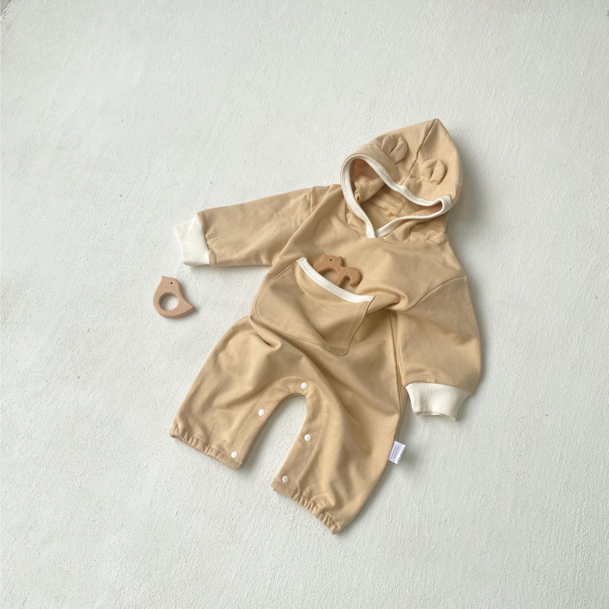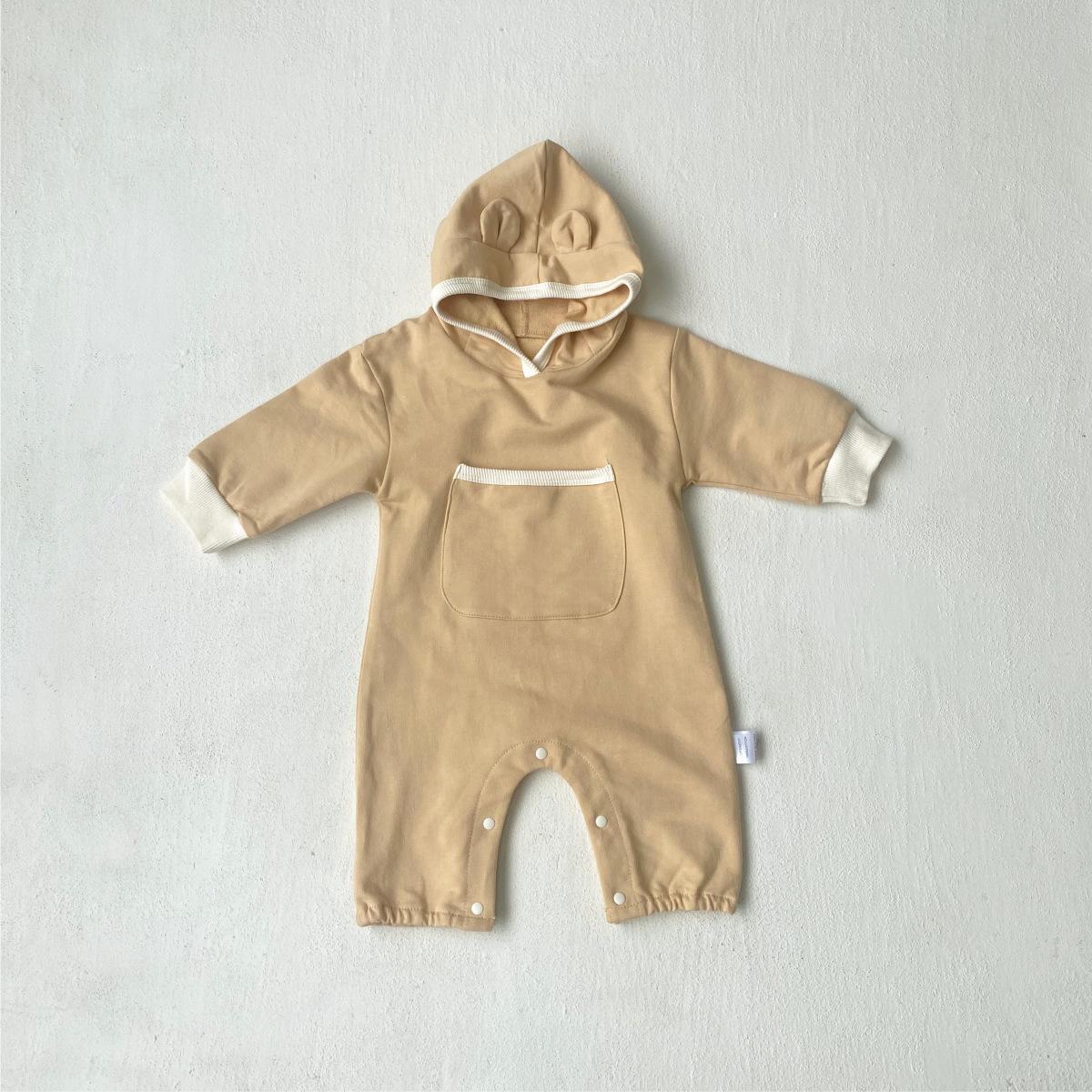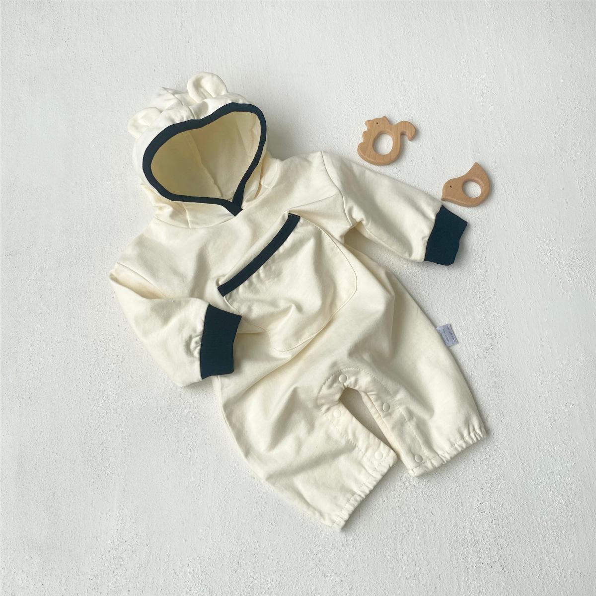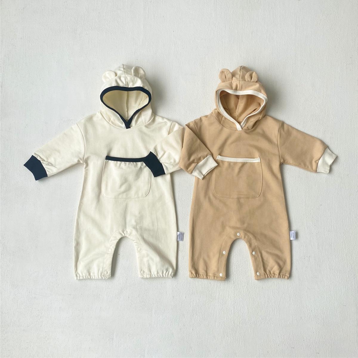 Body Infantil Fofo Bolso Grande Orelhas de Urso com Capuz Moletom Longo Macacão Bebê Recém-Nascido Roupas Outono